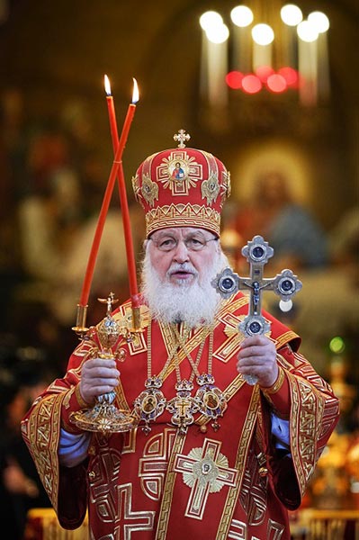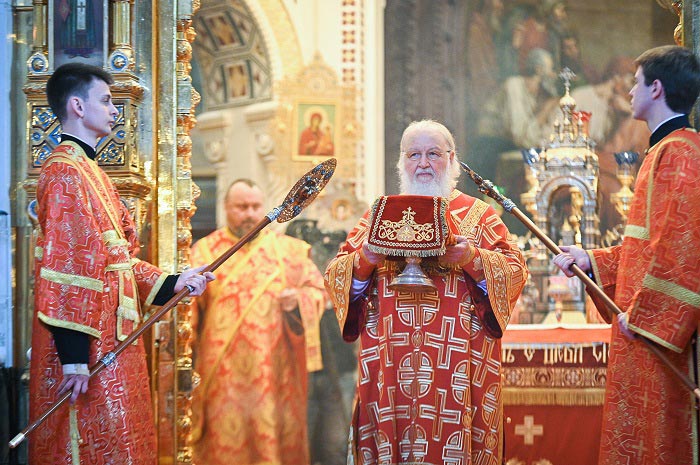 Затем Святейший Патриарх Кирилл совершил славление великомученику Георгию Победоносцу, после чего обратился к верующим с Первосвятительским словом.