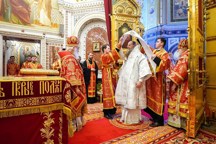 За богослужением была совершена хиротония архимандрита Клавдиана (Полякова) во епископа Талдыкорганского, викария Астанайской епархии (Митрополичий округ Русской Православной Церкви в Республике Казахстан).