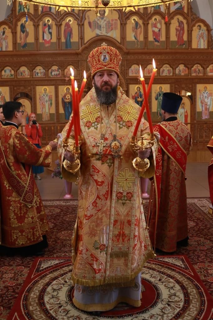 В завершение воскресной Литургии архиепископ Амфилохий поздравил клириков и прихожан с праздником и обратился к народу Божию со словами поучения.