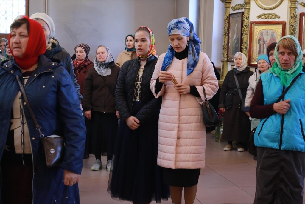 Хор Андреевского собора под управлением регента Н. Романцовой исполнял песнопения Божественной Литургии и Недели жен-мироносиц. За воскресным богослужением молились прихожане главного храма Рудного Алтая, сотрудники епархиального управления, насельники Свято-Троицкого мужского монастыря города Усть-Каменогорска и воспитанники Центральный воскресной школы. Проповедь перед причастием мирян произнёс иеромонах Силуан (Магилев).