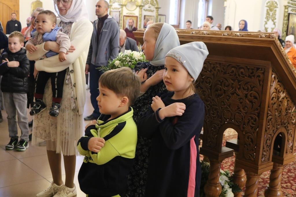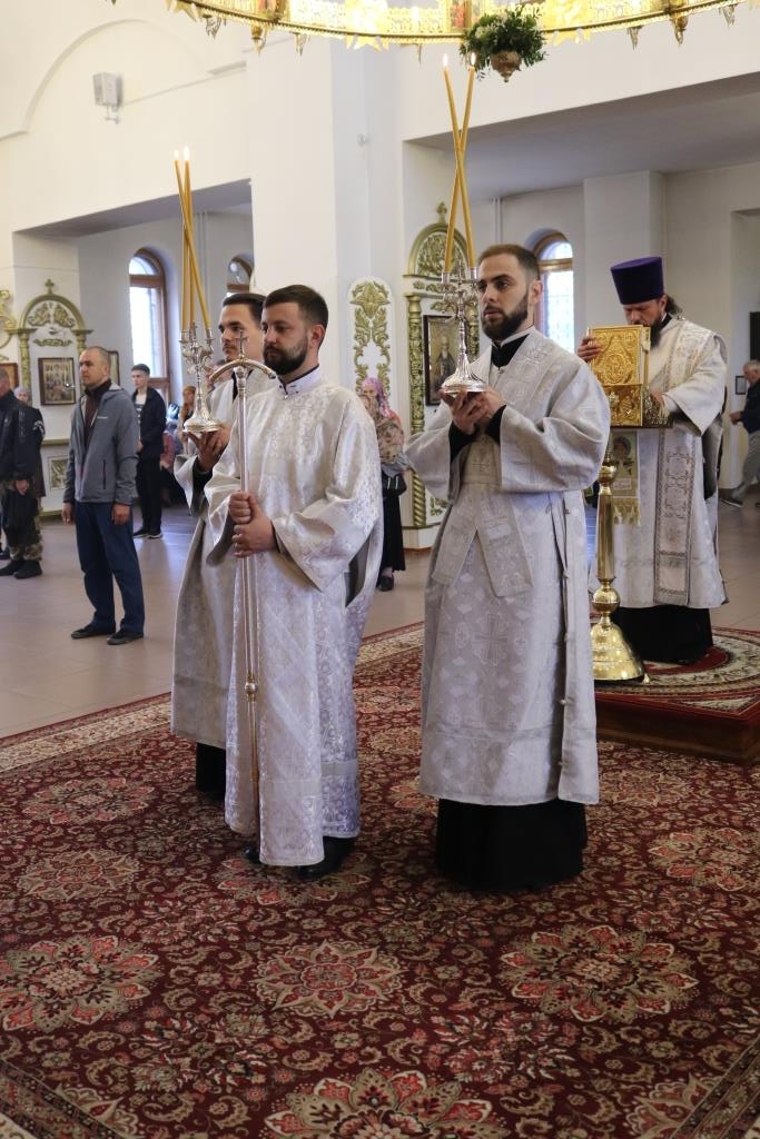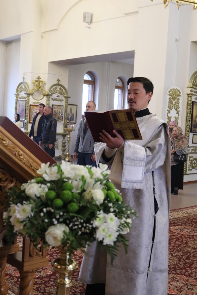 Песнопения Божественной Литургии исполнял хор под управлением регента Н. Романцовой. За воскресным богослужением молились прихожане главного храма Рудного Алтая, сотрудники епархиального управления, насельники Свято-Троицкого мужского монастыря города Усть-Каменогорска.