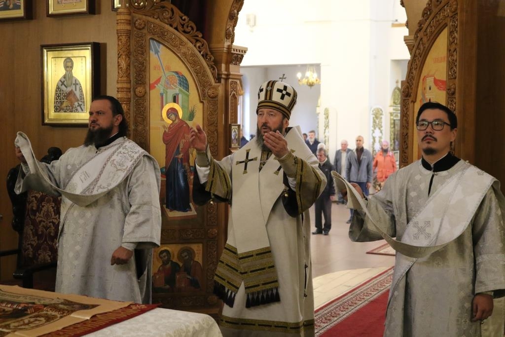 Высокопреосвященнейший Амфилохий, архиепископ Усть-Каменогорский и Семипалатинский совершил Божественную Литургию святителя Иоанна Златоуста в Андреевском кафедральном соборе города Усть-Каменогорска. Владыке архиепископу сослужили: ключарь кафедрального собора иеромонах Никодим (Авдеев), клирики собора иеромонах Силуан (Магилев), иерей Роман Подрезов, иеромонах Мефодий (Шевчук), секретарь епархии диакон Илия Кван и протодиакон Андрей Дудник.