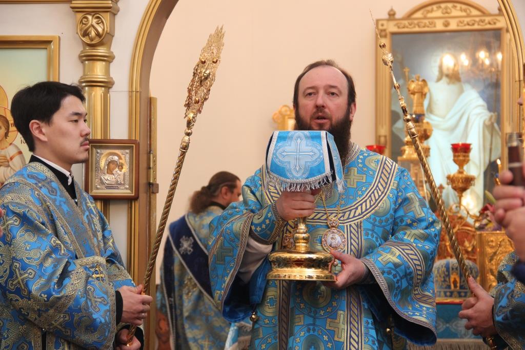 В самый день праздника, 4 декабря, Епископ Амфилохий в сослужении соборного духовенства совершил Божественную Литургию в главном храме Усть-Каменогорской епархии.