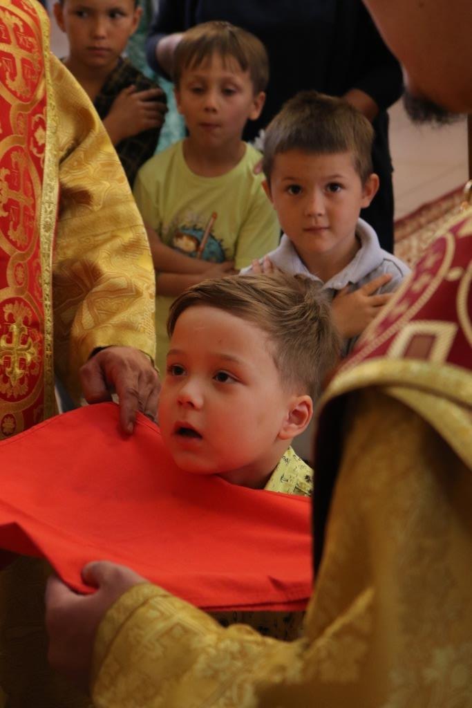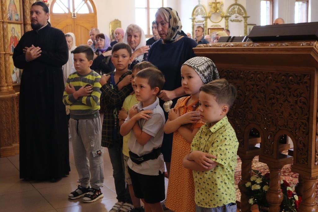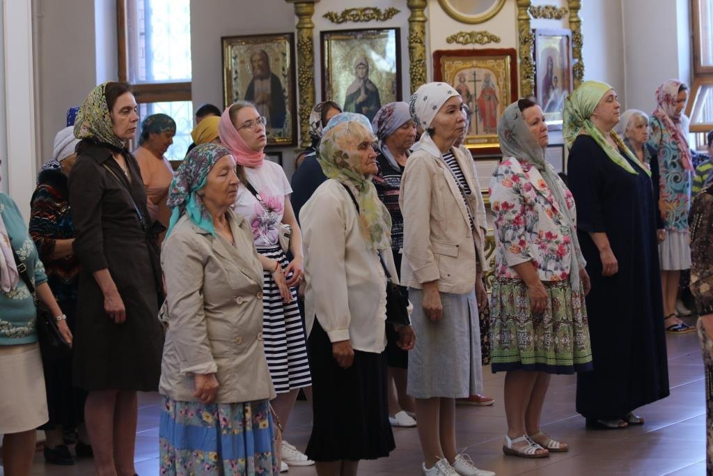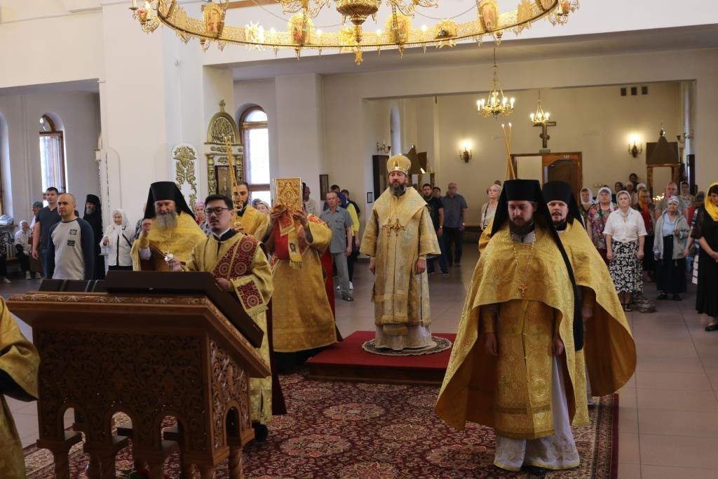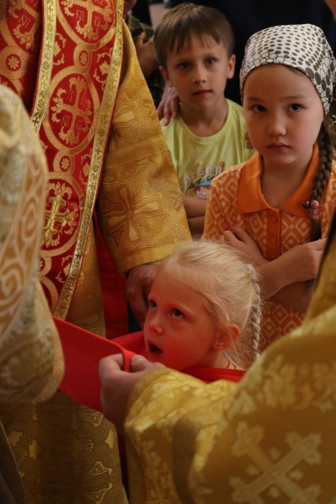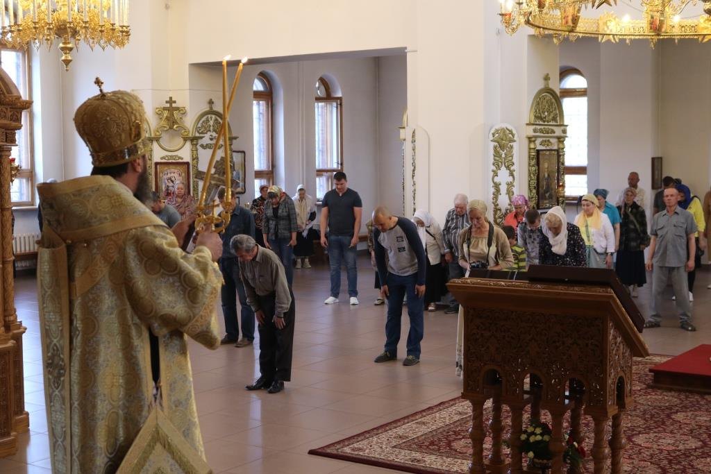 За воскресным богослужением молились прихожане главного храма Рудного Алтая, сотрудники епархиального управления, насельники Свято-Троицкого мужского монастыря города Усть-Каменогорска.