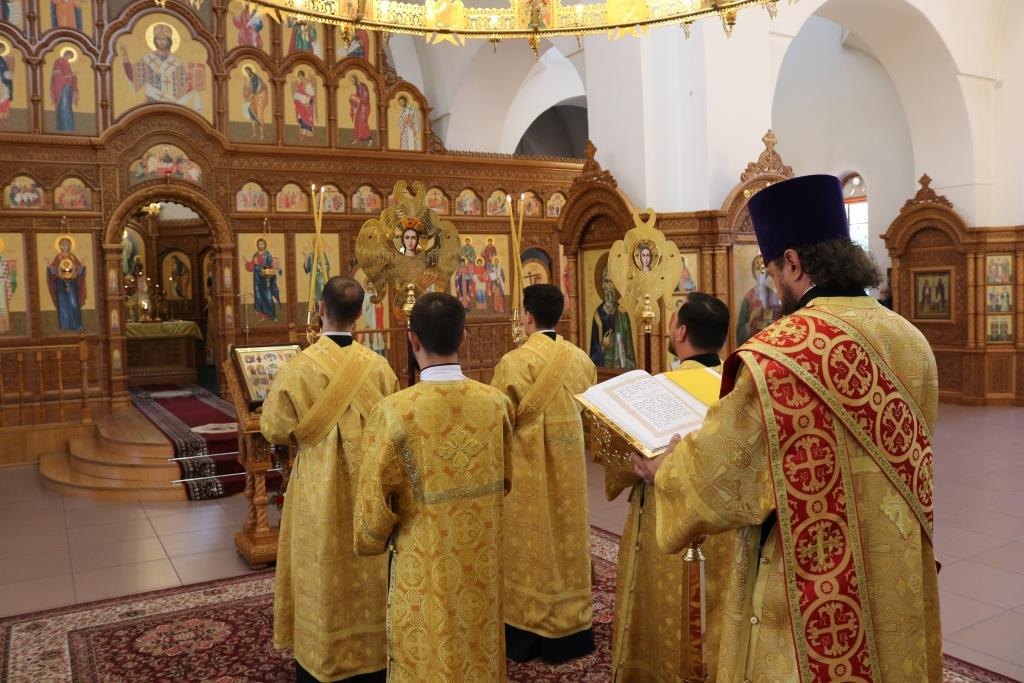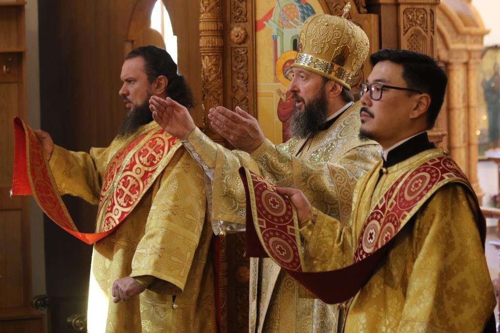 Высокопреосвященнейший Амфилохий, архиепископ Усть-Каменогорский и Семипалатинский совершил Божественную Литургию святителя Иоанна Златоуста в Андреевском кафедральном соборе города Усть-Каменогорска. Владыке архиепископу сослужили: ключарь кафедрального собора иеромонах Никодим (Авдеев), клирики собора иеромонах Силуан (Магилев), иеромонах Мефодий (Шевчук), секретарь епархии диакон Илия Кван и протодиакон Андрей Дудник.