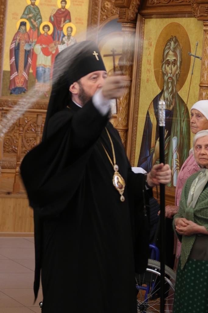 В завершение Божественной Литургии Высокопреосвященнейший архипастырь пожелал молящимся мира и спасения души и окропил прихожан святой водой.