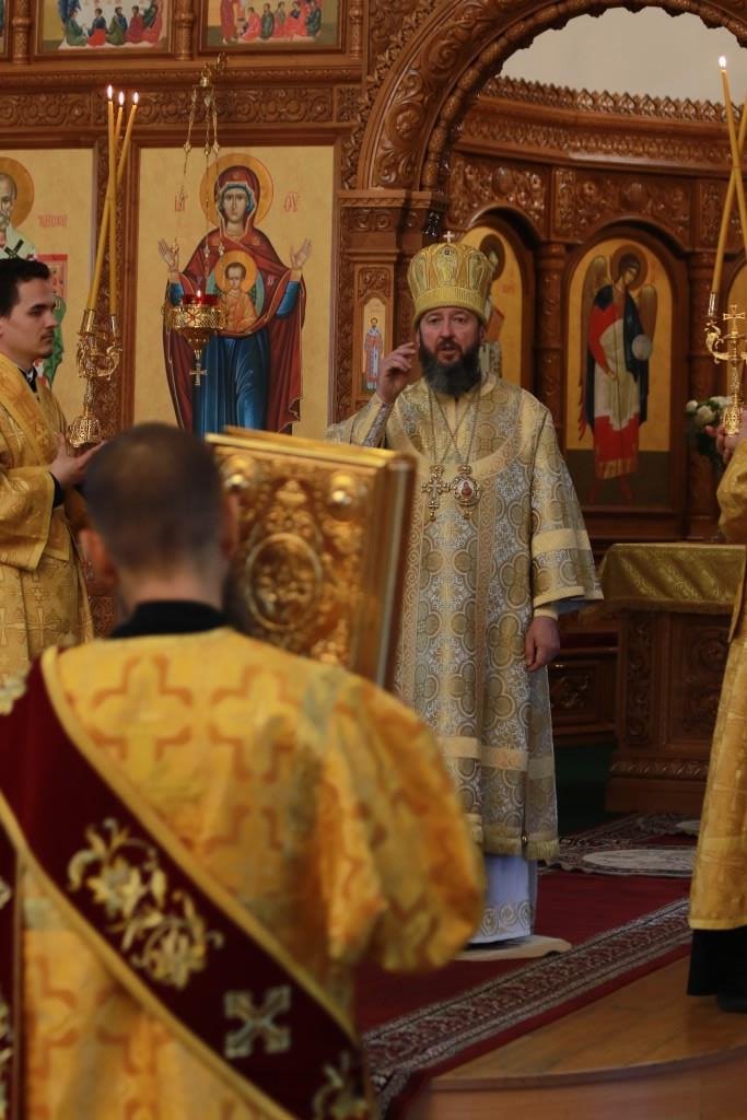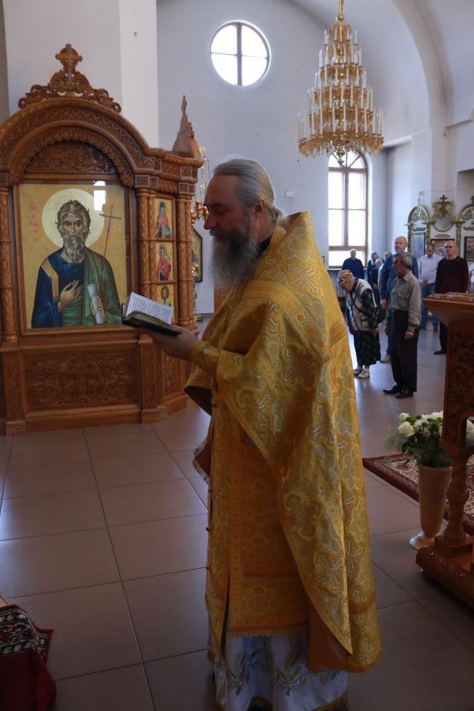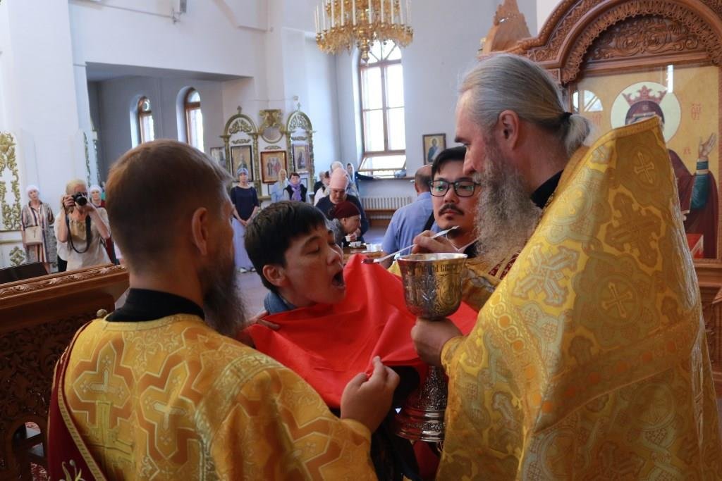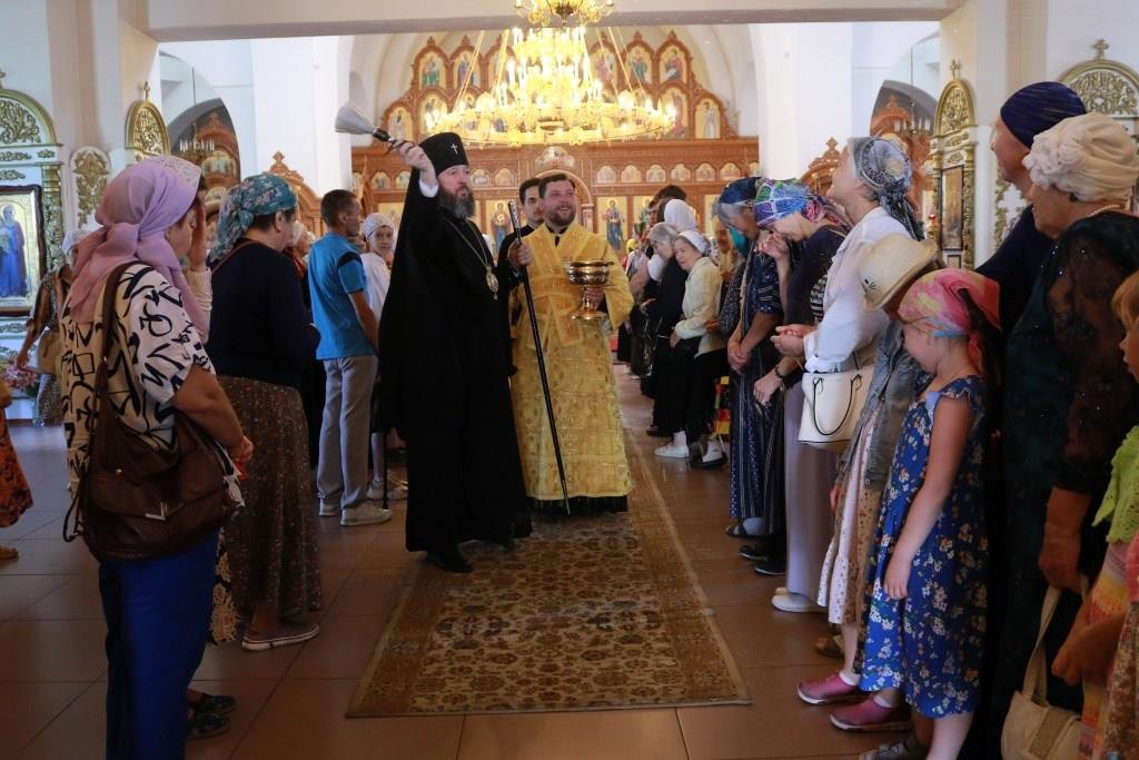 За воскресным богослужением молились прихожане и паломники главного храма епархии, насельники Свято-Троицкого мужского монастыря города Усть-Каменогорска и сотрудники епархиального управления. Песнопения Литургии и Недели 4-ой по Пятидесятнице исполнял хор кафедрального собора под управлением регента Н. Романцовой.