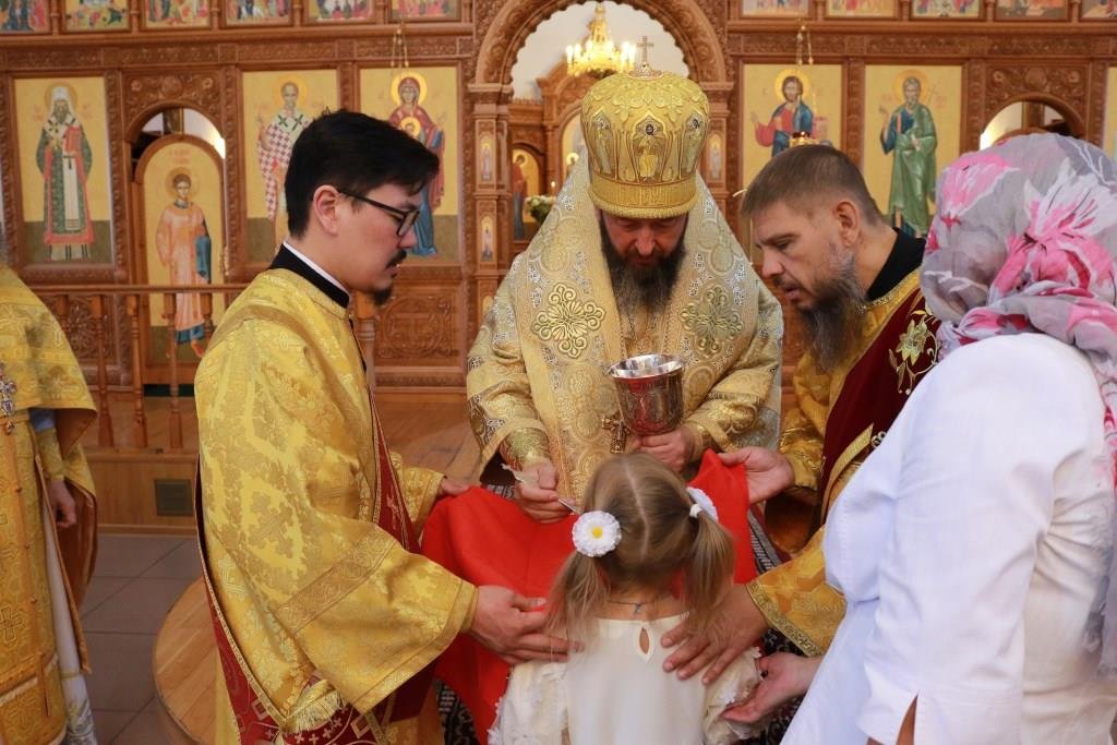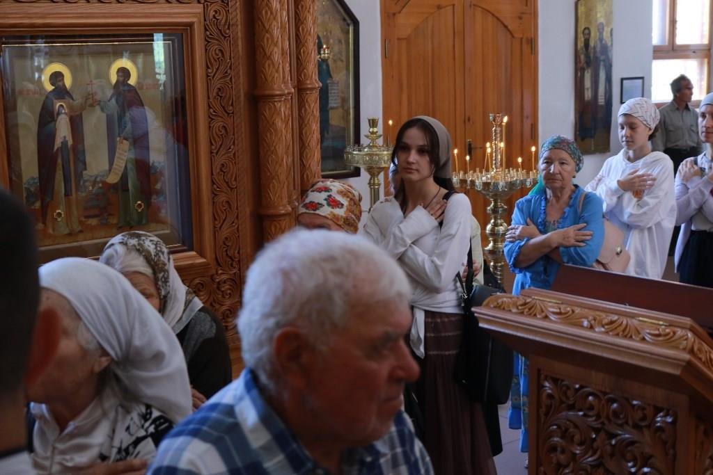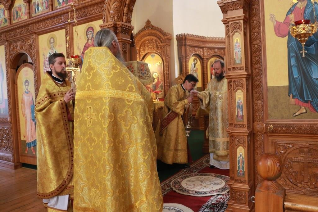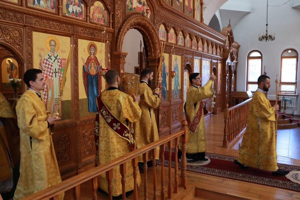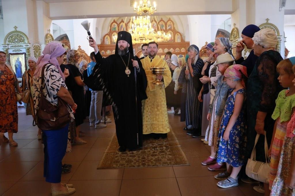 За воскресным богослужением молились прихожане и паломники главного храма епархии, насельники Свято-Троицкого мужского монастыря города Усть-Каменогорска и сотрудники епархиального управления. Песнопения Литургии и Недели 4-ой по Пятидесятнице исполнял хор кафедрального собора под управлением регента Н. Романцовой.