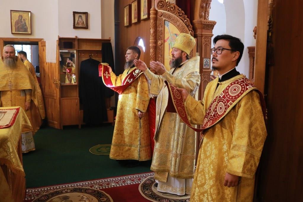 В воскресный день Высокопреосвященнейший архиепископ Усть-Каменогорский и Семипалатинский Амфилохий совершил Божественную Литургию святителя Иоанна Златоуста в Свято-Андреевском кафедральном соборе города Усть-Каменогорска. Архипастырю сослужили: ключарь кафедрального собора иеромонах Никодим (Авдеев), клирик собора иеромонах Мефодий (Шевчук), секретарь епархии диакон Илия Кван, протодиакон Георгий Засыпкин.