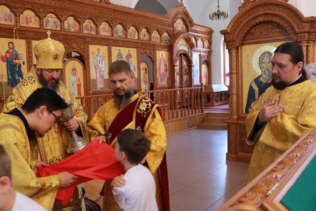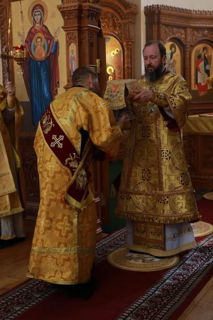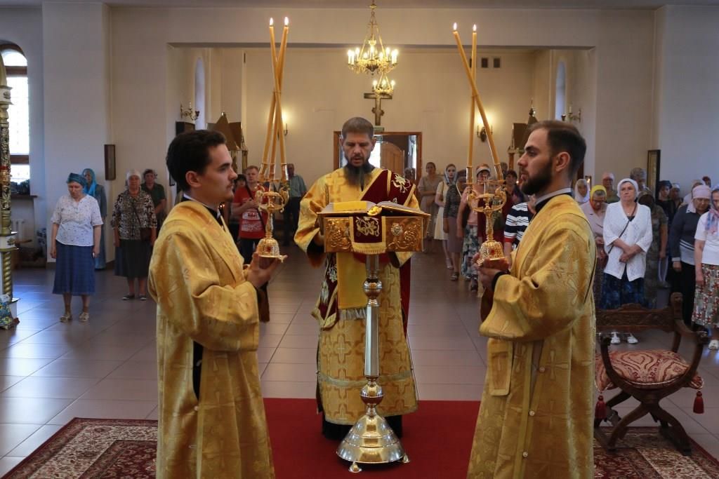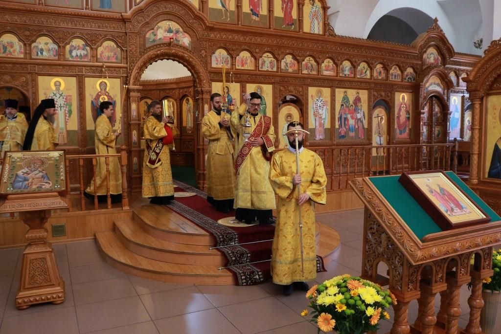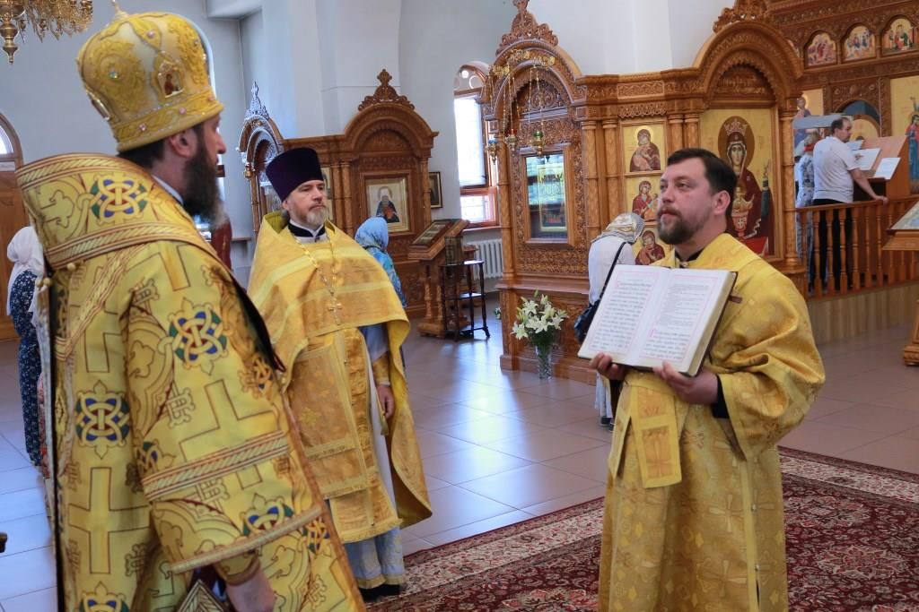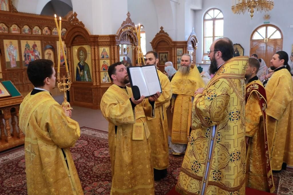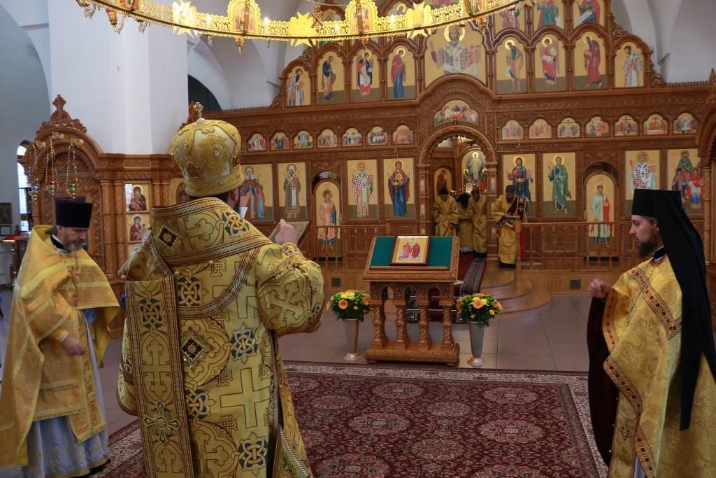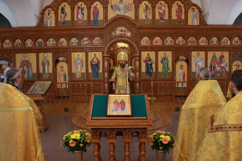 После заамвонной молитвы было совершено славление святым первоверховным апостолам, после чего епископ Амфилохий возгласил угодникам Божиим молитву. В завершение богослужения Преосвященнейший Владыка поздравил молящихся с праздником и обратился к народу Божию со словами проповеди.