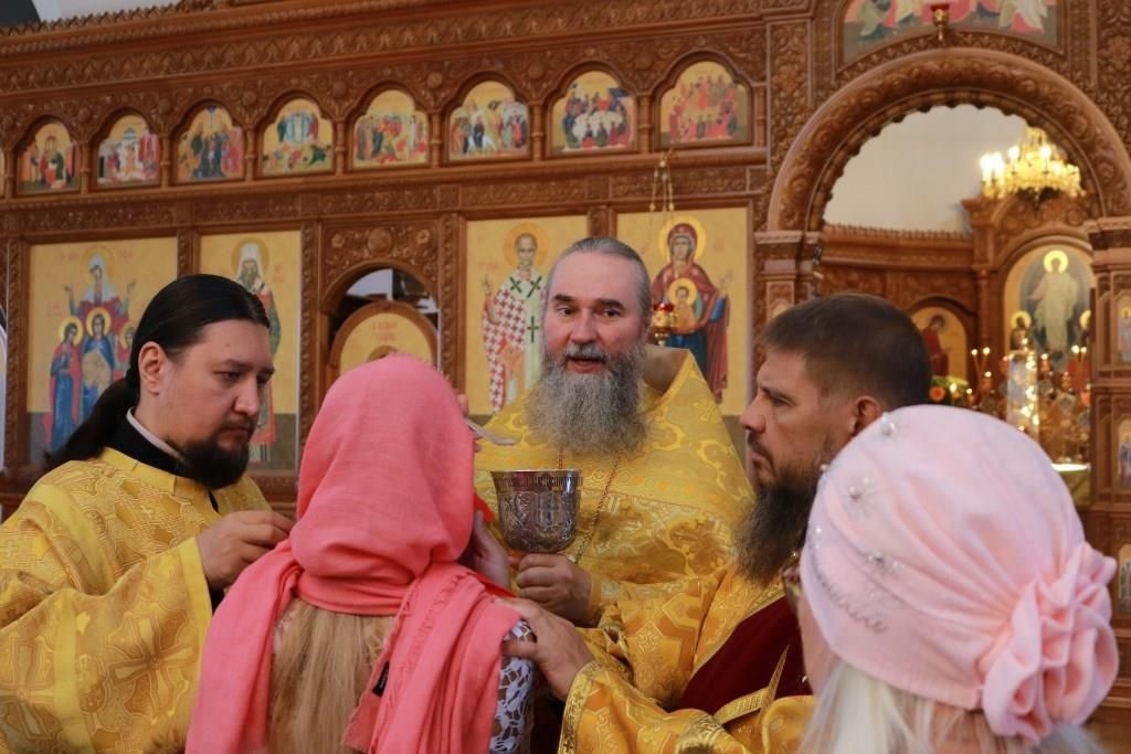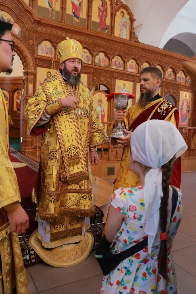 Песнопения праздника и Божественной Литургии исполнял хор под управлением регента В. Федоровой. За архипастырским богослужением молились прихожане Андреевского собора, сотрудники епархиального управления и насельники Свято-Троицкого мужского монастыря города Усть-Каменогорска. Проповедь перед причастием мирян произнес священник Алексий Анищенко.