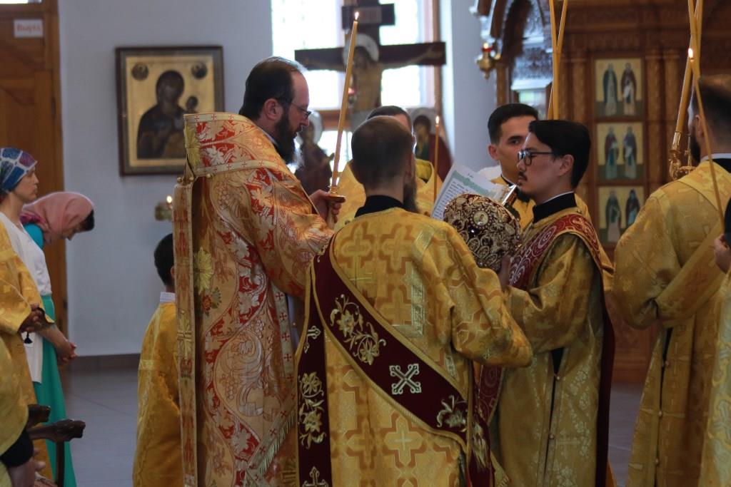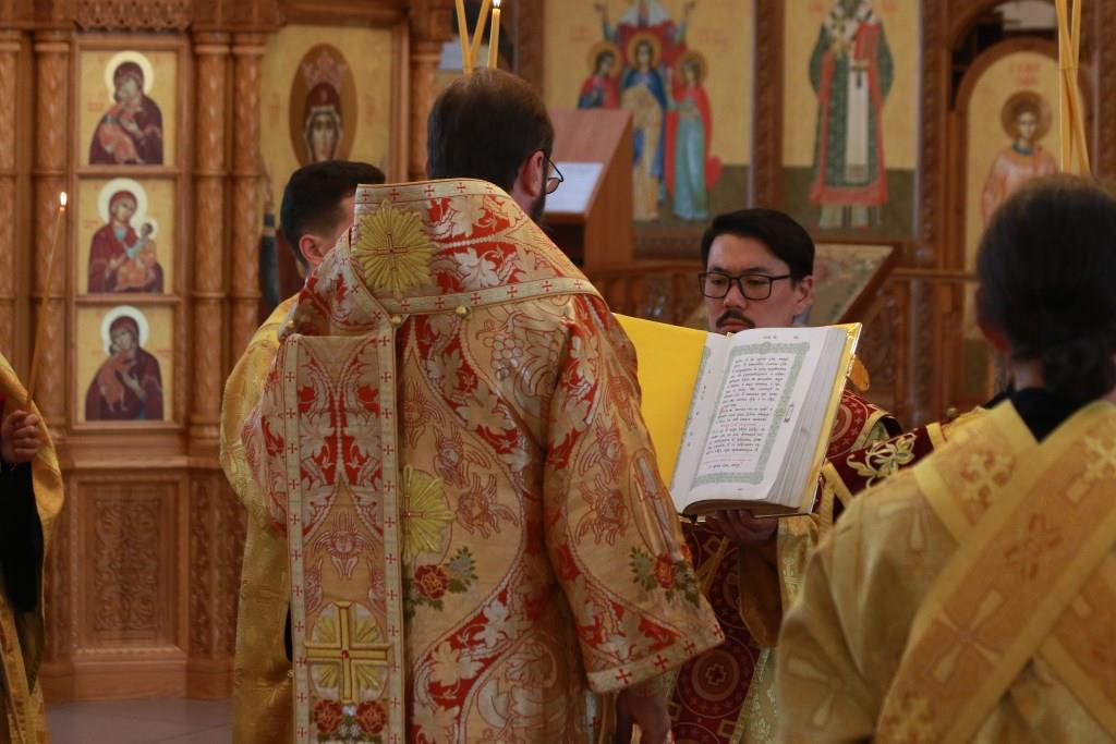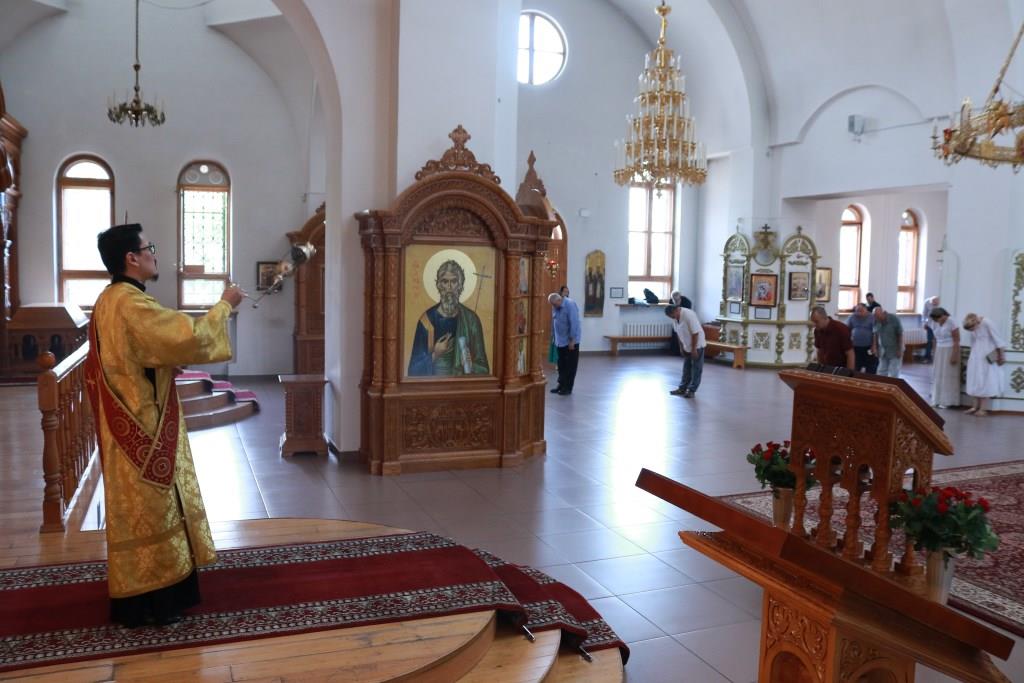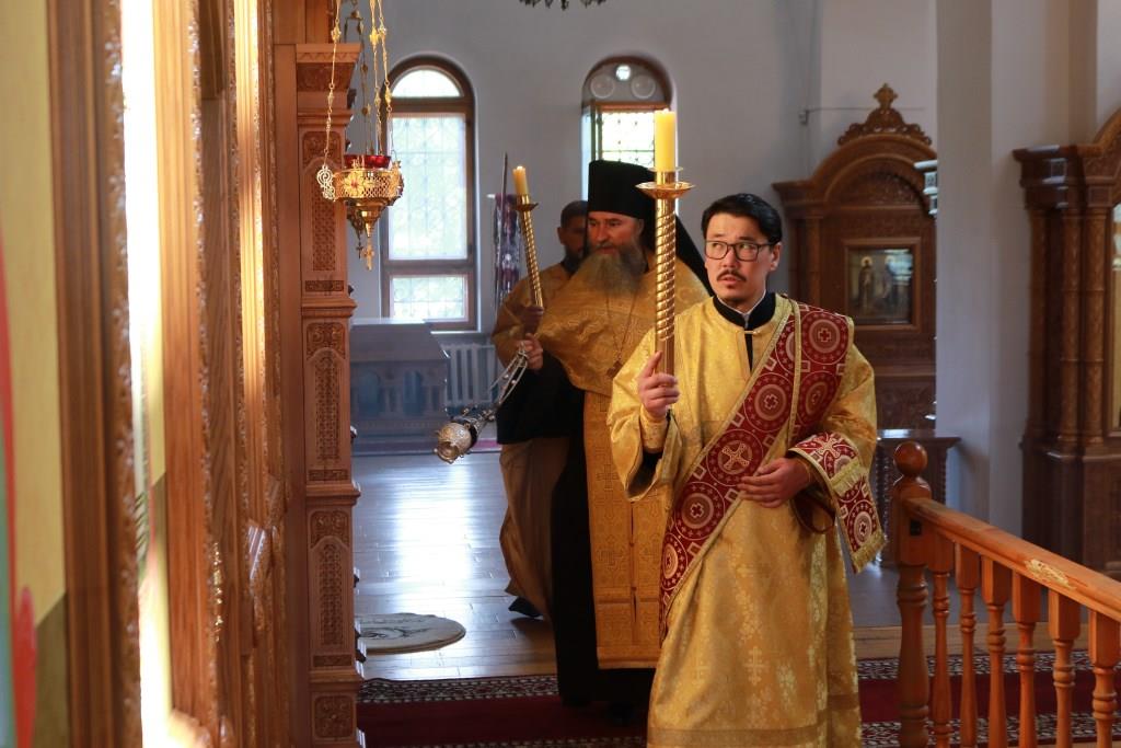Песнопения всенощного бдения и Недели 5-ой по Пятидесятнице исполнял хор Андреевского собора под управлением регента В. Федоровой. За богослужением молились насельники Свято-Троицкого мужского монастыря города Усть-Каменогорска, сотрудники епархиального управления и прихожане главного храма Восточного Казахстана. После помазания освященным елеем все молящиеся получили свежий номер приходского издания «Андреевский листок».