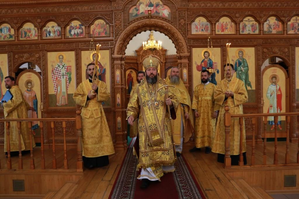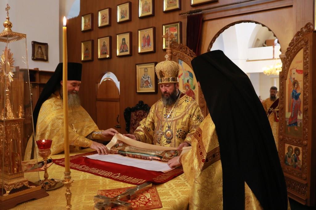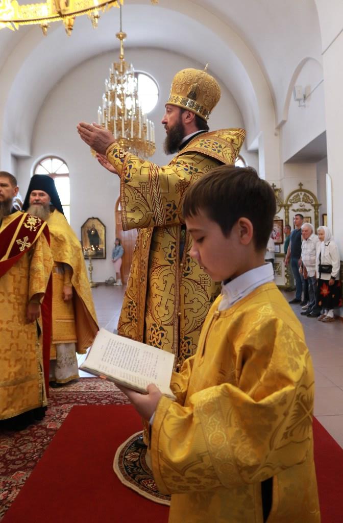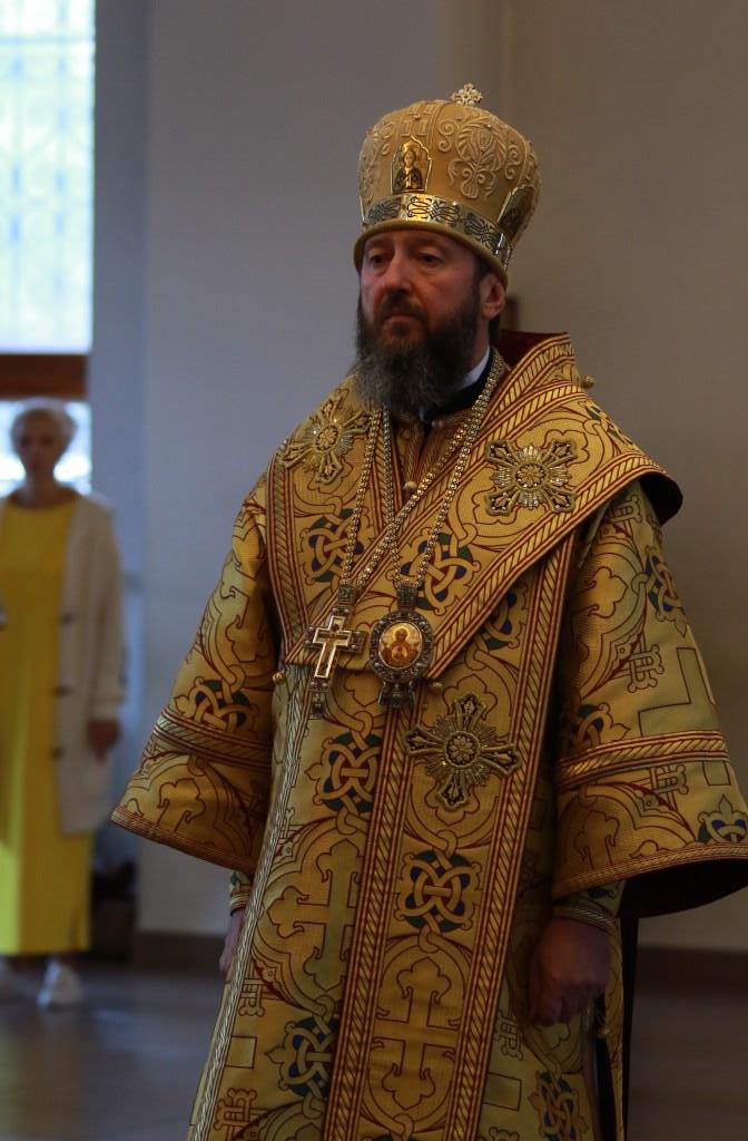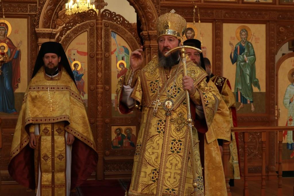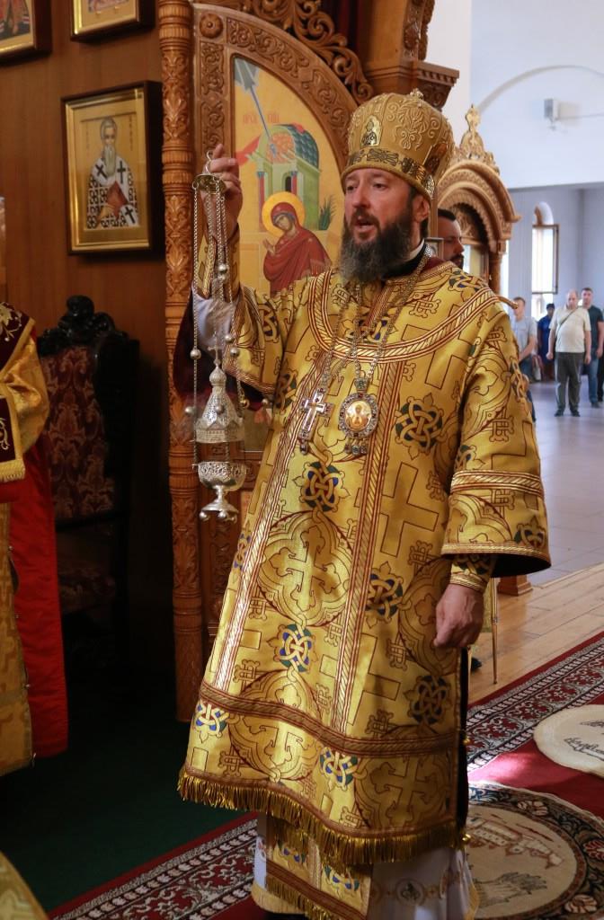 После заамвонной молитвы архиепископ с духовенством и народом Божиим совершил славление Царственным страстотерпцам. В завершение Божественной Литургии Архипастырь обратился к богомольцам со словами поучения.