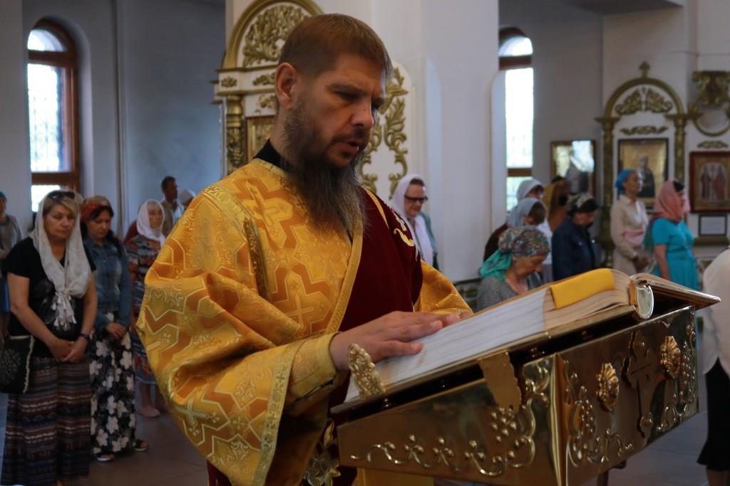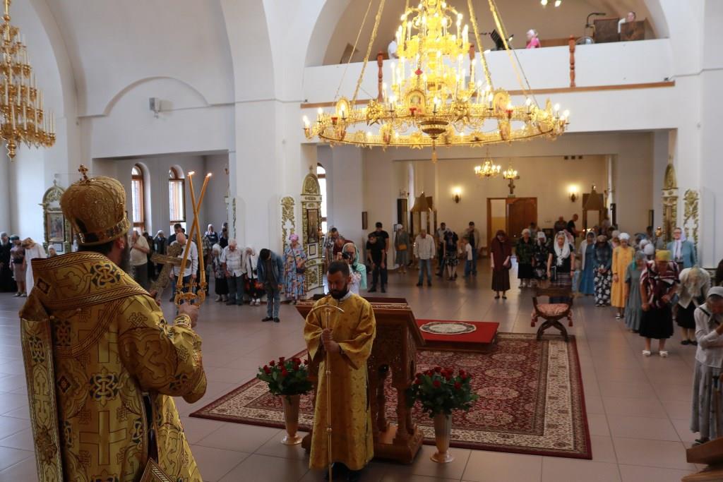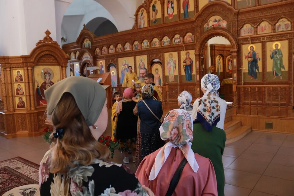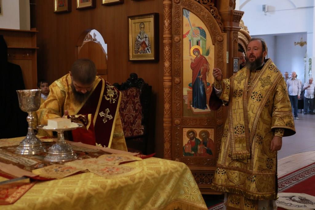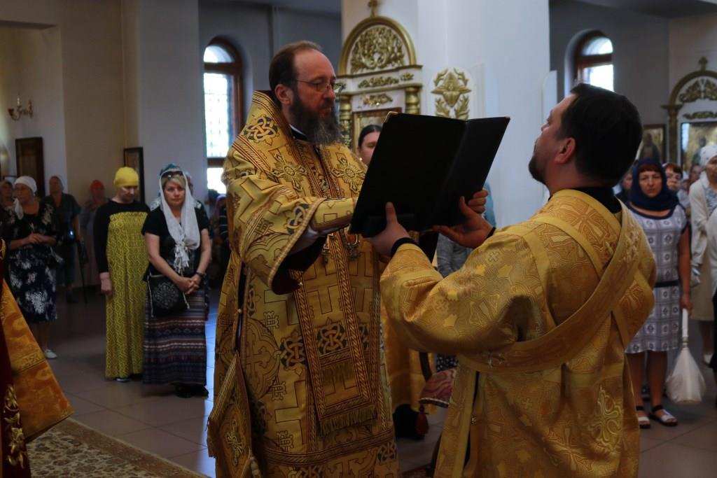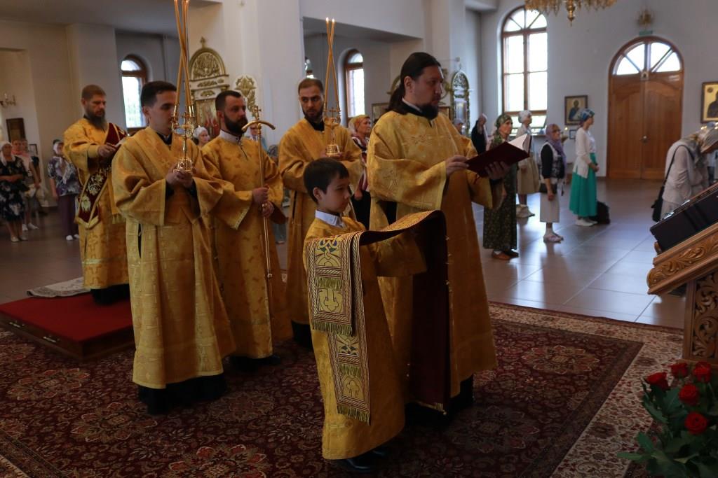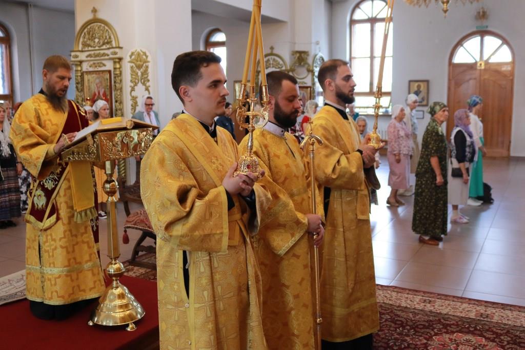 За воскресным богослужением молились сотрудники епархиального управления, насельники Свято-Троицкого мужского монастыря города Усть-Каменогорска, паломники и прихожане Андреевского собора. Песнопения Литургии и праздника святых мучеников исполнял хор кафедрального собора под управлением регента В. Федоровой.