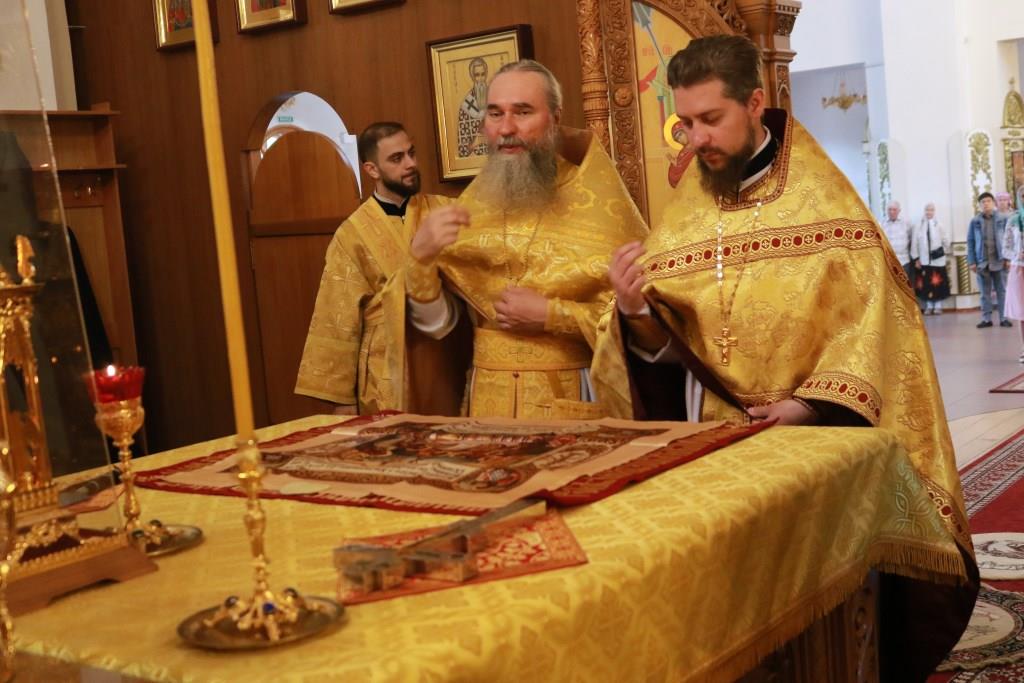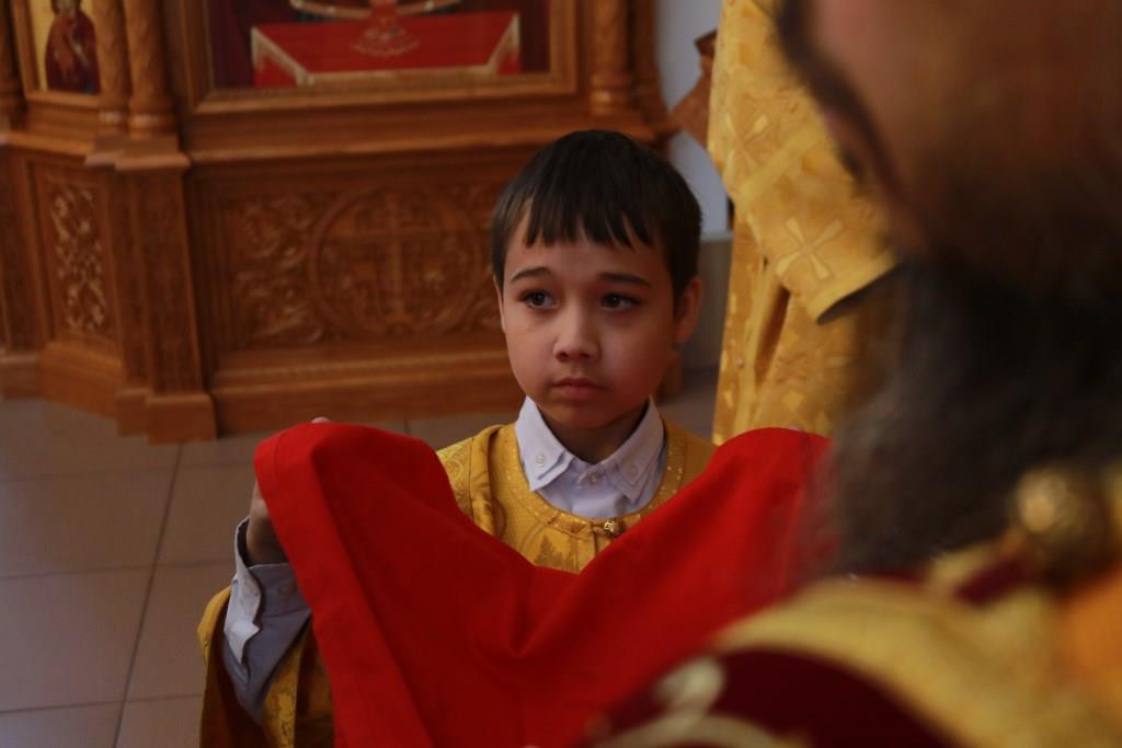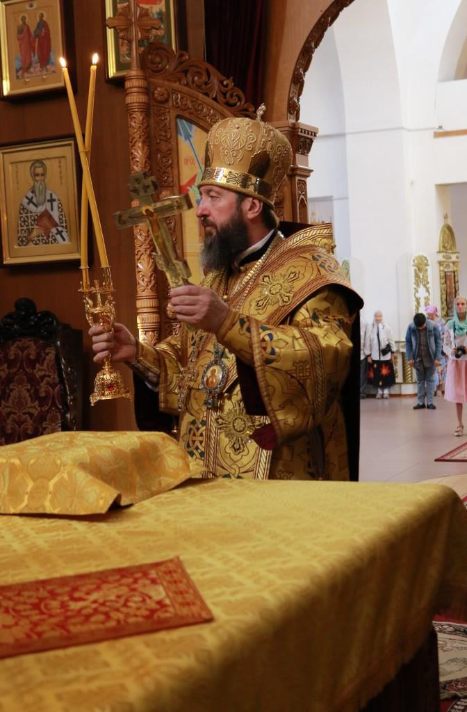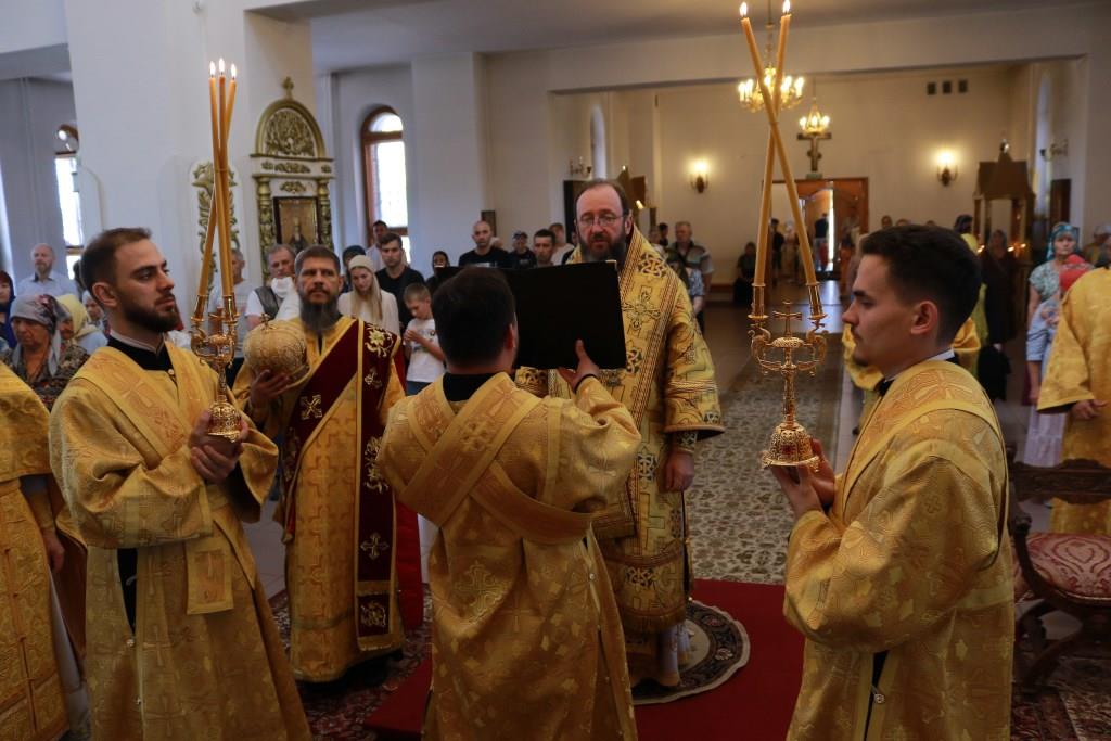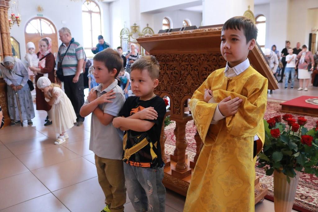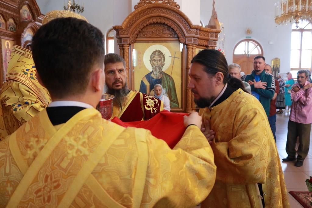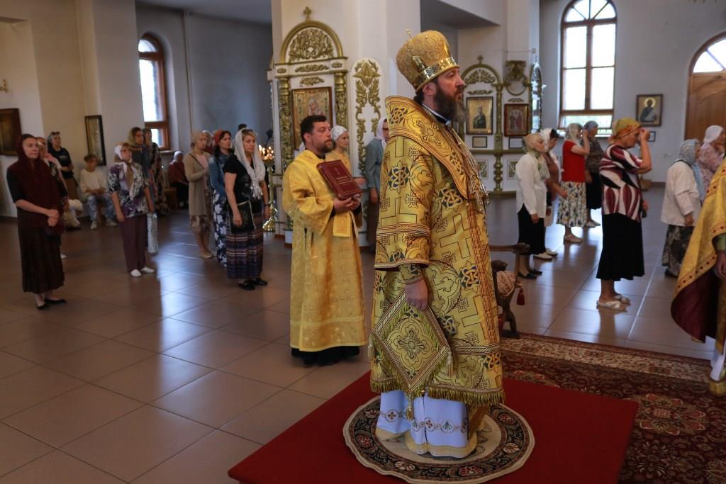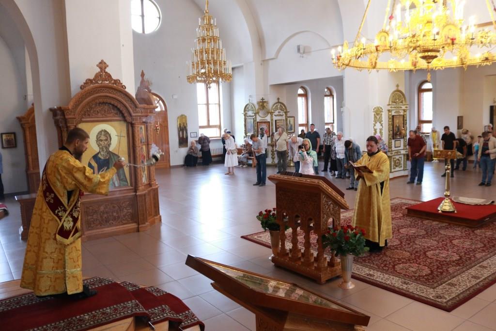 За воскресным богослужением молились сотрудники епархиального управления, насельники Свято-Троицкого мужского монастыря города Усть-Каменогорска, паломники и прихожане Андреевского собора. Песнопения Литургии и праздника святых мучеников исполнял хор кафедрального собора под управлением регента В. Федоровой.