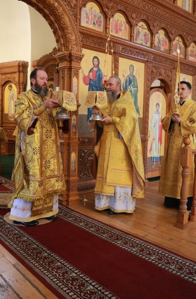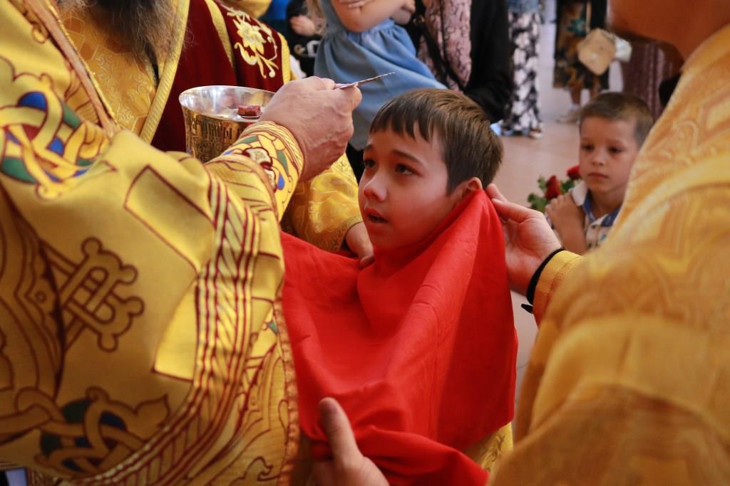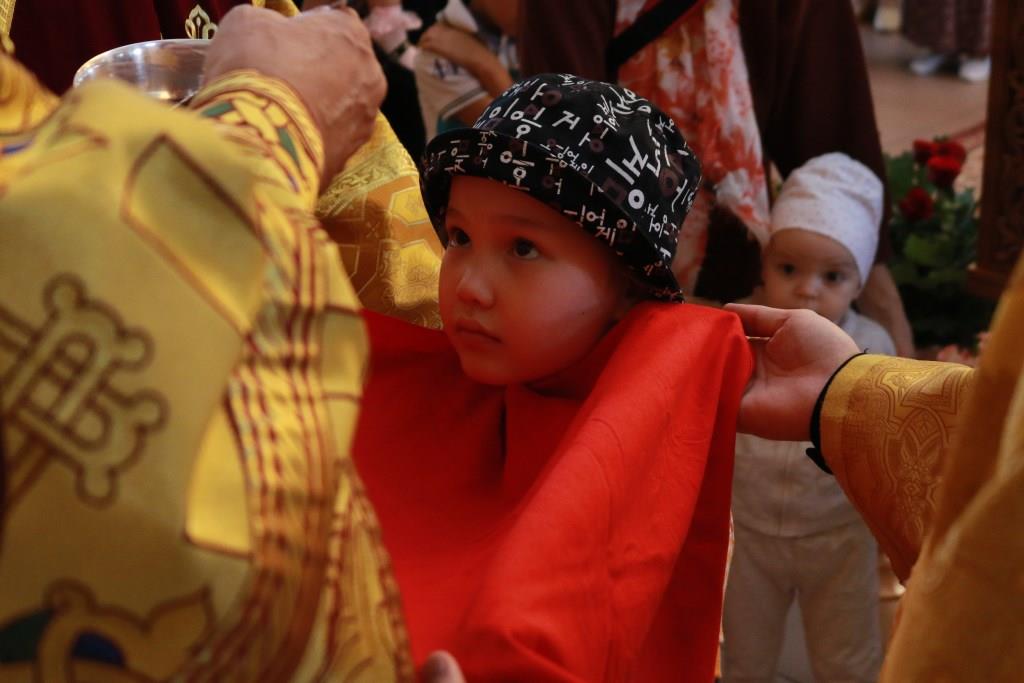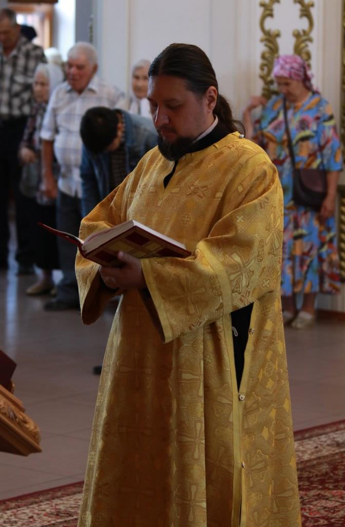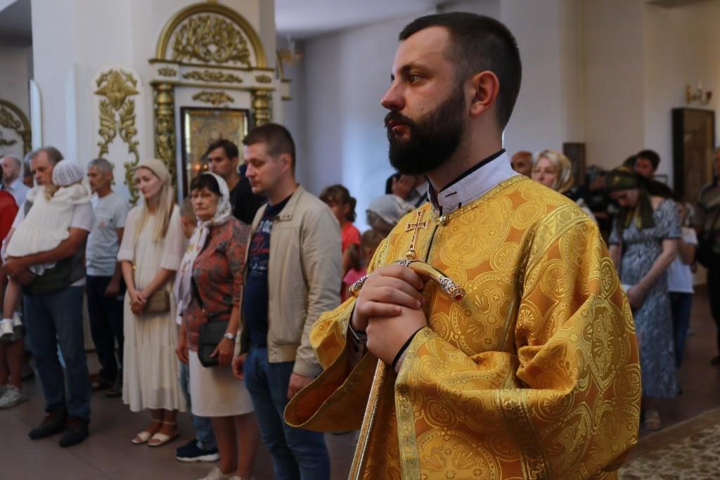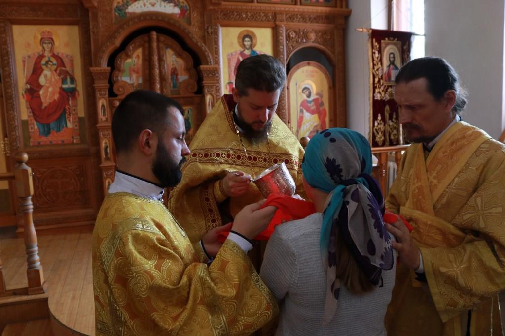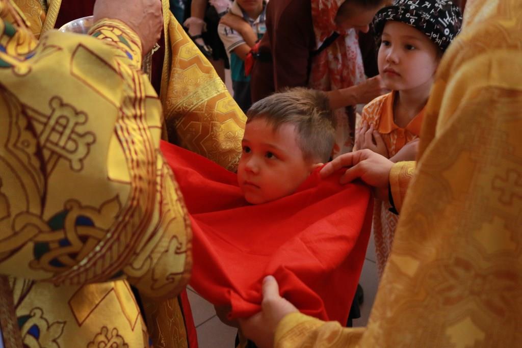 За воскресным богослужением молились сотрудники епархиального управления, насельники Свято-Троицкого мужского монастыря города Усть-Каменогорска, паломники и прихожане Андреевского собора. Песнопения Литургии и праздника святых мучеников исполнял хор кафедрального собора под управлением регента В. Федоровой.