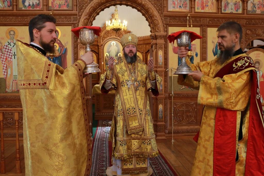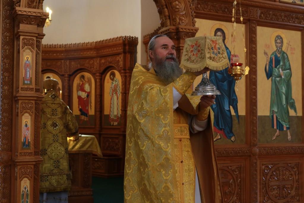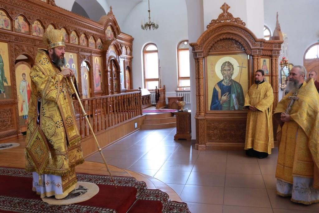 Управляющий Усть-Каменогорской и Семипалатинской епархией Высокопреосвященнейший архиепископ Амфилохий возглавил служение Божественной Литургии святителя Иоанна Златоуста в кафедральном соборе во имя святого апостола Андрея Первозванного города Усть-Каменогорска. Архипастырю сослужили: ключарь кафедрального собора иеромонах Никодим (Авдеев), клирик собора иеромонах Мефодий (Шевчук), протодиакон Георгий Засыпкин.