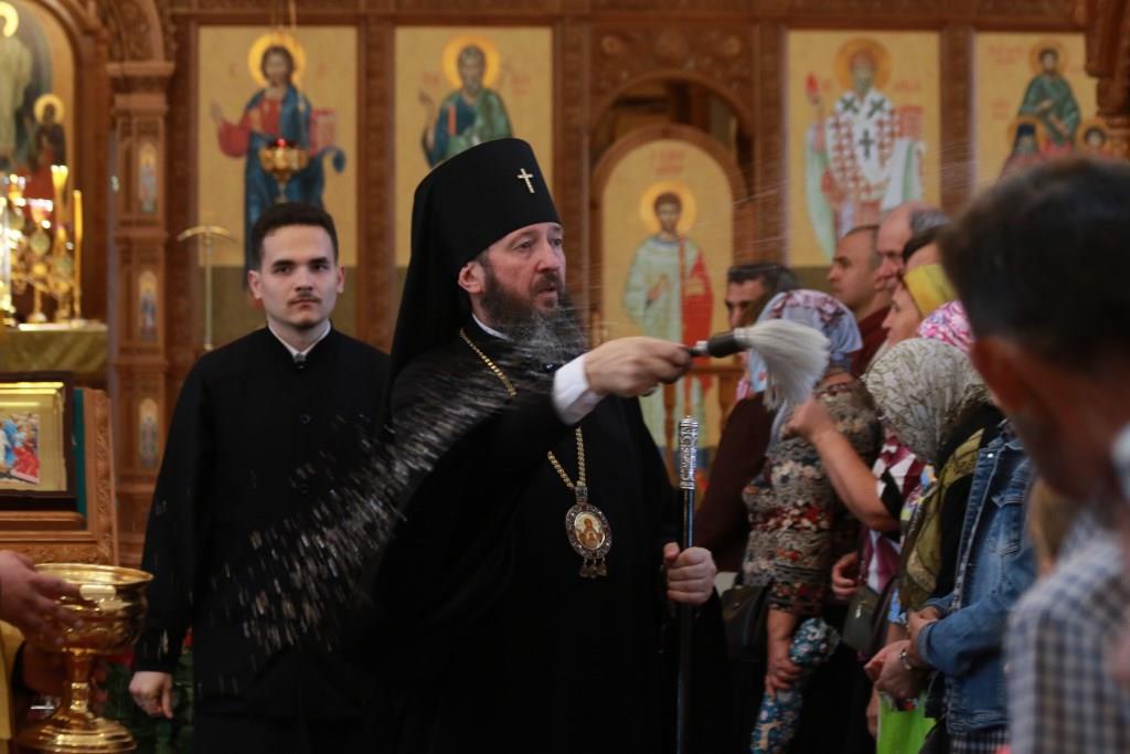 После проповеди Владыка архиепископ пожелал всем собравшимся крепости сил духовных и телесных и окропил прихожан святой водой.