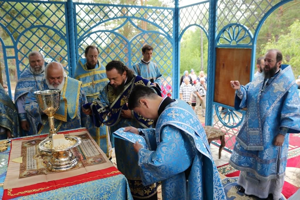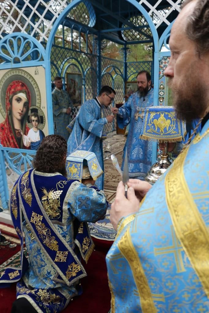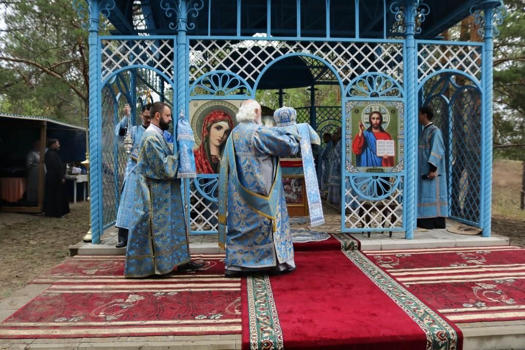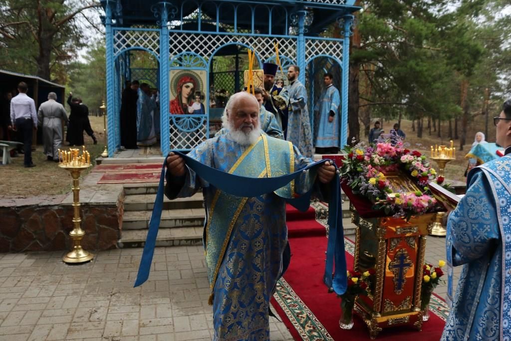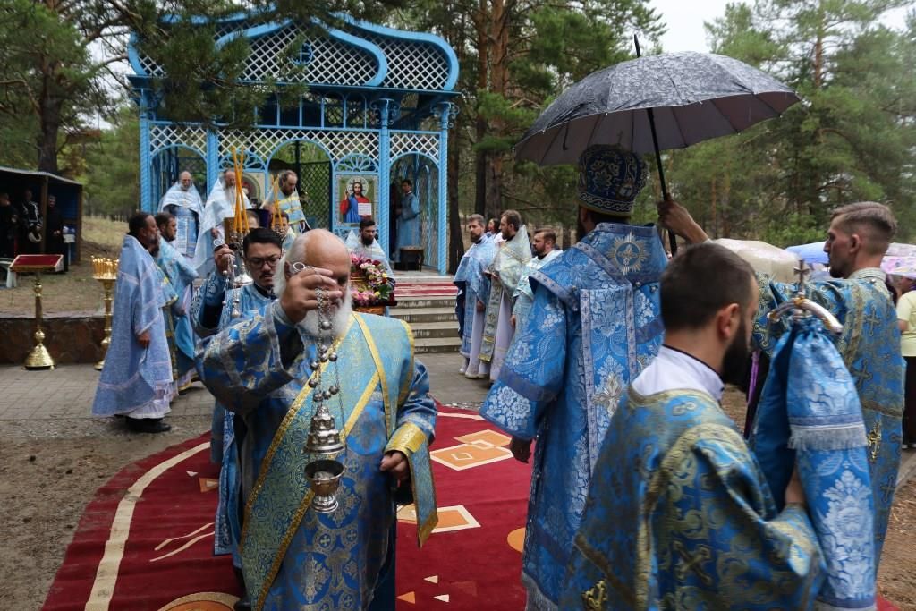 Песнопения праздника Пресвятой Богородицы и Божественной Литургии исполнял хор Воскресенского кафедрального собора под управлением регента Ю. Хохряковой. За богослужением молились многочисленные паломники и прихожане храмов Восточного Казахстана. Божественная Литургия совершалась в часовне, возведенной неподалёку от источника.