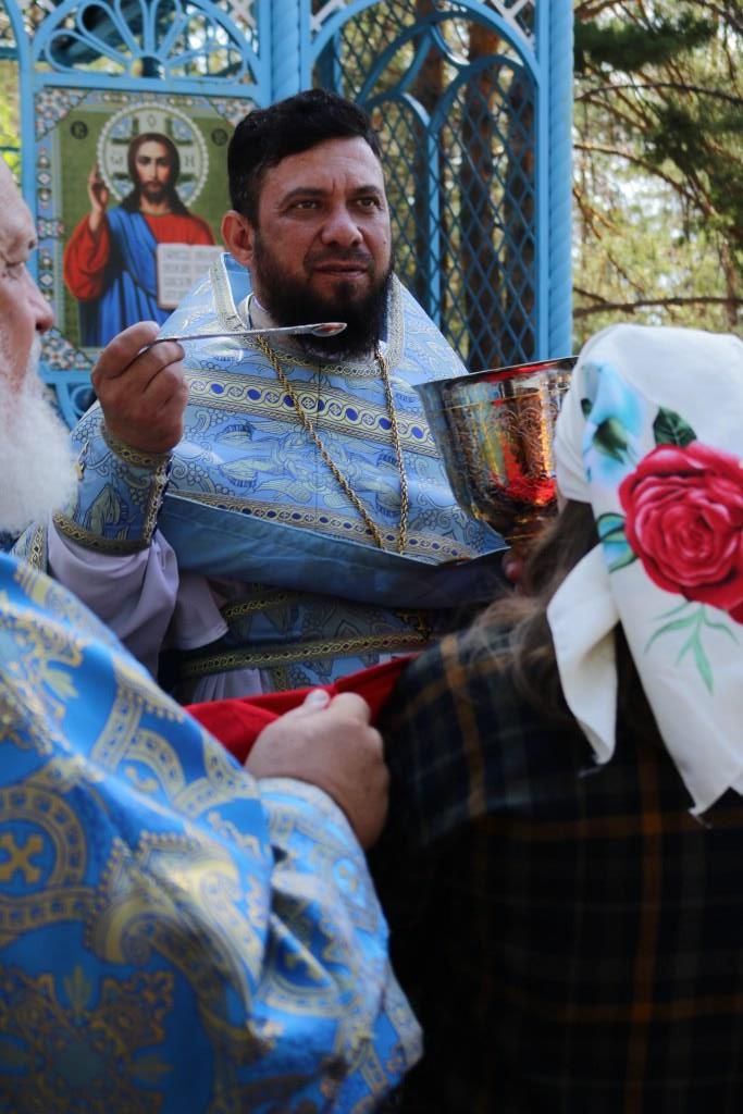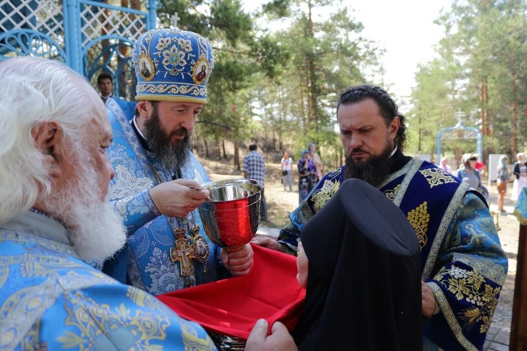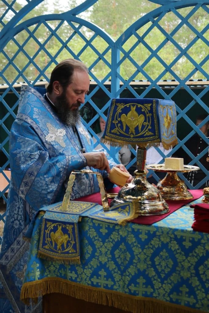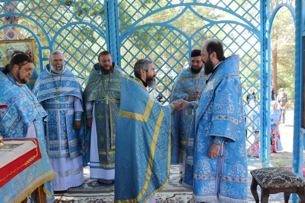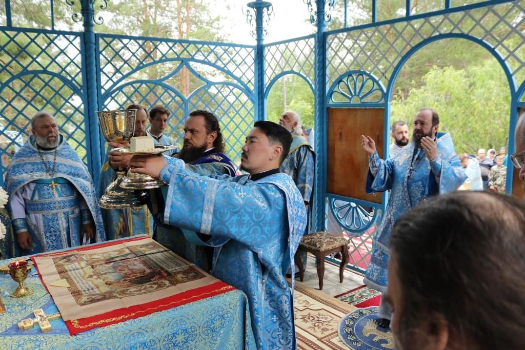 Песнопения праздника Пресвятой Богородицы и Божественной Литургии исполнял хор Воскресенского кафедрального собора под управлением регента Ю. Хохряковой. За богослужением молились многочисленные паломники и прихожане храмов Восточного Казахстана. Божественная Литургия совершалась в часовне, возведенной неподалёку от источника.