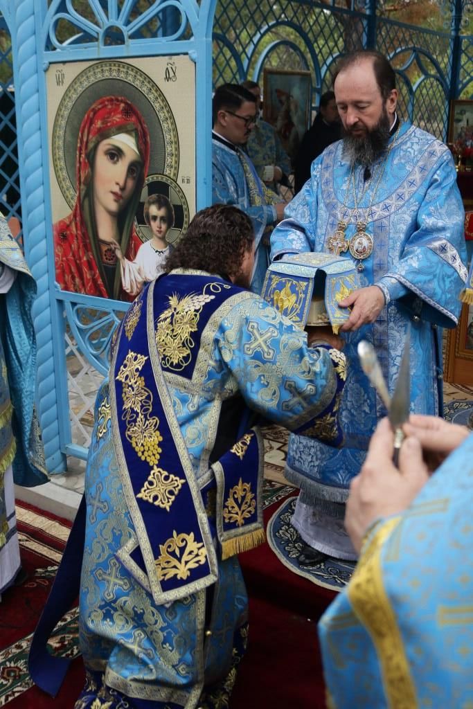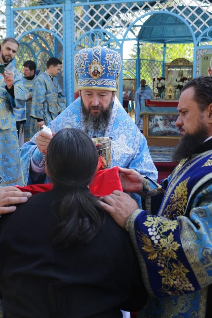 Перед причастием мирян проповедь произнес настоятель Покровского собора города Усть-Каменогорска иеромонах Силуан (Магилев). По окончании Божественной литургии архипастырь с духовенством и молящимися совершили славление Пресвятой Богородице, после чего владыка обратился к паломникам со словами проповеди.