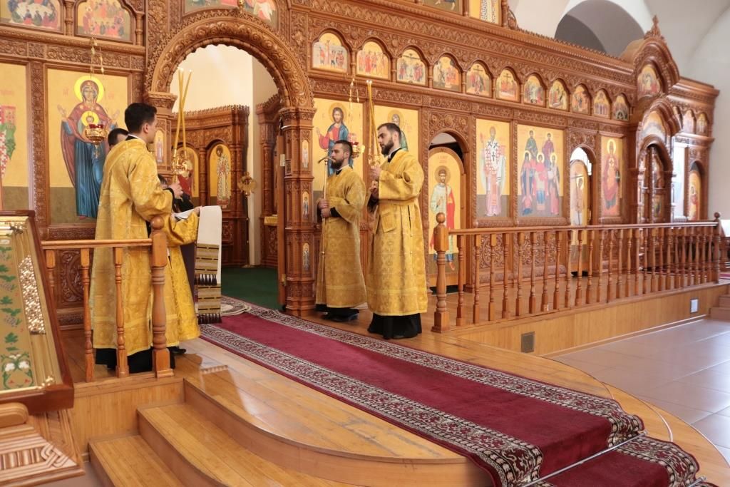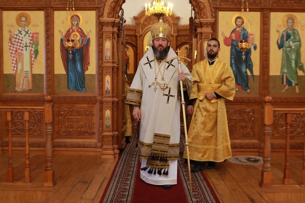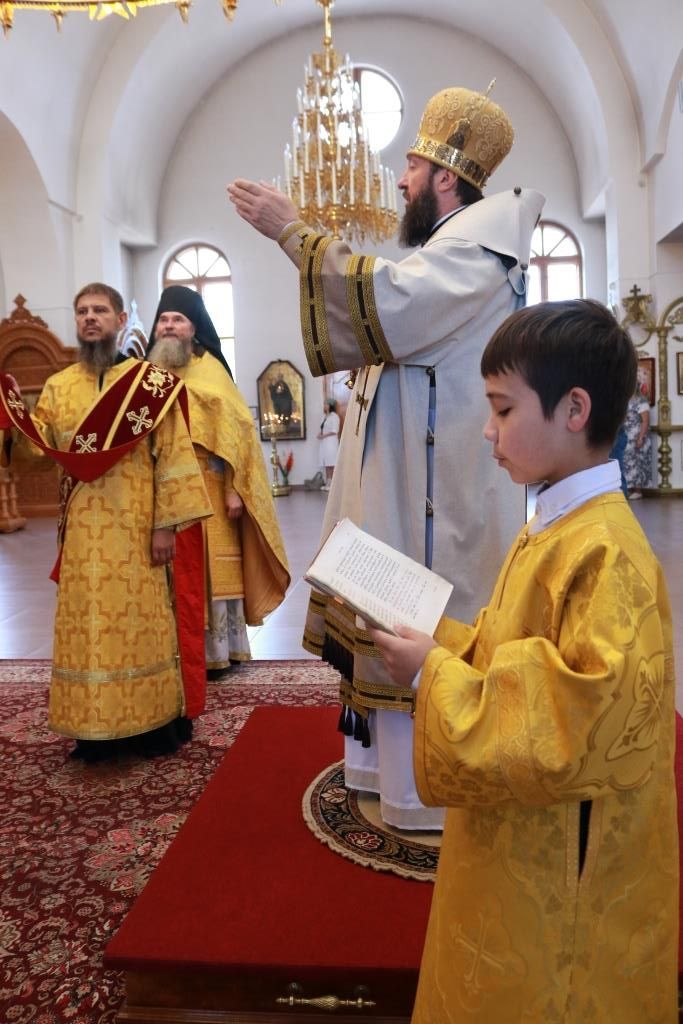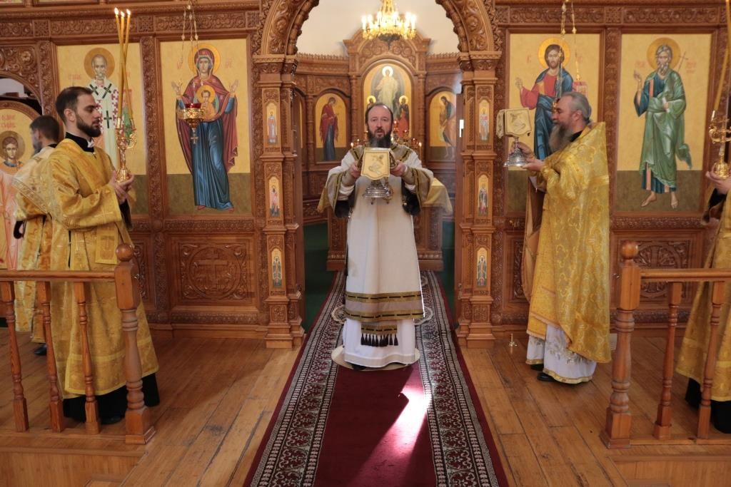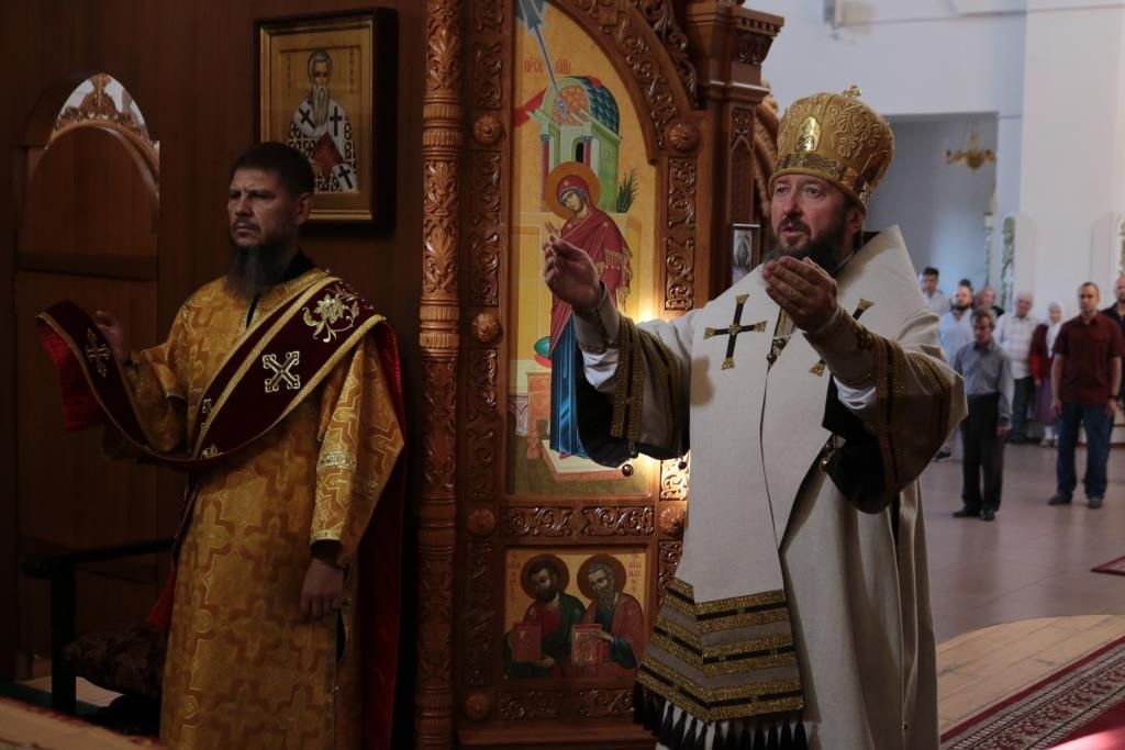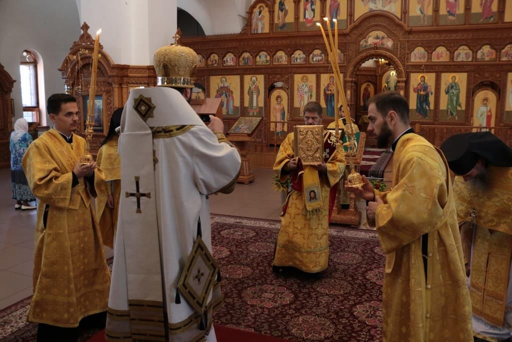 Высокопреосвященнейший архиепископ Усть-Каменогорский и Семипалатинский Амфилохий возглавил служение Божественной Литургии святителя Иоанна Златоуста в Андреевском кафедральном соборе – главном храме Рудного Алтая. Его Высокопреосвященству сослужили: ключарь кафедрального собора иеромонах Никодим (Авдеев), клирики собора иеромонах Мефодий (Шевчук) и протодиакон Георгий Засыпкин.