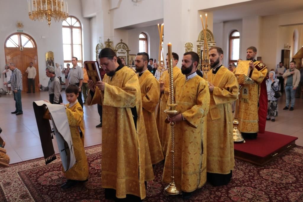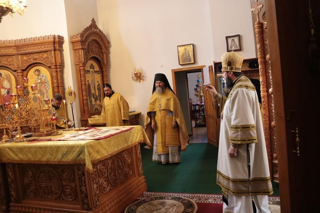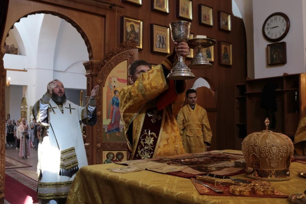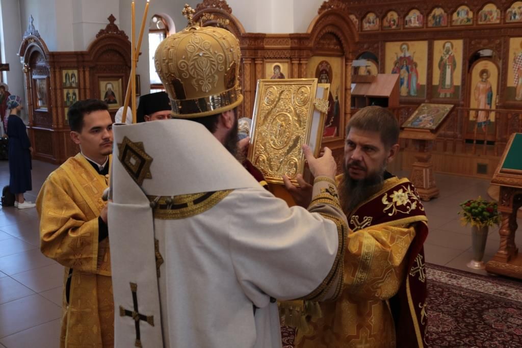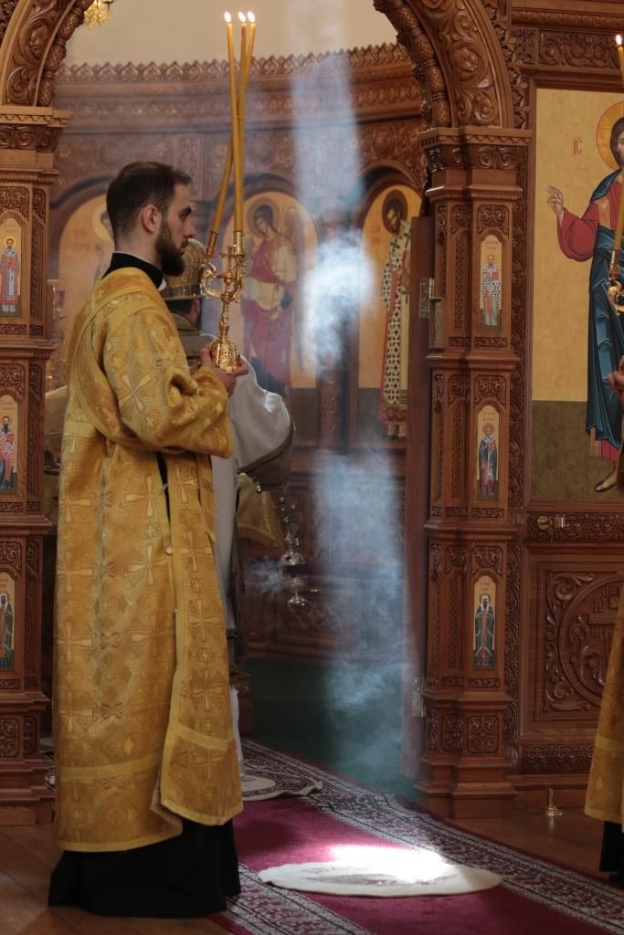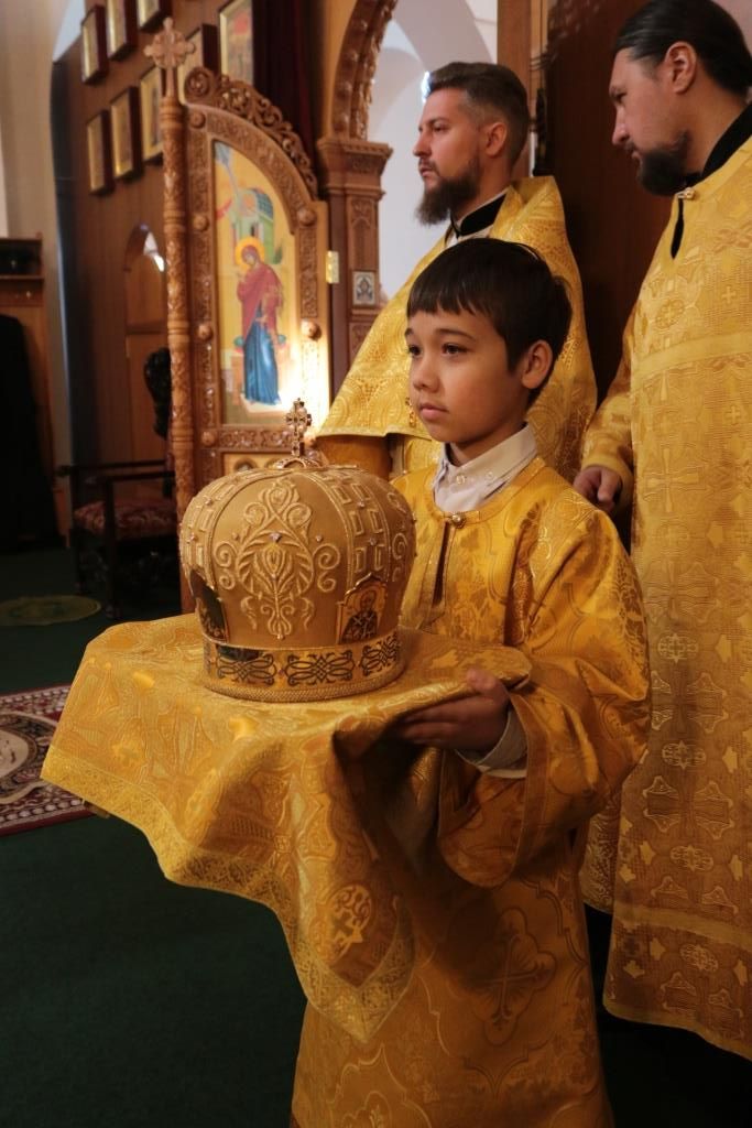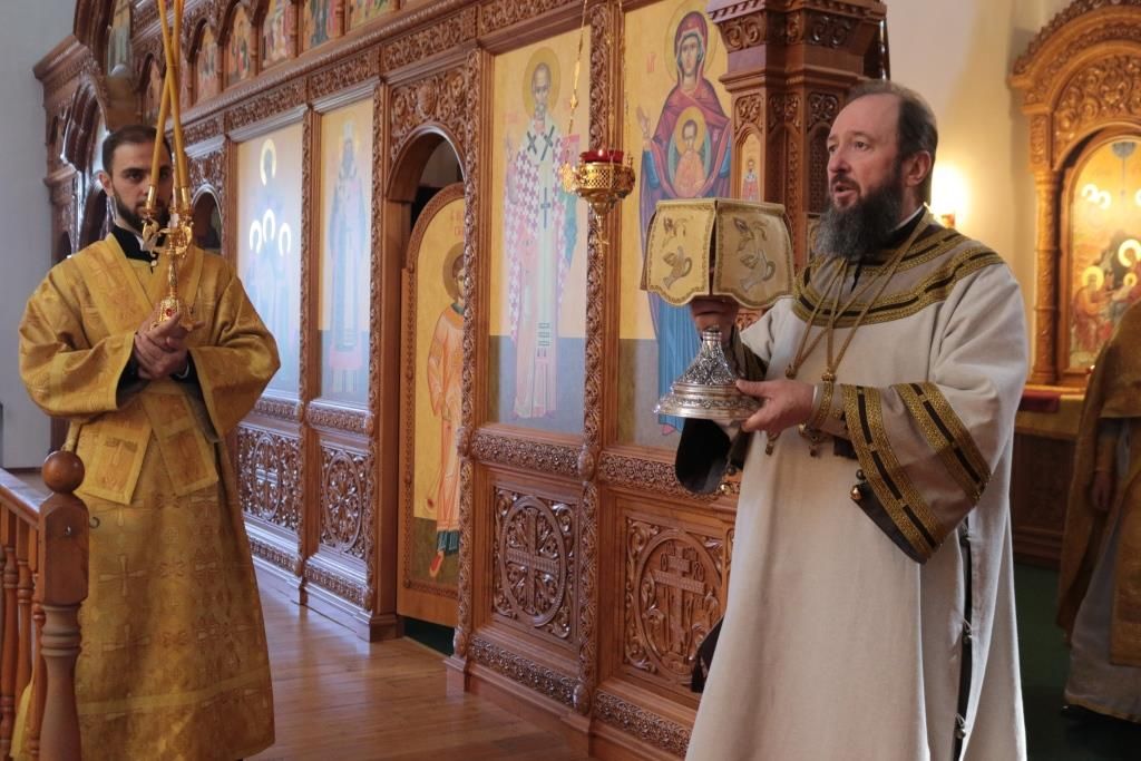 Высокопреосвященнейший архиепископ Усть-Каменогорский и Семипалатинский Амфилохий возглавил служение Божественной Литургии святителя Иоанна Златоуста в Андреевском кафедральном соборе – главном храме Рудного Алтая. Его Высокопреосвященству сослужили: ключарь кафедрального собора иеромонах Никодим (Авдеев), клирики собора иеромонах Мефодий (Шевчук) и протодиакон Георгий Засыпкин.