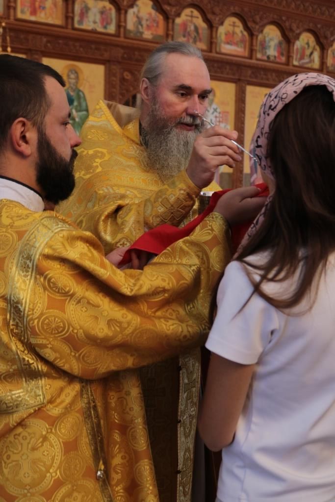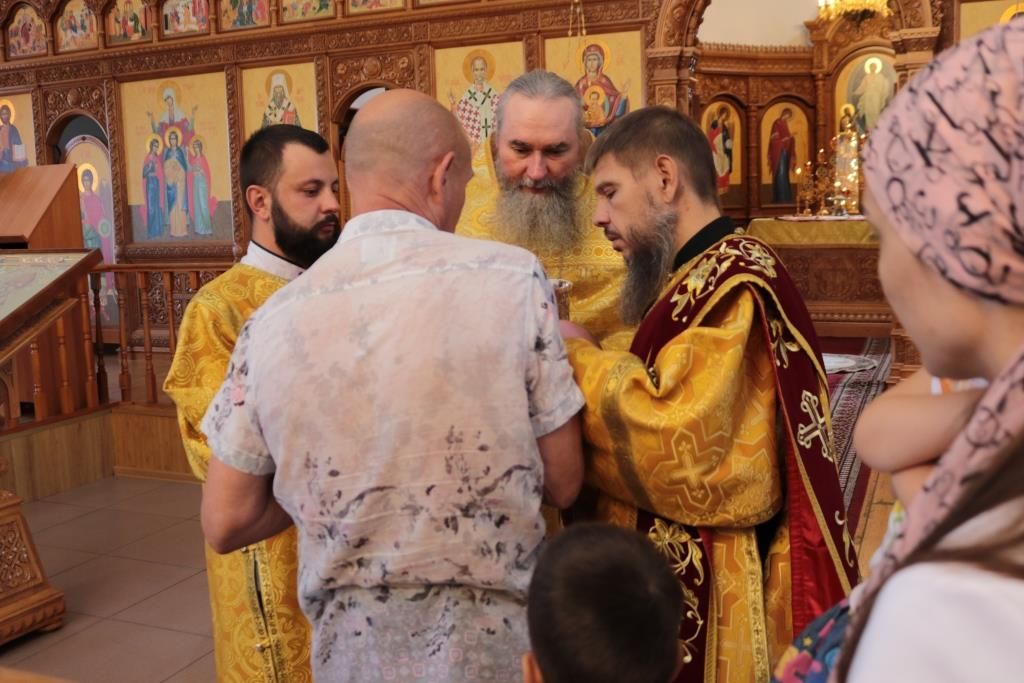 После проповеди Владыка архиепископ пожелал всем собравшимся крепости духовных и телесных и окропил прихожан святой водой.