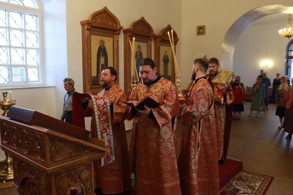 Архиепископ Усть-Каменогорский и Семипалатинский Амфилохий возглавил служение Божественной Литургии святителя Иоанна Златоуста в храме в честь Святой Троицы усть-каменогорского Свято-Троицкого мужского монастыря. Его Высокопреосвященству сослужили: ключарь кафедрального собора, духовник монастыря иеромонах Никодим (Авдеев), клирики кафедрального собора иеромонах Мефодий (Шевчук) и протодиакон Георгий Засыпкин.