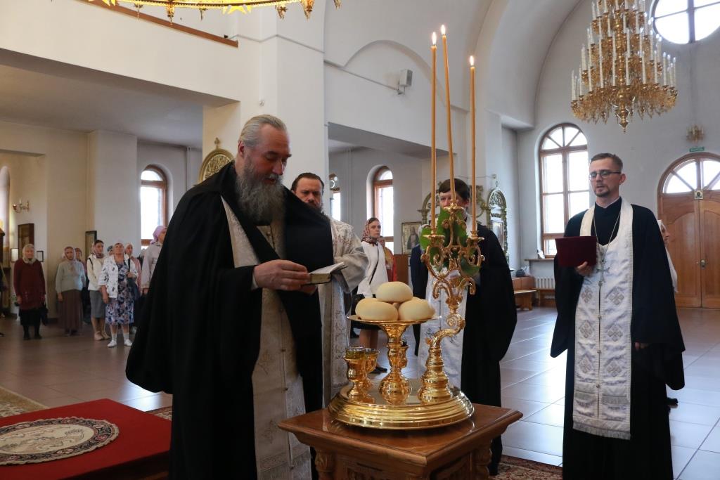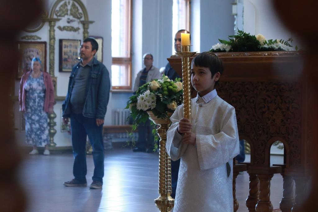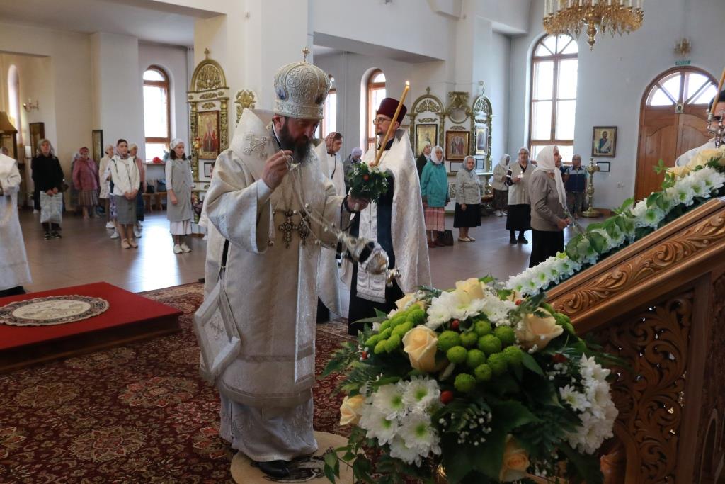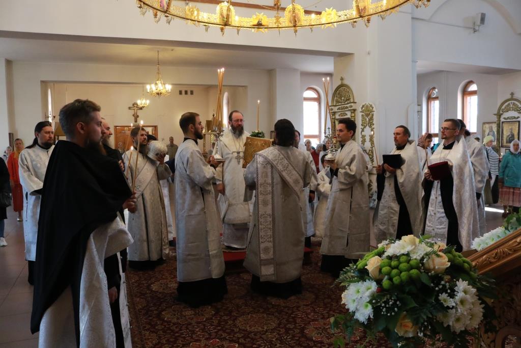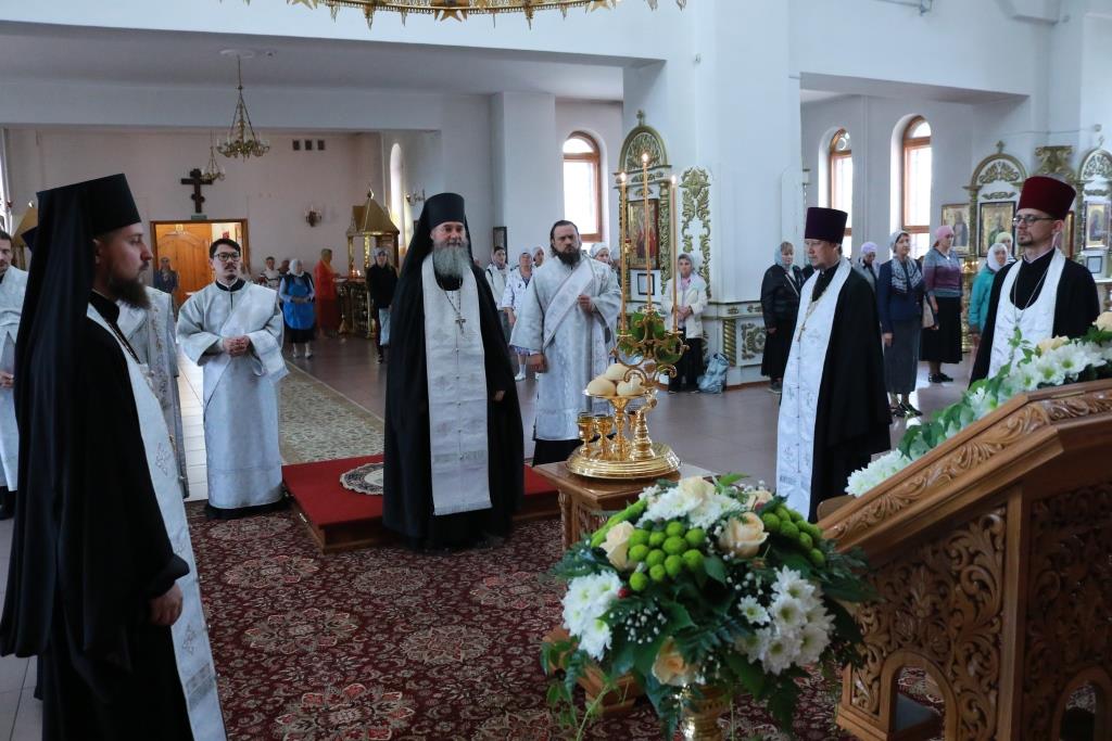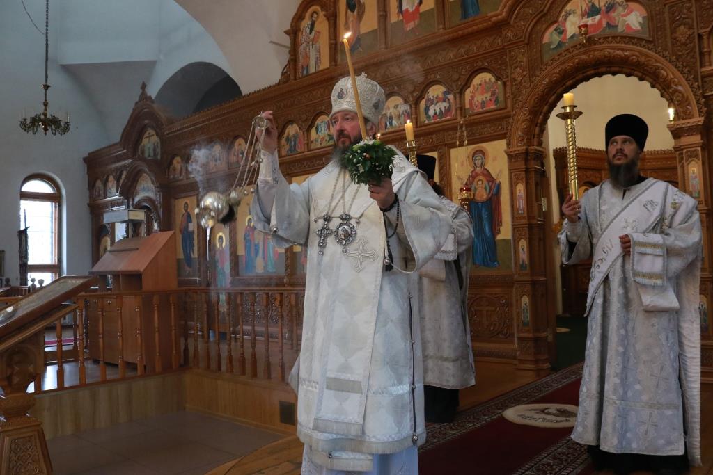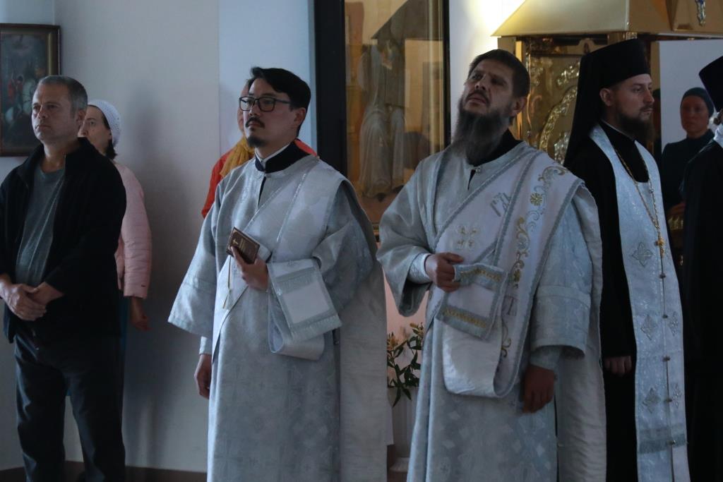За вечерним богослужением Архипастырю сослужили клирики кафедрального собора. Песнопения праздника Преображения исполнял хор Андреевского собора, регент Н. Романцова. За богослужением молились насельники Свято-Троицкого мужского монастыря города Усть-Каменогорска, сотрудники епархиального управления и прихожане главного храма Восточного Казахстана. После помазания освященным елеем все молящиеся получили очередной номер приходского издания «Андреевский листок».