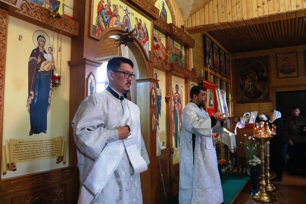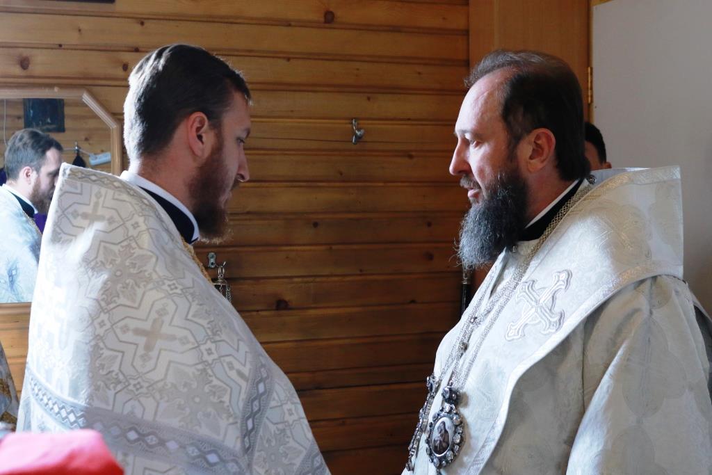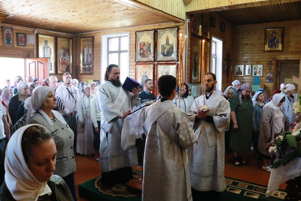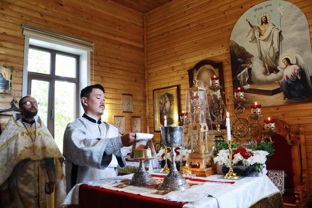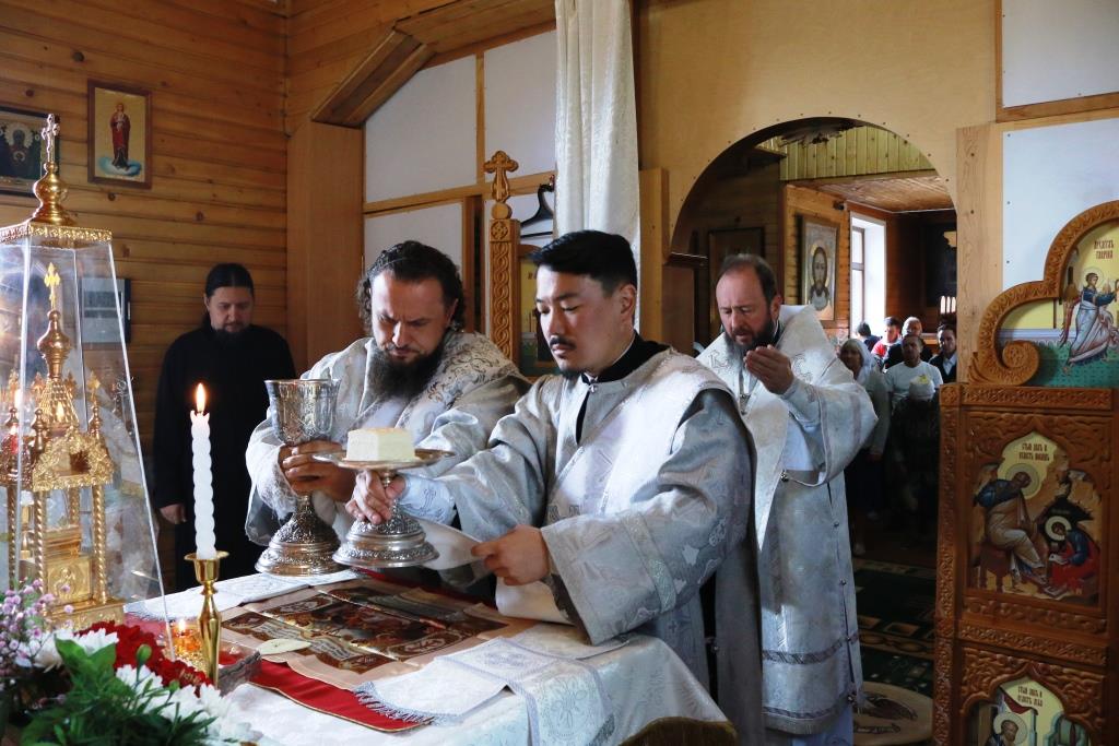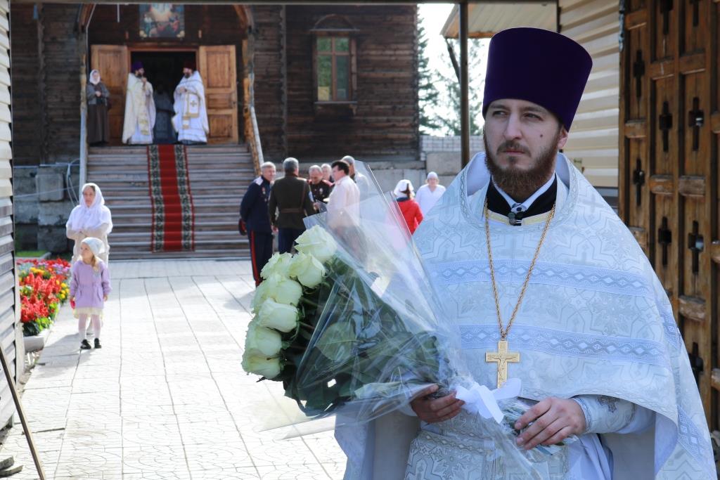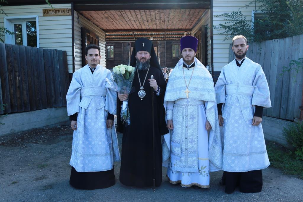 Владыке архиепископу сослужили: благочинный Усть-Каменогорского церковного округа протоиерей Евгений Яганов, настоятель Казанского храма пос. Усть-Таловка проттоиерей Роман Сычу, настоятель Преображенского храма иерей Антоний Плотников, клирик Андреевского кафедрального собора иеромонах Мефодий (Шевчук), секретарь епархии диакон Илия Кван, протодиакон Андрей Дудник. Песнопения Литургии и праздника исполнял приходской хор. За архиерейским богослужением молились прихожане и паломники Преображенского храма, жители города Шемонаихи и окрестных населённых пунктов. Перед причастием мирян проповедовал прот. Роман Сычук.