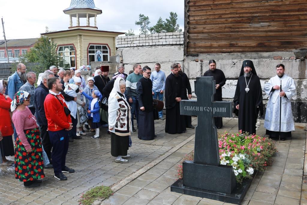 По окончании проповеди Высокопреосвященнейший Владыка с клириками и прихожанами совершил заупокойную литию на месте погребения приснопоминаемого иерея Виктора Калины, строителя Спасо-Преображенского храма. Праздничное богослужение завершилось братской трапезной.