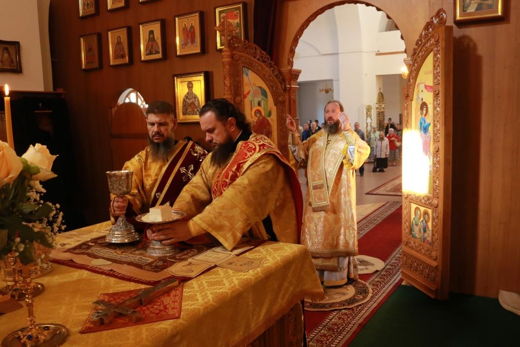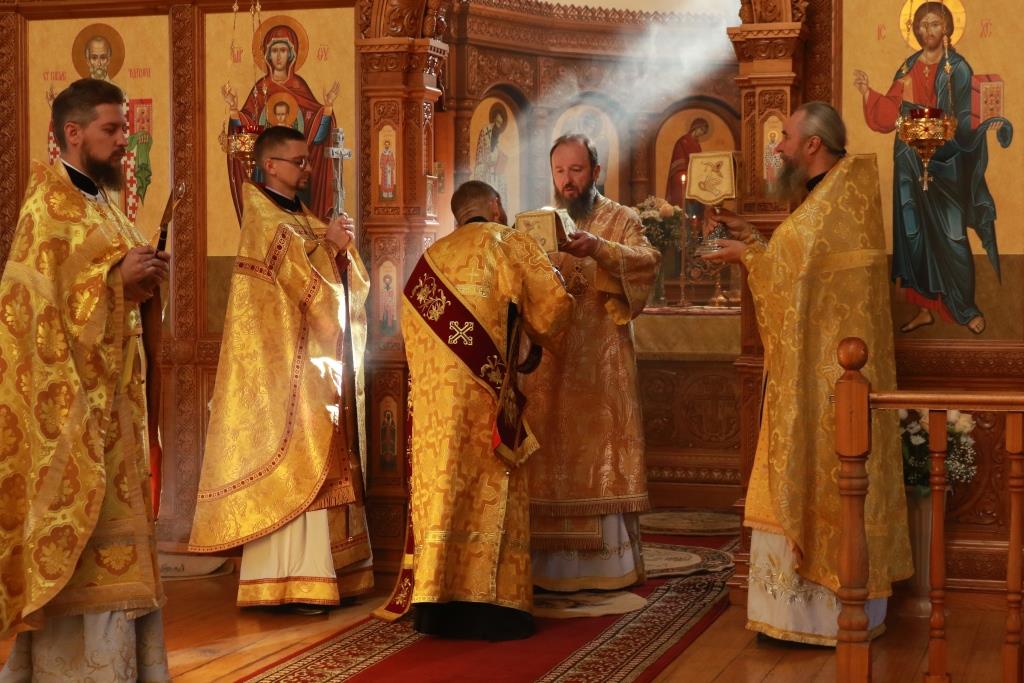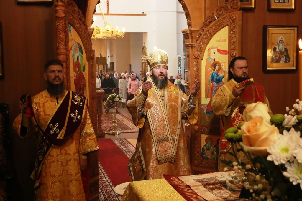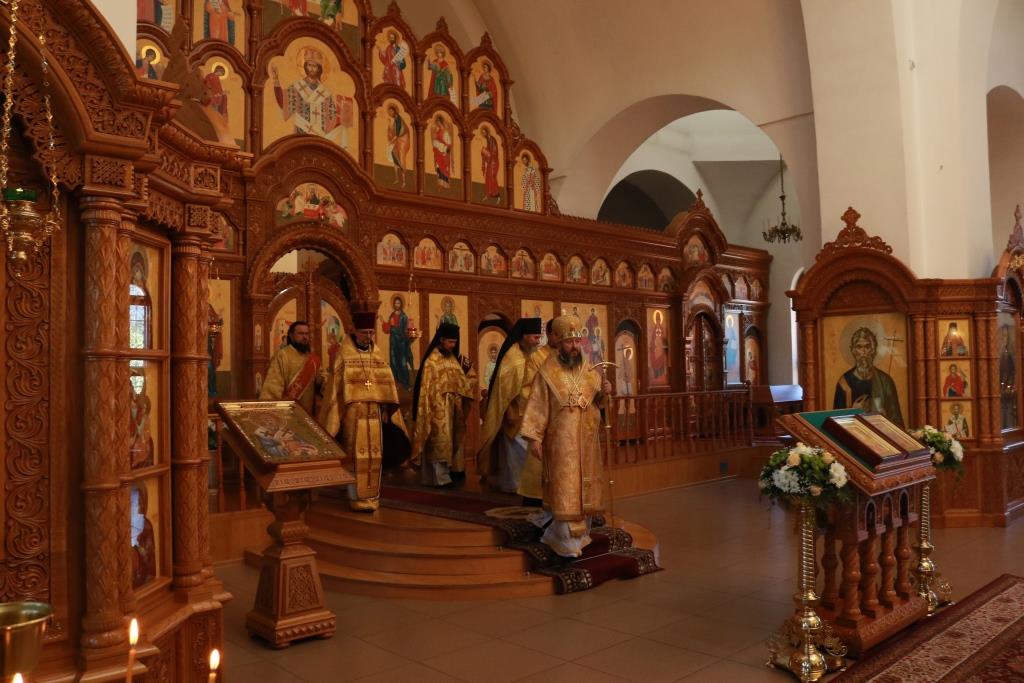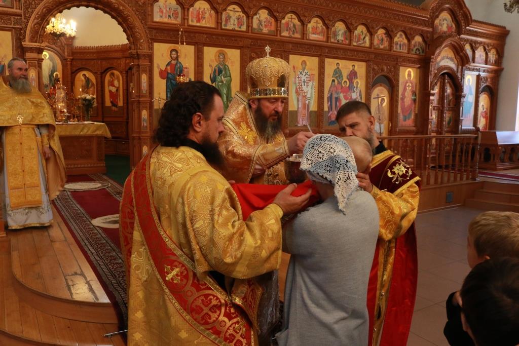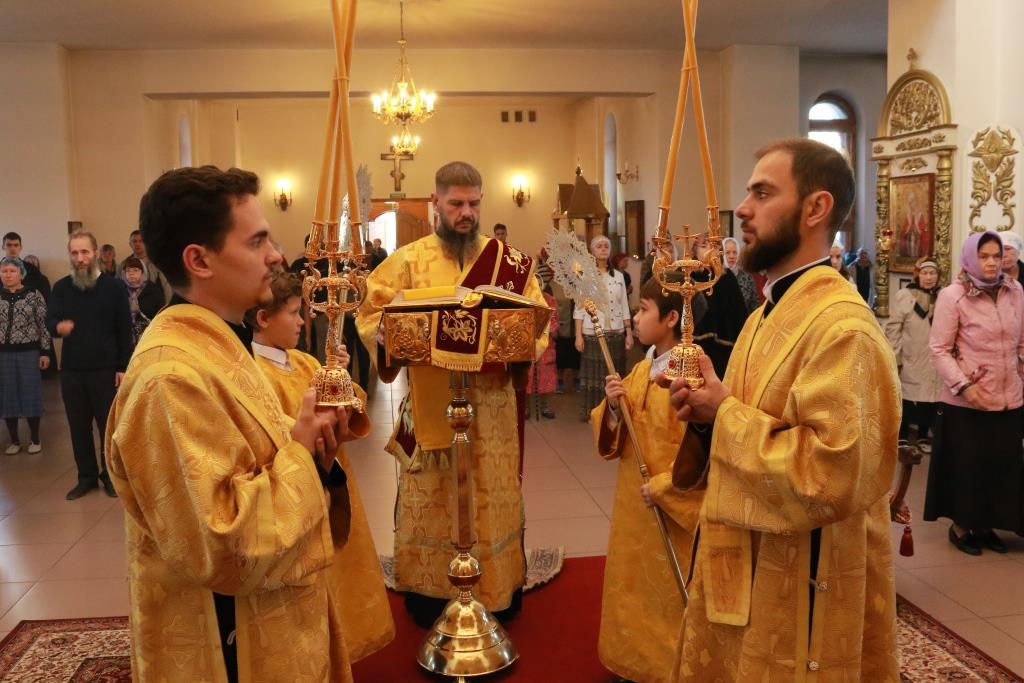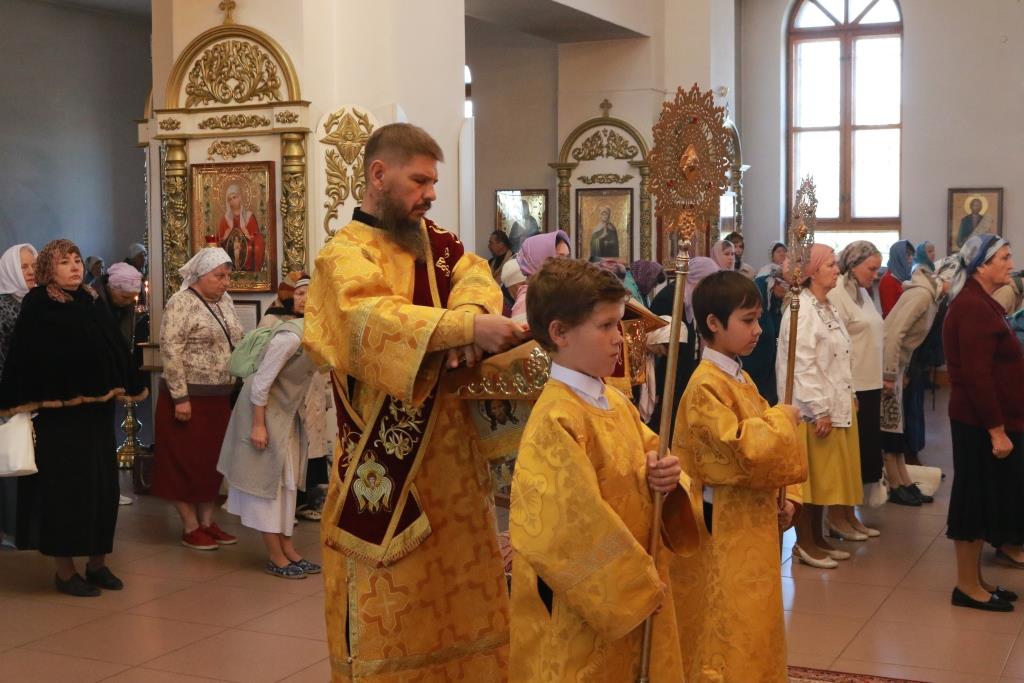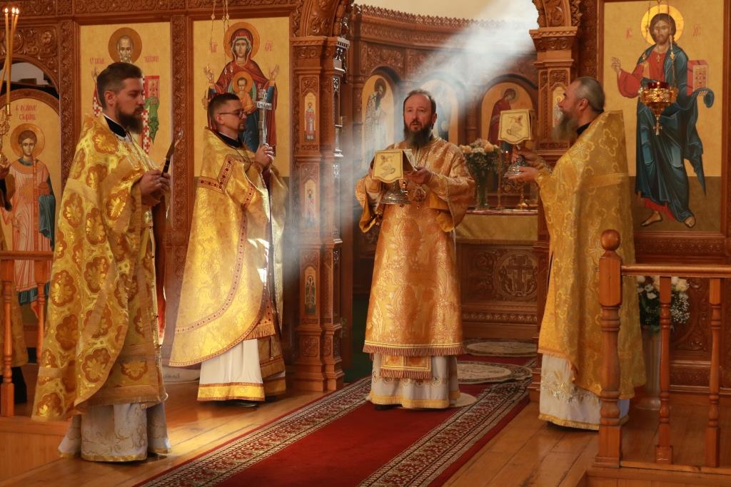 Песнопения Божественной Литургии исполнял хор кафедрального собора под управлением регента Н. Романцовой. За воскресным богослужением молились сотрудники епархиального управления, насельники Свято-Троицкого мужского монастыря города Усть-Каменогорска, паломники и прихожане Андреевского собора. Перед причастием мирян проповедовал иерей Константин Дьяков.