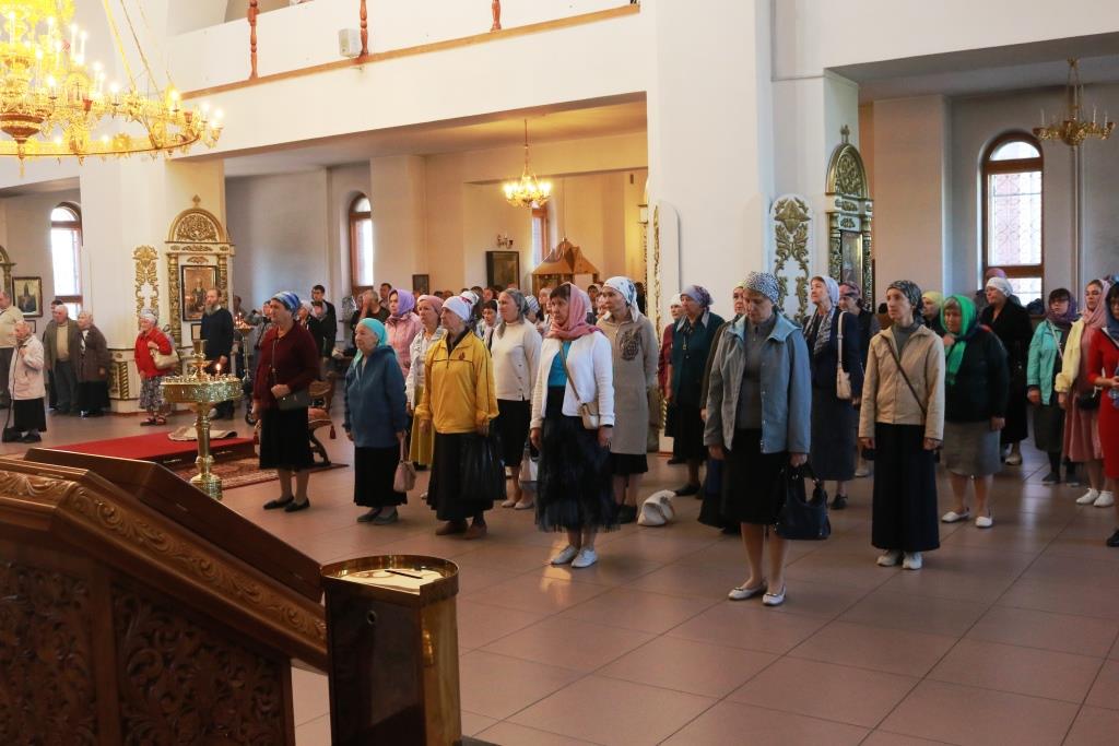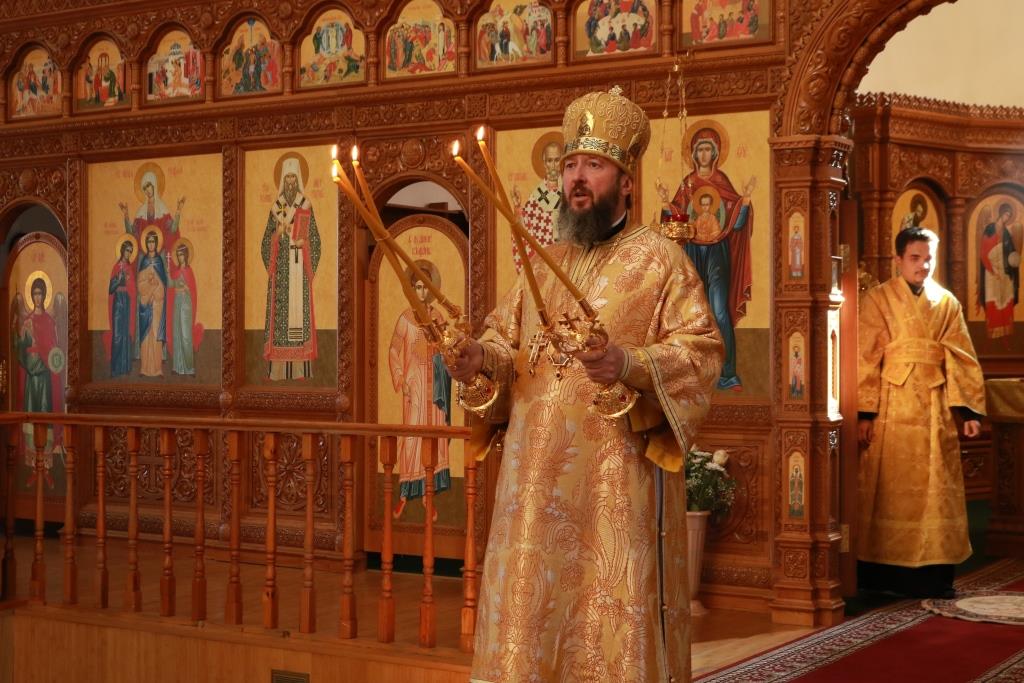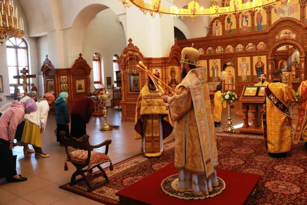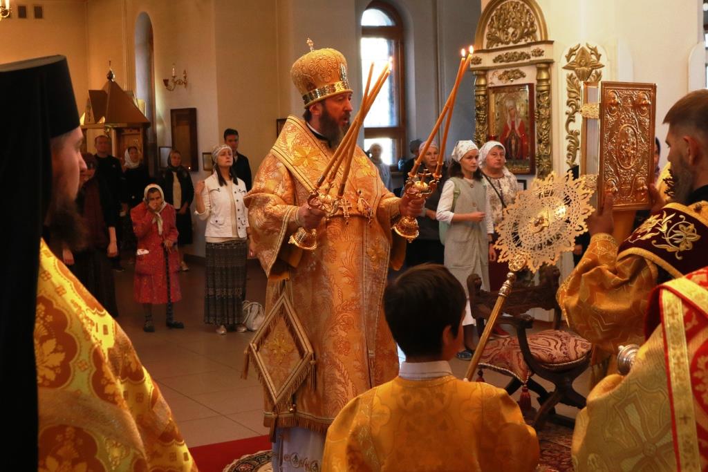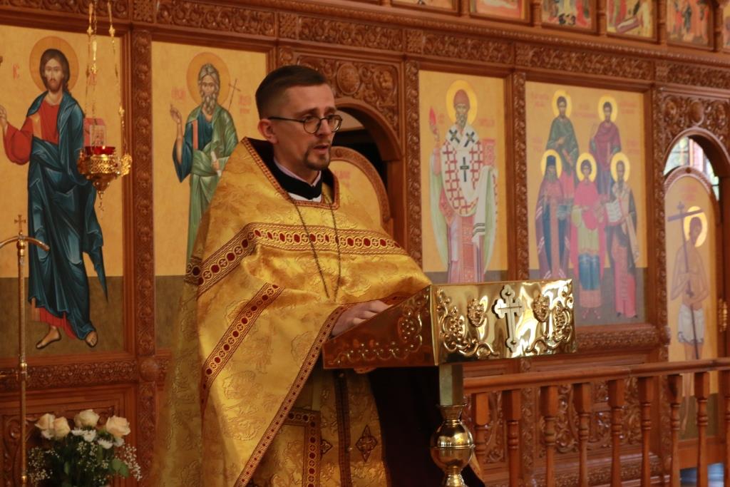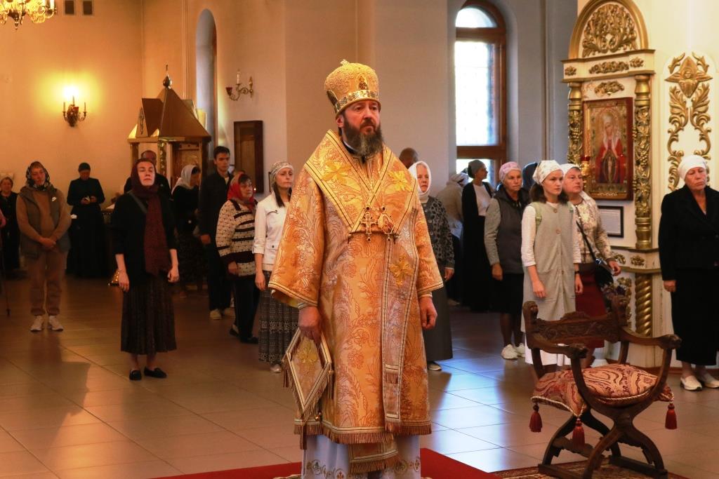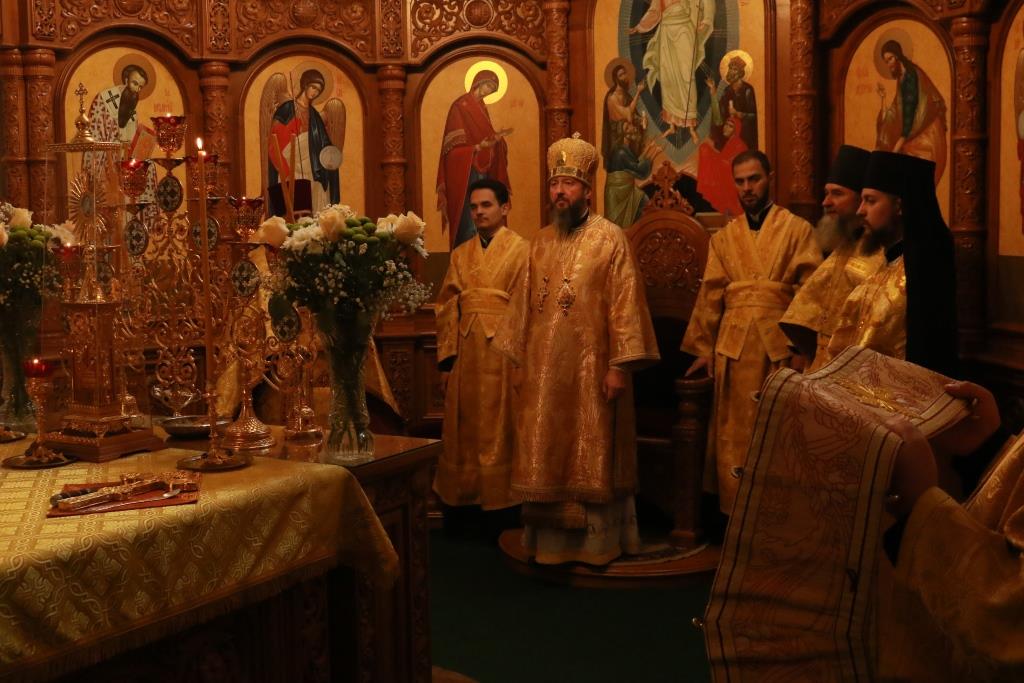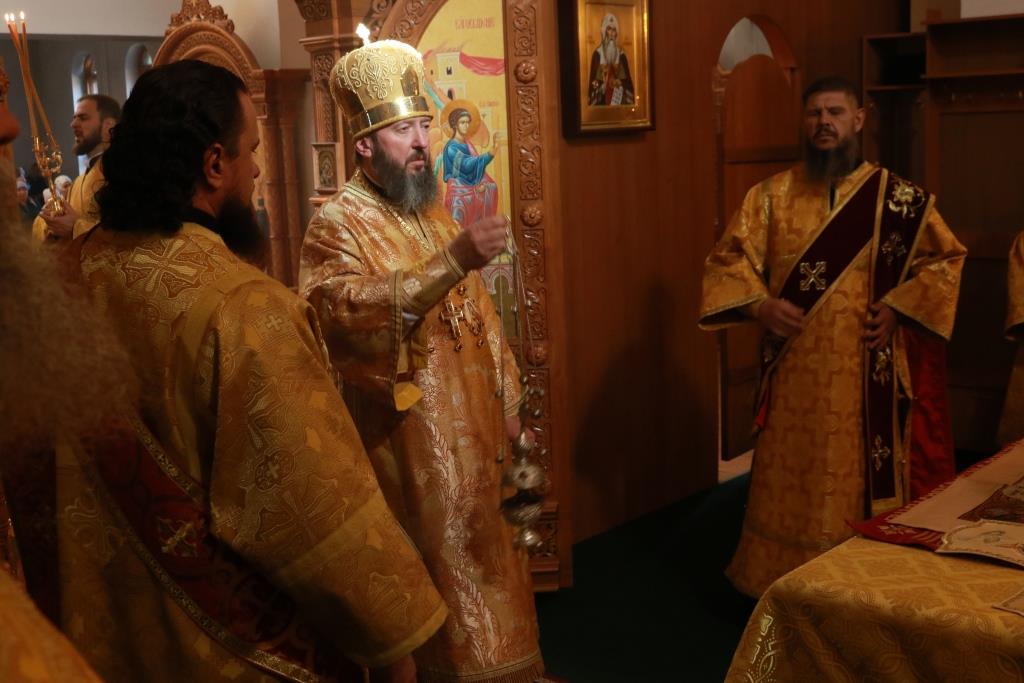 Песнопения Божественной Литургии исполнял хор кафедрального собора под управлением регента Н. Романцовой. За воскресным богослужением молились сотрудники епархиального управления, насельники Свято-Троицкого мужского монастыря города Усть-Каменогорска, паломники и прихожане Андреевского собора. Перед причастием мирян проповедовал иерей Константин Дьяков.