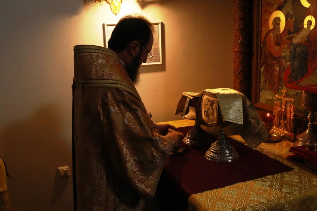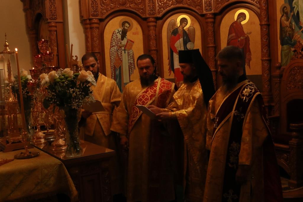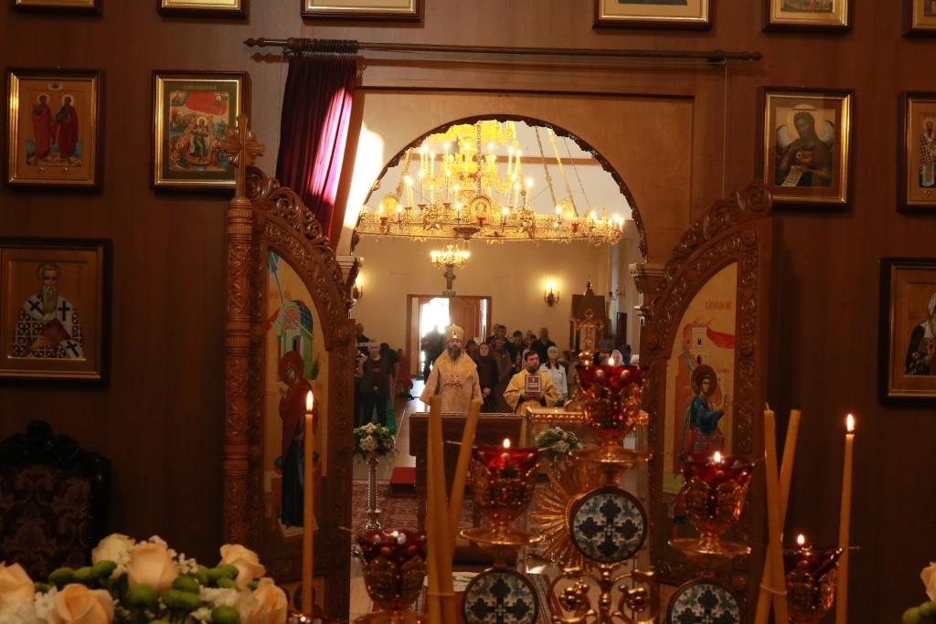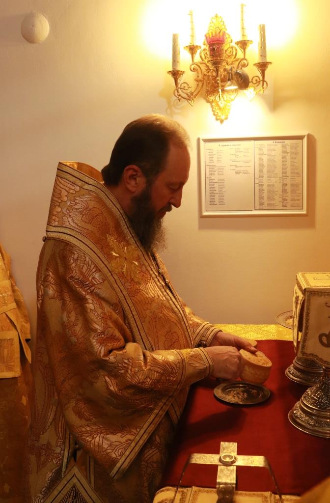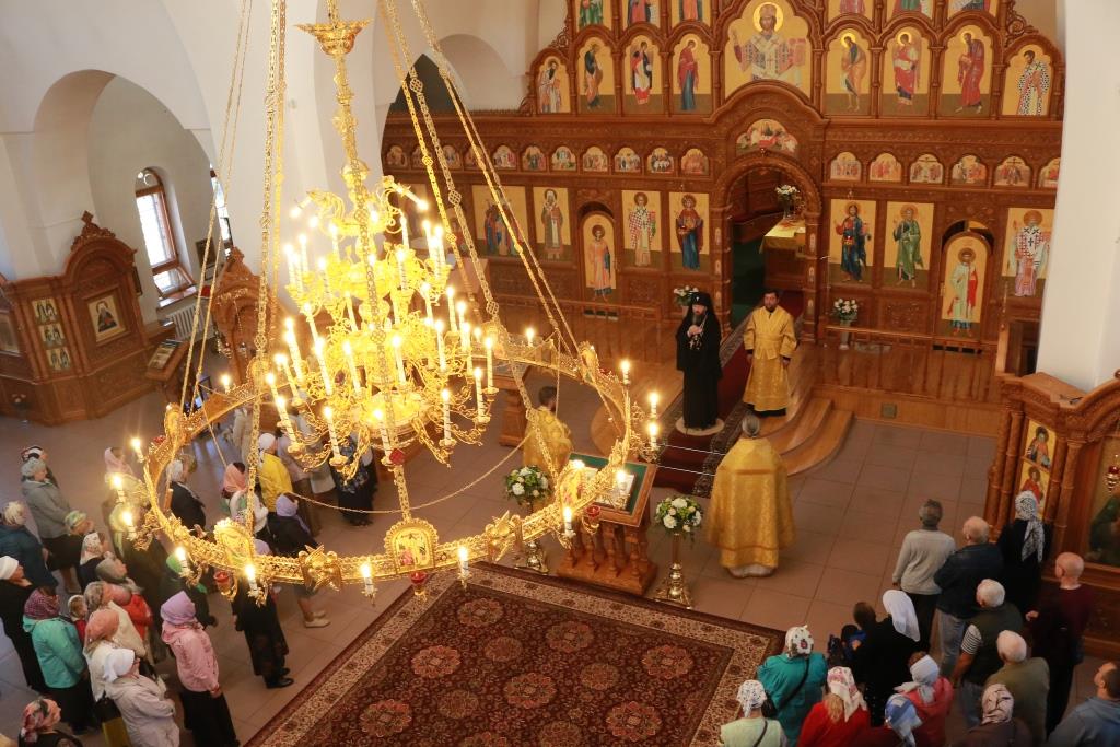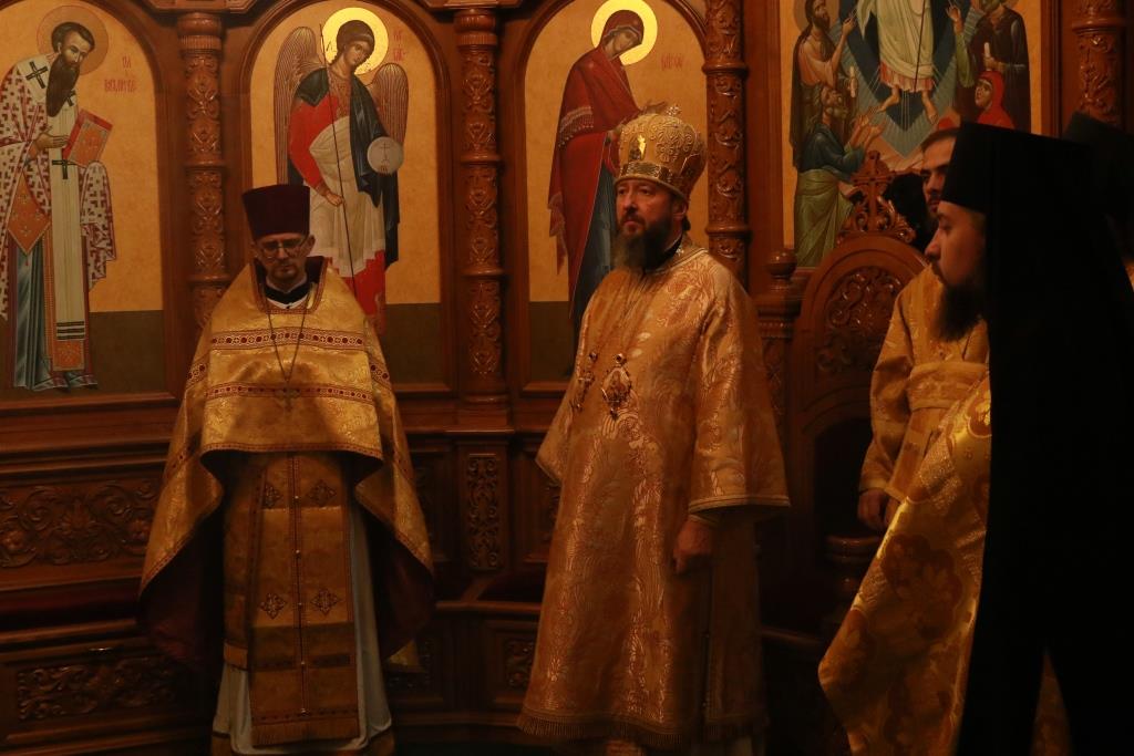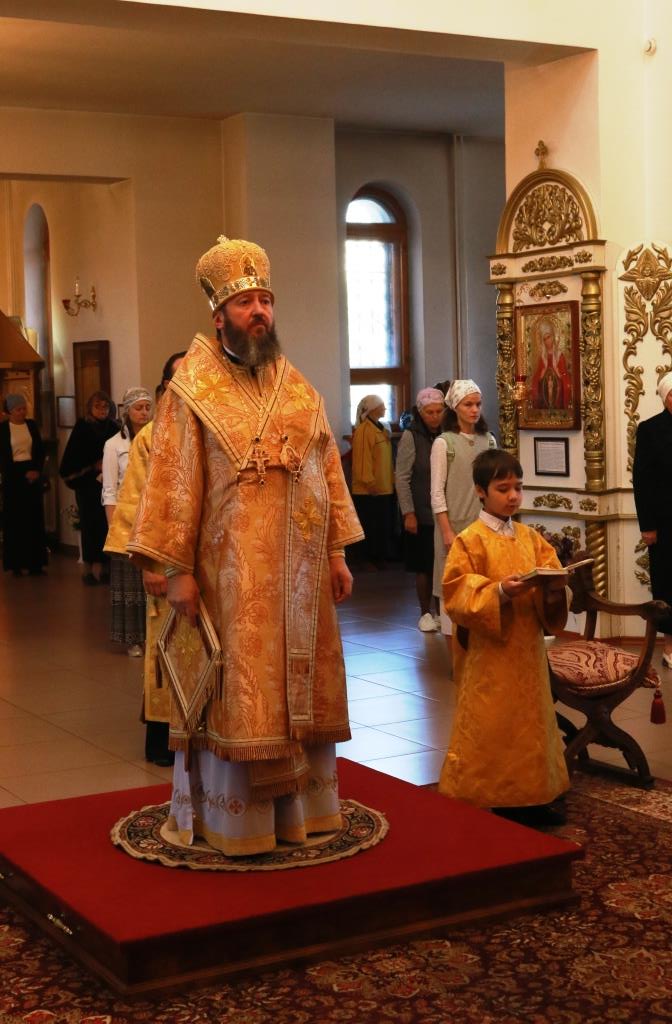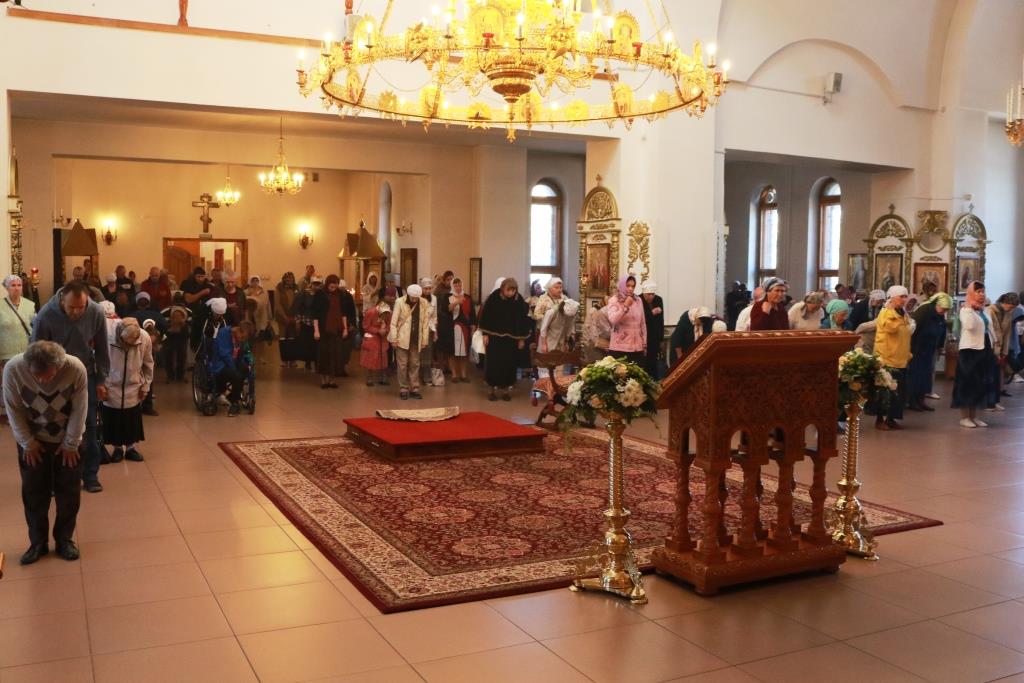 Песнопения Божественной Литургии исполнял хор кафедрального собора под управлением регента Н. Романцовой. За воскресным богослужением молились сотрудники епархиального управления, насельники Свято-Троицкого мужского монастыря города Усть-Каменогорска, паломники и прихожане Андреевского собора. Перед причастием мирян проповедовал иерей Константин Дьяков.