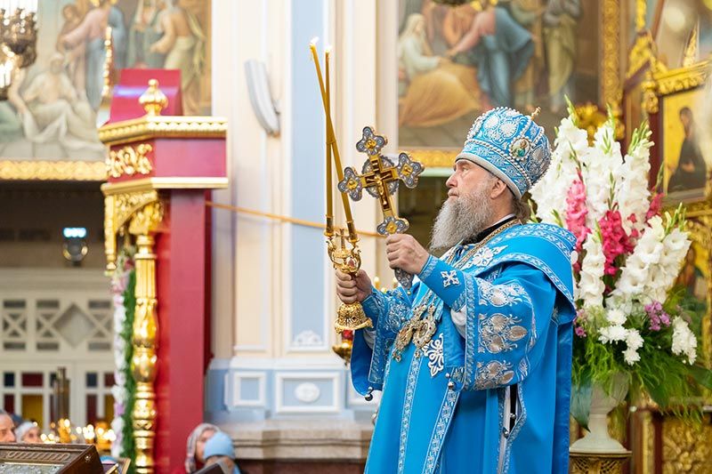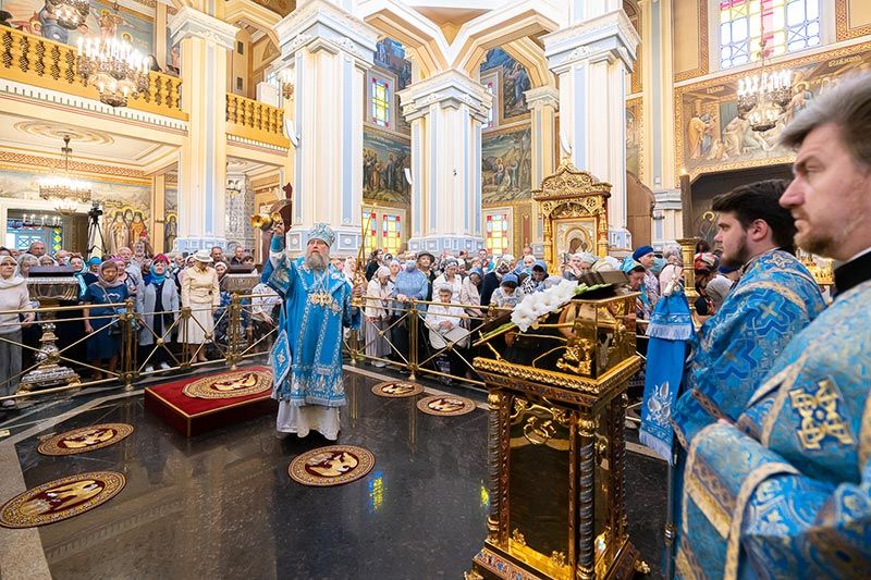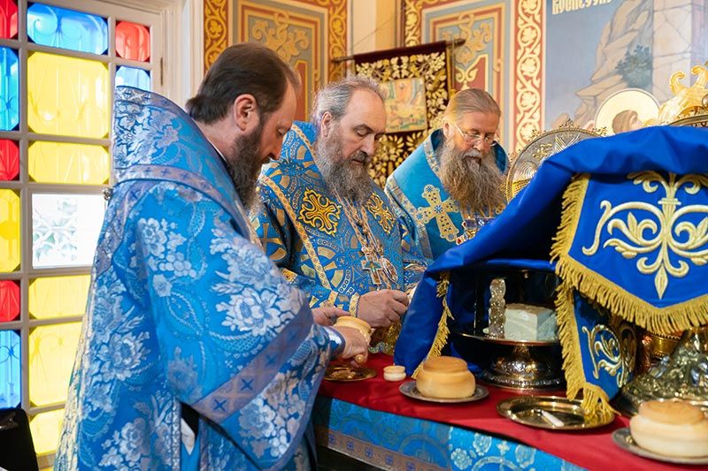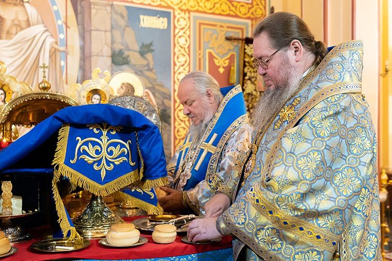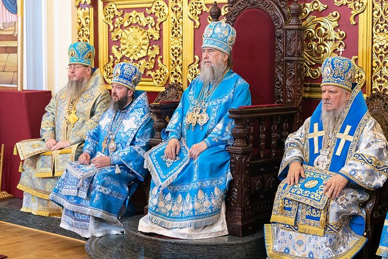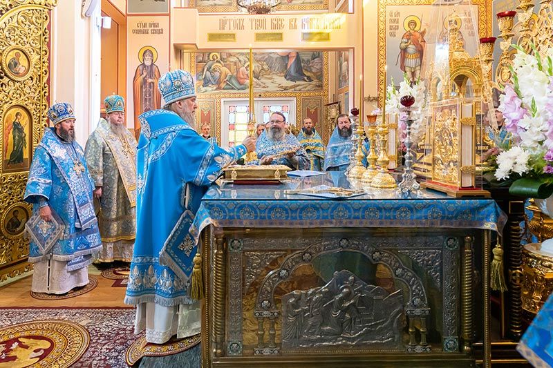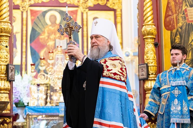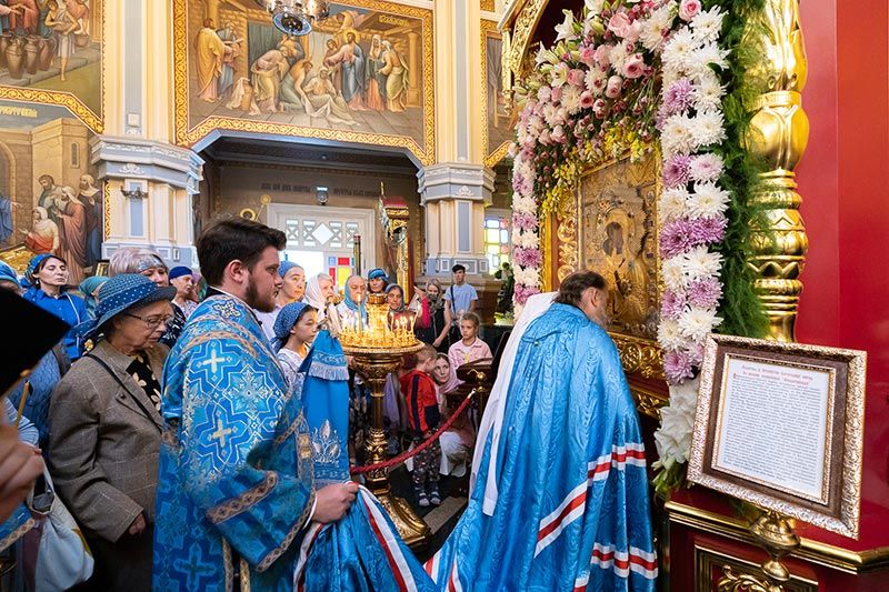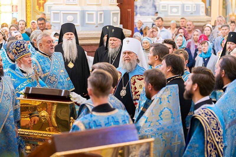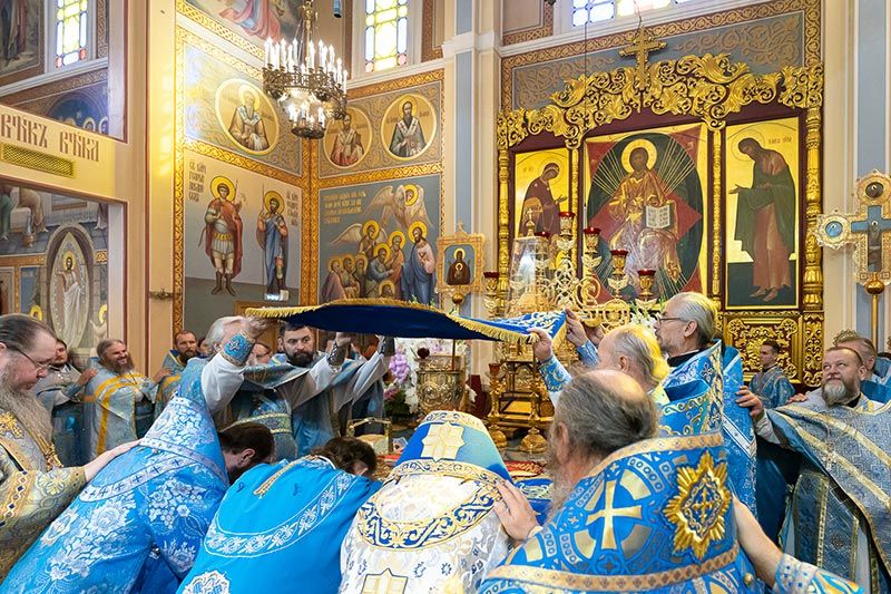 Богослужение завершилось славлением Пресвятой Богородице перед изображением Плащаницы Царицы Небесной и Феодоровским образом, после чего митрополит Александр сердечно поздравил архипастырей, духовенство, монашествующих и мирян с сугубыми торжествами, посвященными Божией Матери. В своей проповеди владыка митрополит рассказал собравшимся об истории обретения Феодоровской иконы Пресвятой Богородицы, благодатной помощи и чудесах, явленных от этого образа.