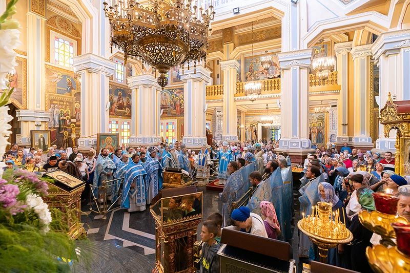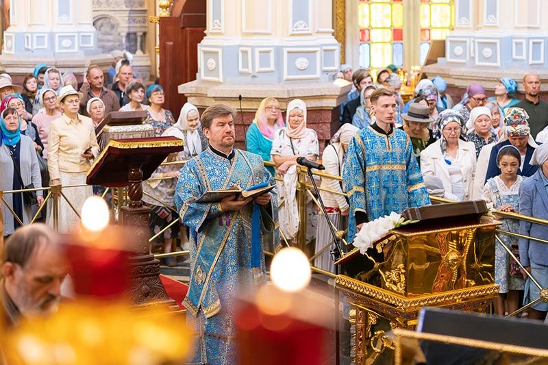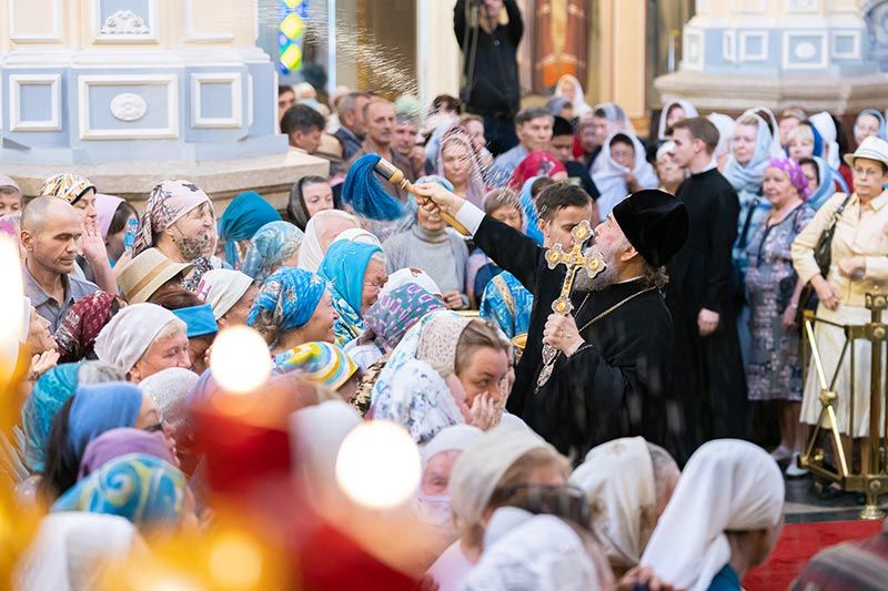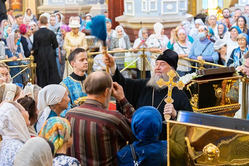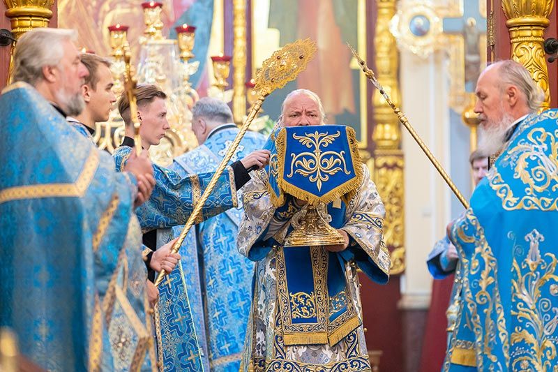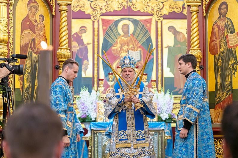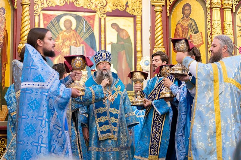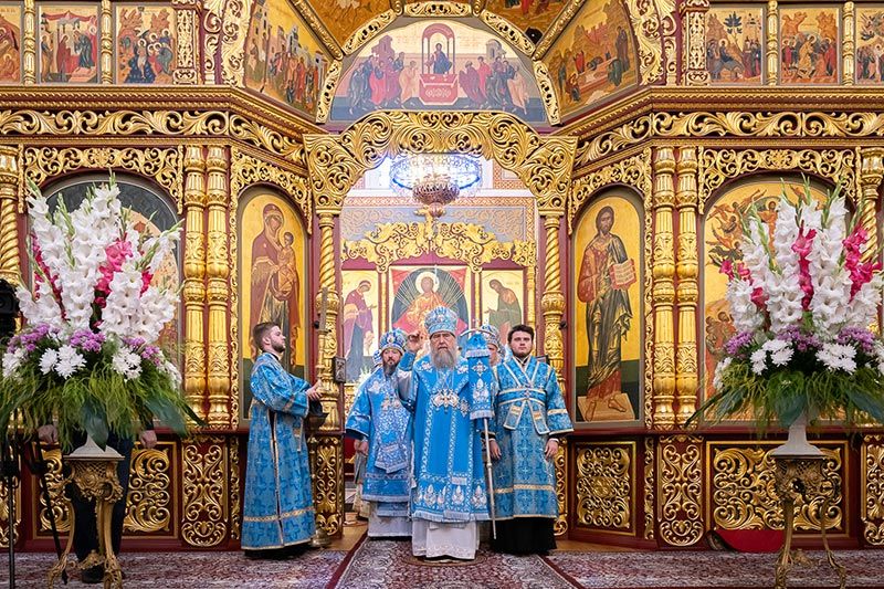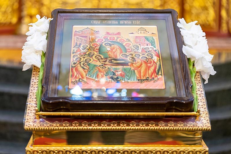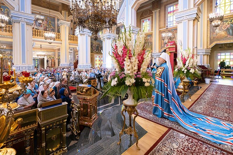 Богослужение завершилось славлением Пресвятой Богородице перед изображением Плащаницы Царицы Небесной и Феодоровским образом, после чего митрополит Александр сердечно поздравил архипастырей, духовенство, монашествующих и мирян с сугубыми торжествами, посвященными Божией Матери. В своей проповеди владыка митрополит рассказал собравшимся об истории обретения Феодоровской иконы Пресвятой Богородицы, благодатной помощи и чудесах, явленных от этого образа.