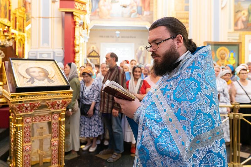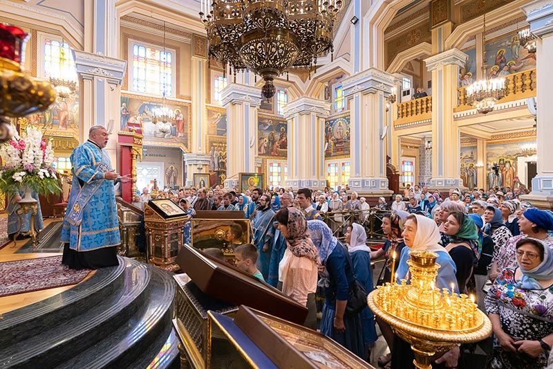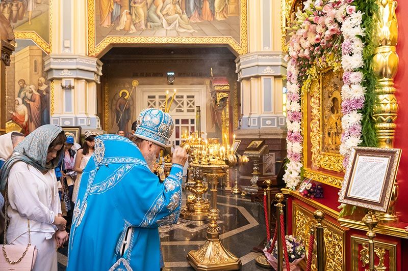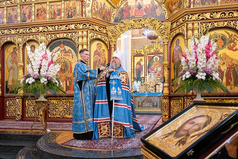 Митрополит Астанайский и Казахстанский Александр возглавил служение Божественной Литургии в Вознесенском кафедральном соборе города Алма-Аты, где пребывает список «мера в меру» с чудотворного явленного образа.