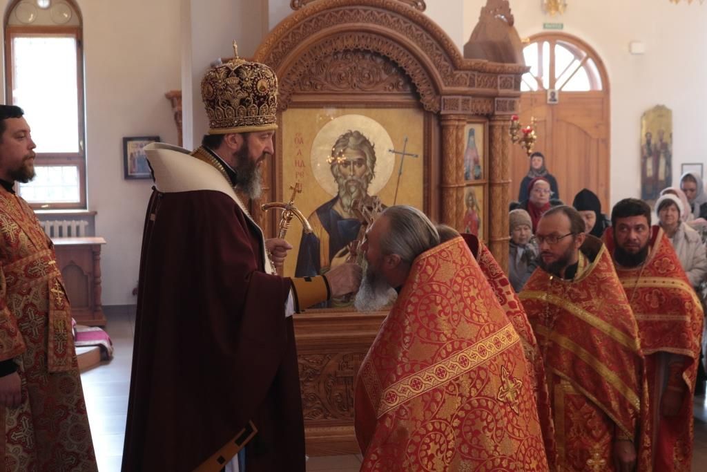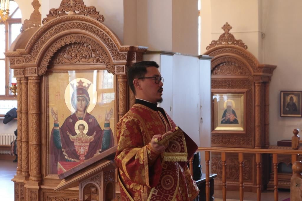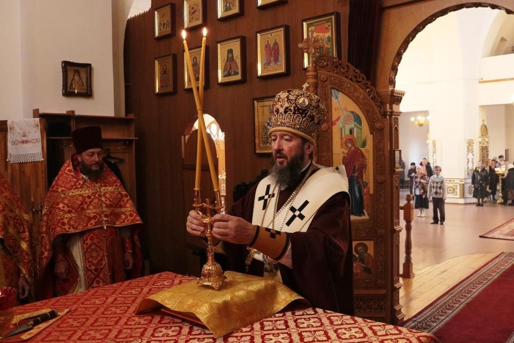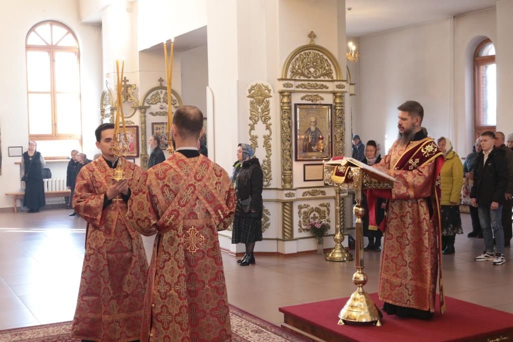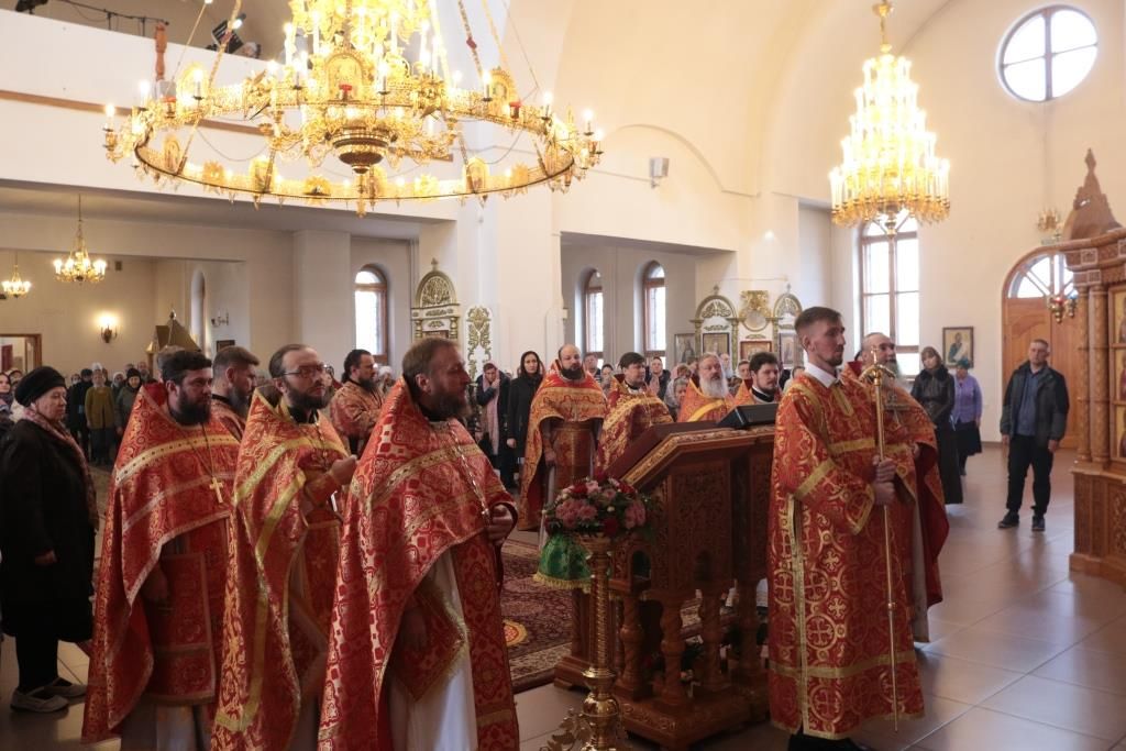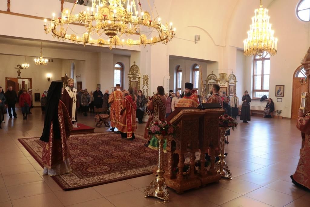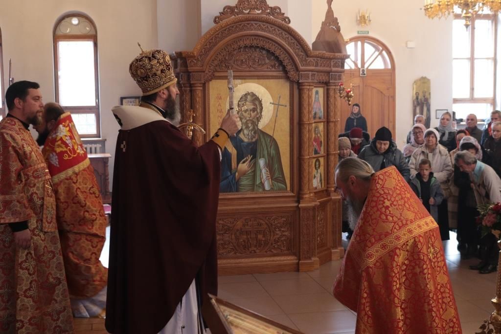 За праздничным богослужением молились прихожане и паломники Андреевского собора, сотрудники епархиального управления, насельники Свято-Троицкого мужского монастыря города Усть-Каменогорска. Песнопения Литургии исполнял хор под управлением регента Н. Романцовой.