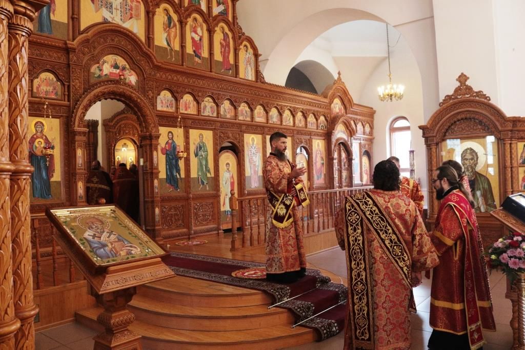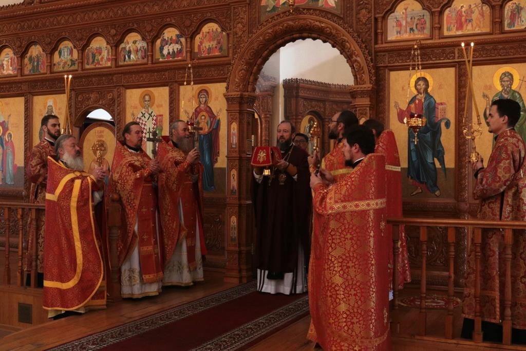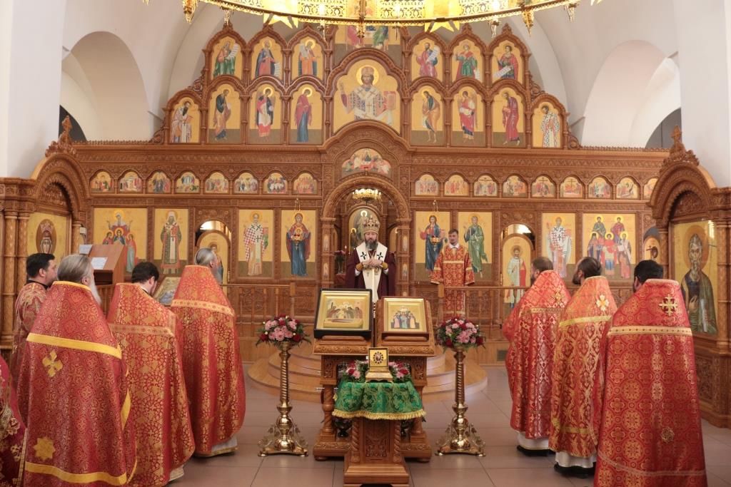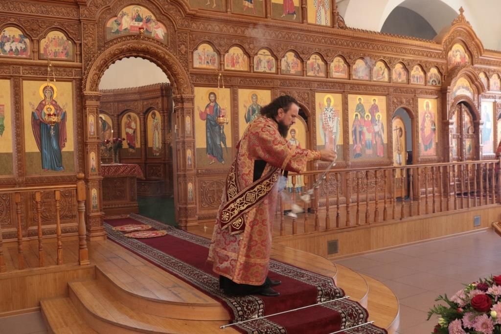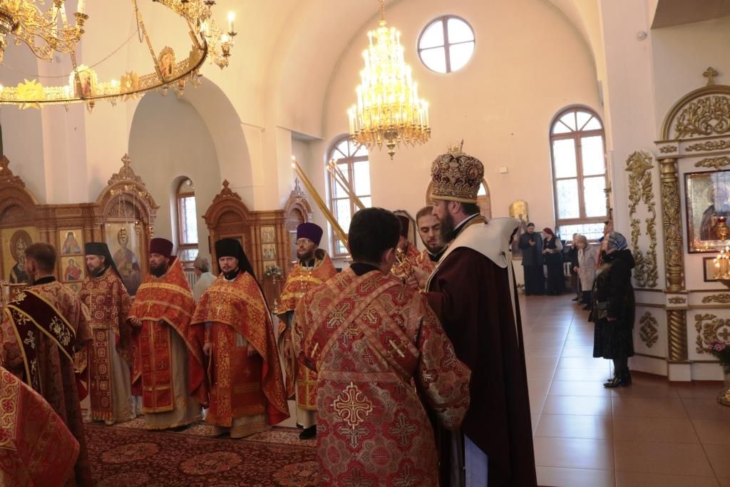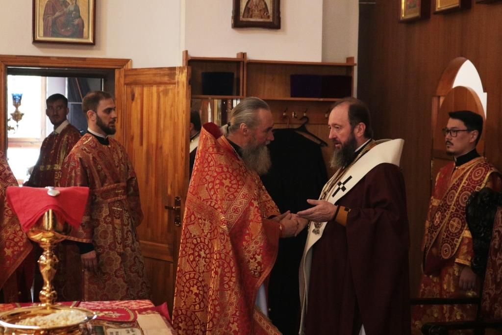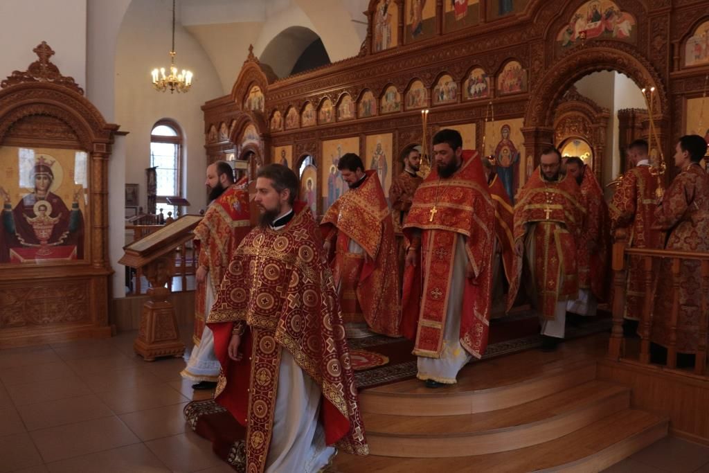 В день престольного праздника Его Высокопреосвященству сослужили: благочинный Усть-Каменогорского церковного округа протоиерей Евгений Яганов, благочинный Семипалатинского церковного округа иерей Вячеслав Гутов, ключарь Андреевского кафедрального собора иеромонах Никодим (Авдеев), клирики кафедрального собора, настоятели приходов Усть-Каменогорской епархии и духовенство, сопровождающее по епархиям Митрополичьего округа ковчег с частицей мощей преподобного Сергия Радонежского. Диаконский чин возглавил протодиакон Георгий Засыпкин.