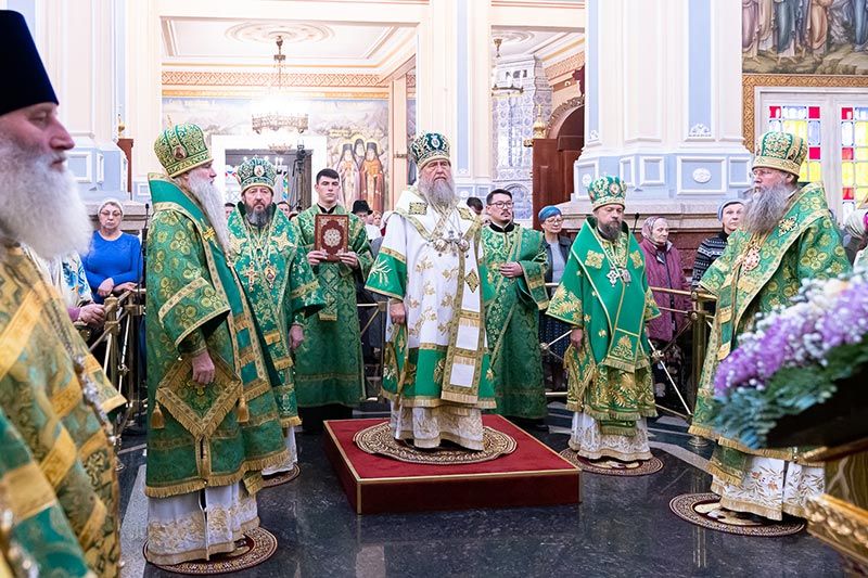 Песнопения исполняли хор Митрополичьего округа (регент - Заслуженный деятель искусств России О.Н. Овчинников, хормейстер – В. Дударева) и хор Вознесенского собора (регент - Н. Зубревич).