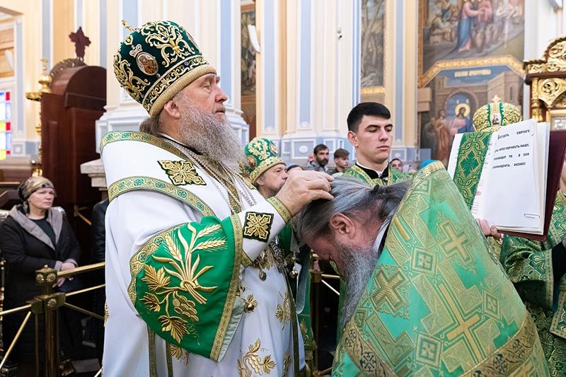 На в ходе с Евангелием, в соответствии с решением Священного Синода Русской Православной Церкви (журнал заседания № 100, от 13 октября 2022 года), по благословению Святейшего Патриарха Московского и всея Руси Кирилла иеромонах Хрисанф (Коноплев), наместник Главы Казахстанского Митрополичьего округа в Чимкентской епархии, избранный епископом Чимкентским и Туркестанским, митрополитом Астанайским и Казахстанским Александром был возведен в сан архимандрита.