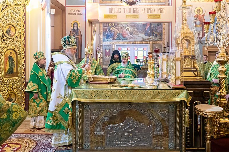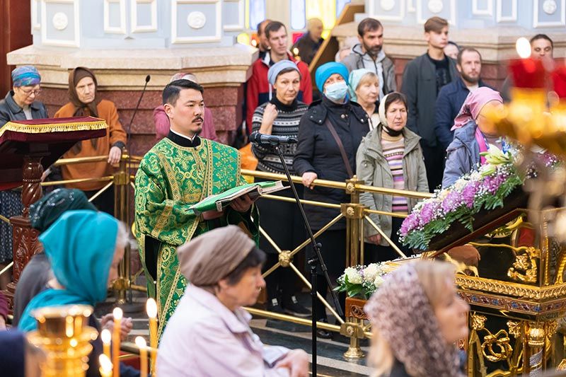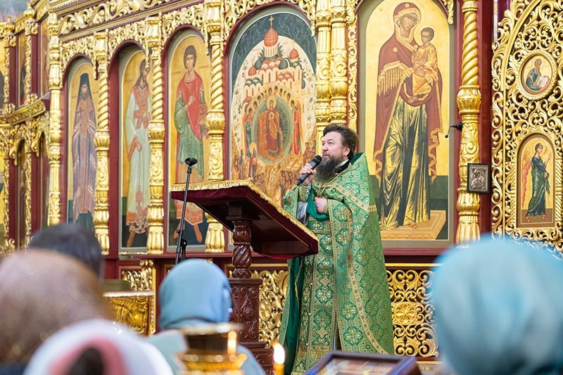 По запричастном стихе протоиерей Евгений Иванов огласил послание митрополита Астанайского и Казахстанского Александра по случаю празднования 25-летия со дня обретения мощей преподобного Севастиана Карагандинского.