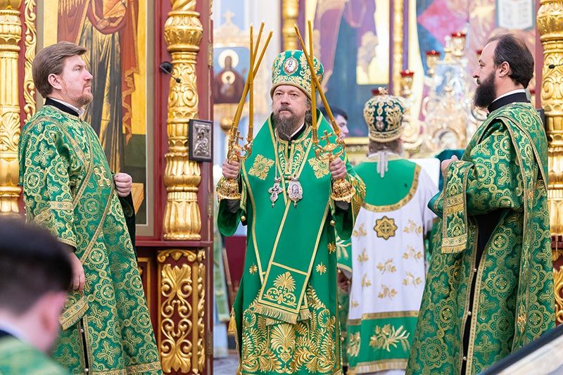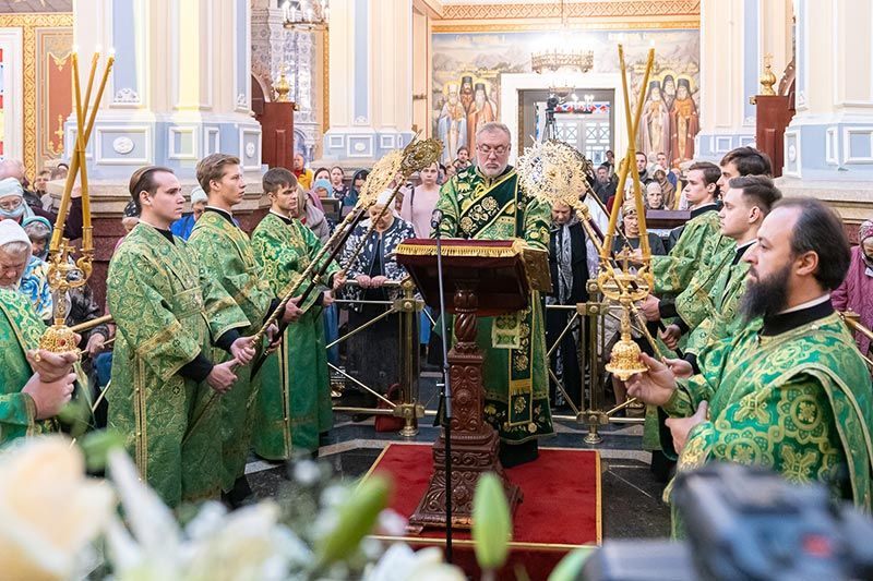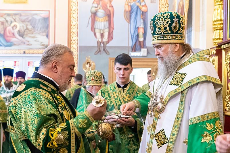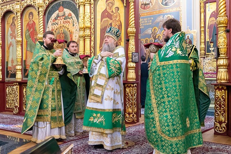 Митрополит Астанайский и Казахстанский Александр совершил Божественную Литургию в Вознесенском кафедральном соборе города Алма-Аты.