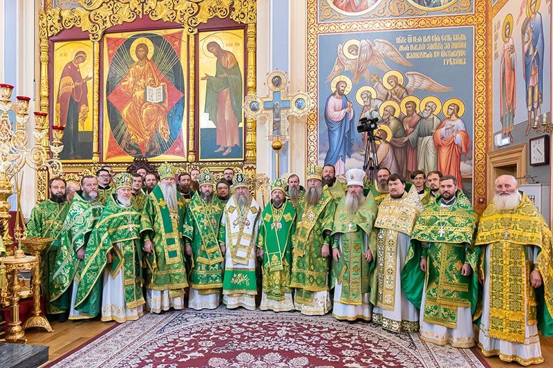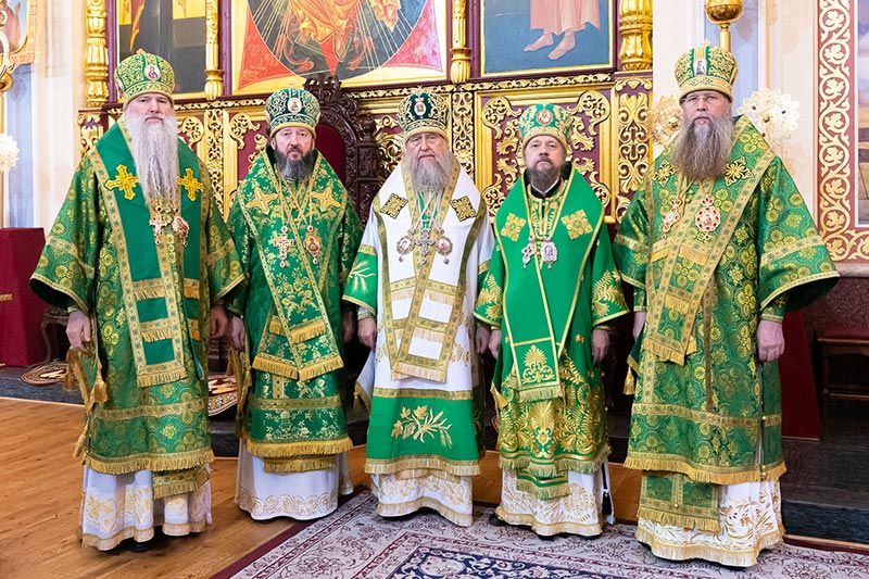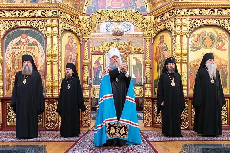 Главе Православной Церкви Казахстана сослужили: архиепископ Усть-Каменогорский и Семипалатинский Амфилохий, управляющий делами Казахстанского Митрополичьего округа епископ Каскеленский Геннадий, епископ Актюбинский и Кызылординский Игнатий, викарий Астанайской епархии епископ Талдыкорганский Клавдиан; наместник Главы Казахстанского Митрополичьего округа в Чимкентской епархии иеромонах Хрисанф (Коноплев), избранный епископом Чимкентским и Туркестанским; благочинный приходов Алма-Аты, настоятель Никольского собора митрофорный протоиерей Валерий Захаров, настоятель храма в честь иконы Божией Матери «Всех скорбящих Радость» в городе Алма-Ате протоиерей Евгений Воробьев, настоятель Иверского храма поселка Боролдай игумен Филарет (Петроченко), ключарь Христорождественского собора протоиерей Александр Гайченя, настоятель Богоявленского храма протоиерей Валерий Шаврин, настоятель Параскевинского храма протоиерей Иоанн Лопатин, ключарь Вознесенского кафедрального собора, руководитель отдела Митрополичьего округа по связям с общественностью протоиерей Александр Суворов, благочинный Илийского церковного округа протоиерей Александр Зырянов, настоятель храма во имя святых мучеников Космы и Дамиана протоиерей Георгий Чистяков, руководитель информационно-издательского отдела Митрополичьего округа протоиерей Евгений Иванов, настоятель Параскевинского храма города Талгар протоиерей Владимир Барташевич, настоятель храма в честь Богоявления Господня села Маловодное протоиерей Николай Ткаченко, настоятель Иоанно-Предтеченского храма поселка Гульдала протоиерей Георгий Харлов, секретарь Костанайской епархии иеромонах Геннадий (Бурдюжа), руководитель личного секретариата митрополита иеромонах Прохор (Ендовицкий), руководитель административного секретариата Главы Митрополичьего округа иерей Георгий Сидоров, духовенство Алма-Атинской епархии; диаконский чин возглавили протодиакон Николай Гринкевич и руководитель службы протокола митрополита протодиакон Роман Головин.