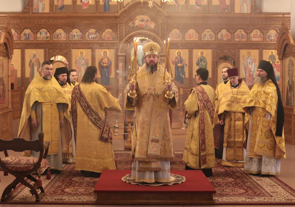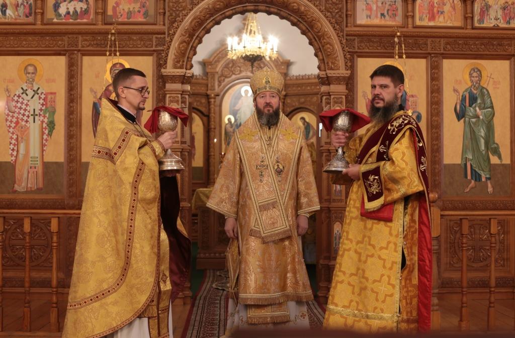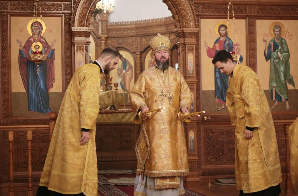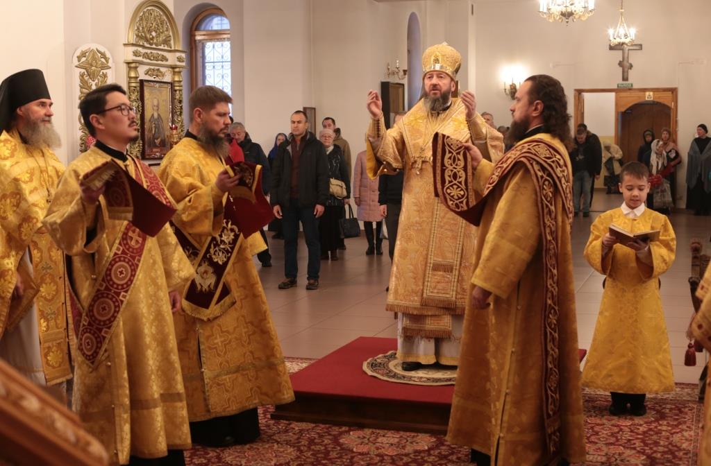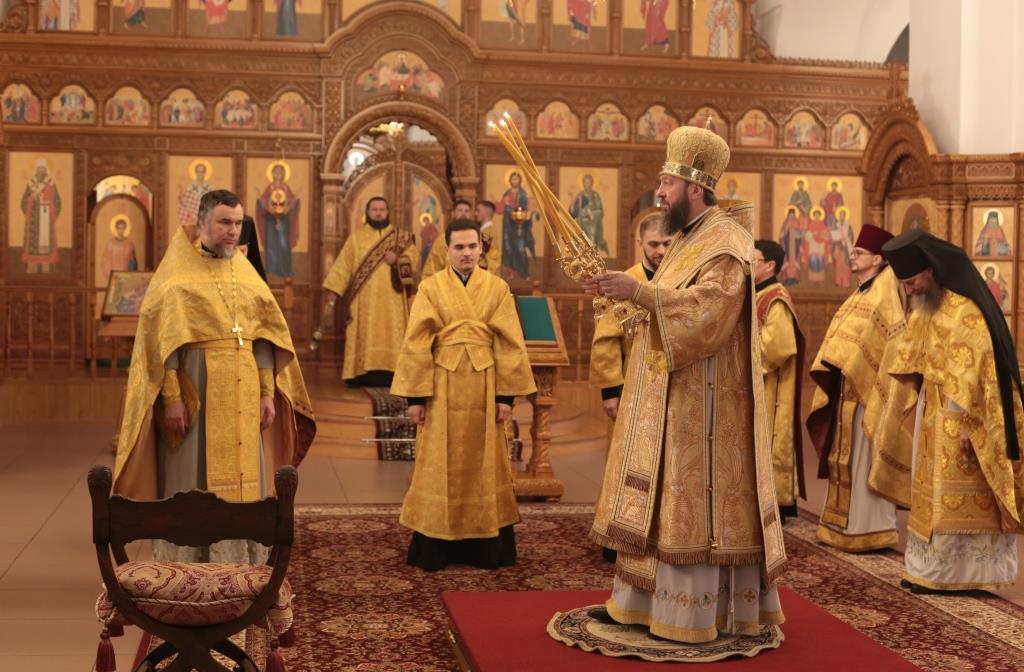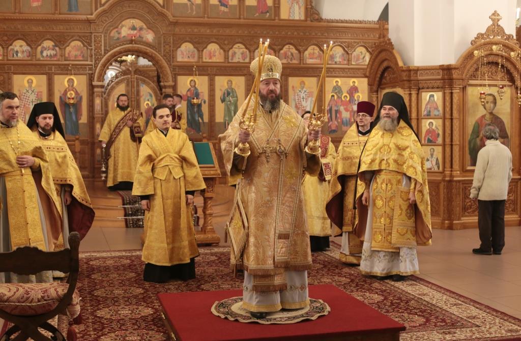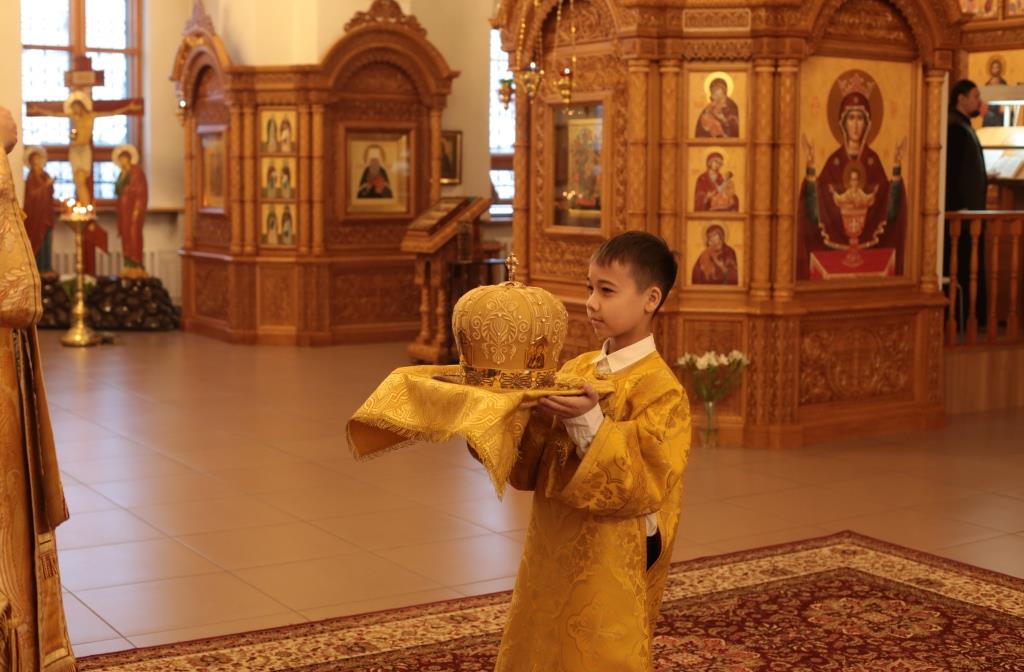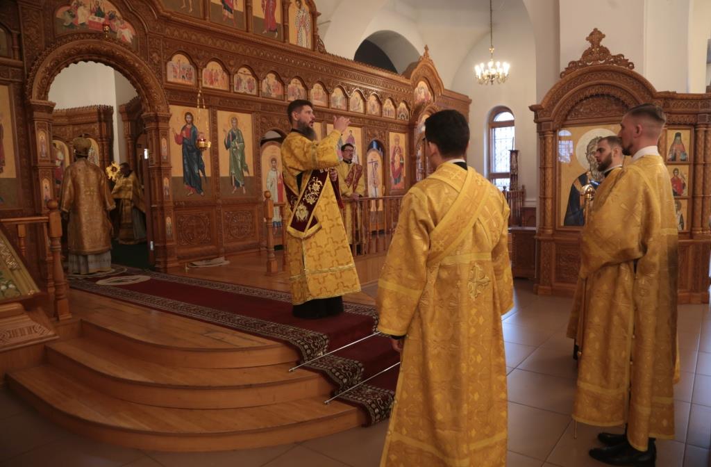В воскресный день архиепископ Амфилохий, Управляющий Усть-Каменогорской и Семипалатинской епархией, возглавил служение Божественной Литургии святителя Иоанна Златоуста в Андреевском кафедральном соборе столицы Рудного Алтая. Его Высокопреосвященству сослужили: ключарь кафедрального собора иеромонах Никодим (Авдеев), клирики собора иерей Константин Дьяков и иеромонах Мефодий (Шевчук), секретарь епархии диакон Илия Кван, протодиакон Георгий Засыпкин, протодиакон Андрей Дудник. Песнопения Литургии исполнял хор кафедрального собора под управлением регента Н. Романцовой.