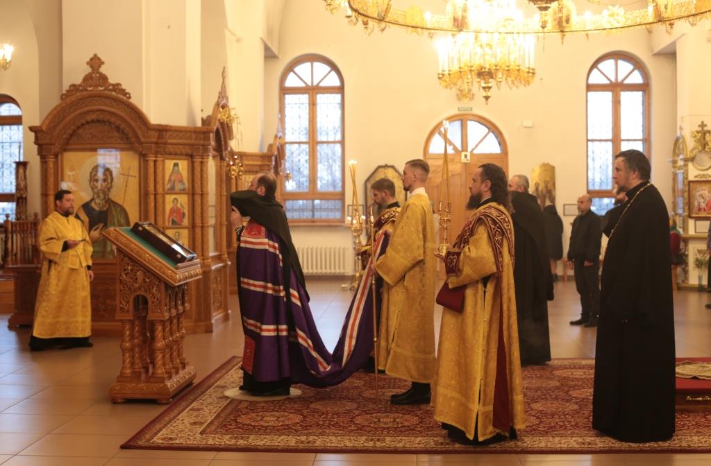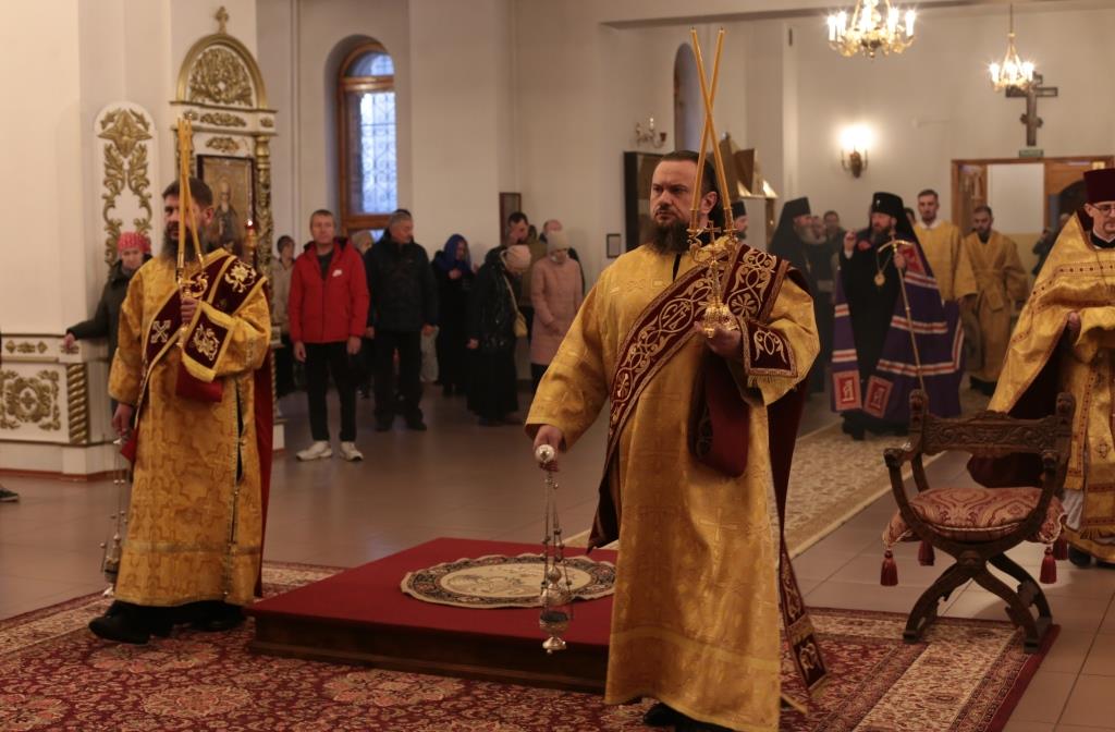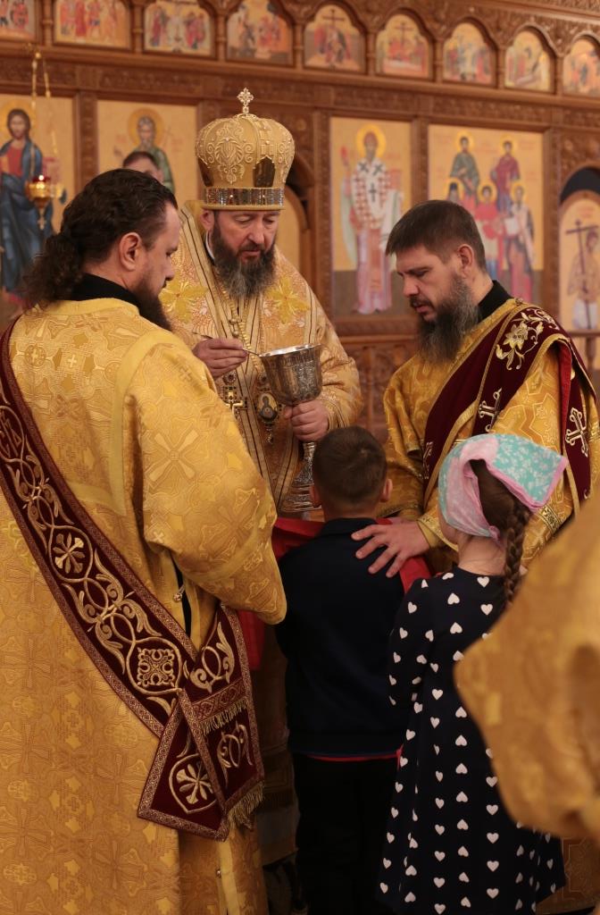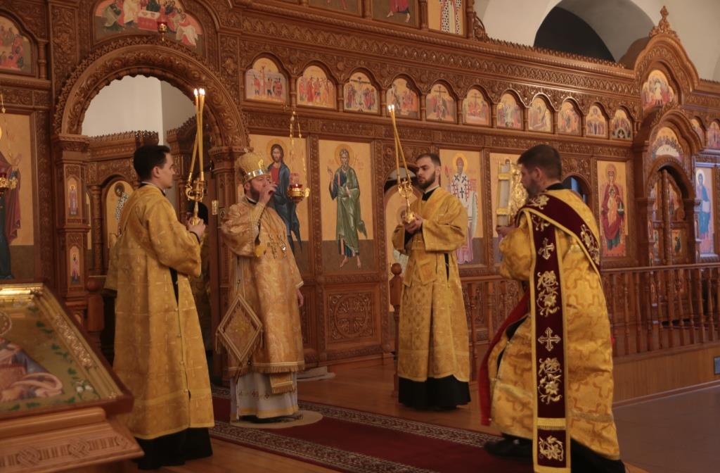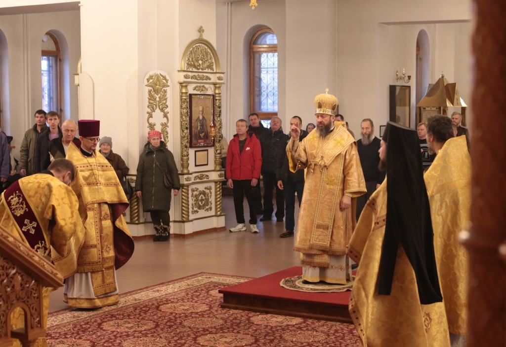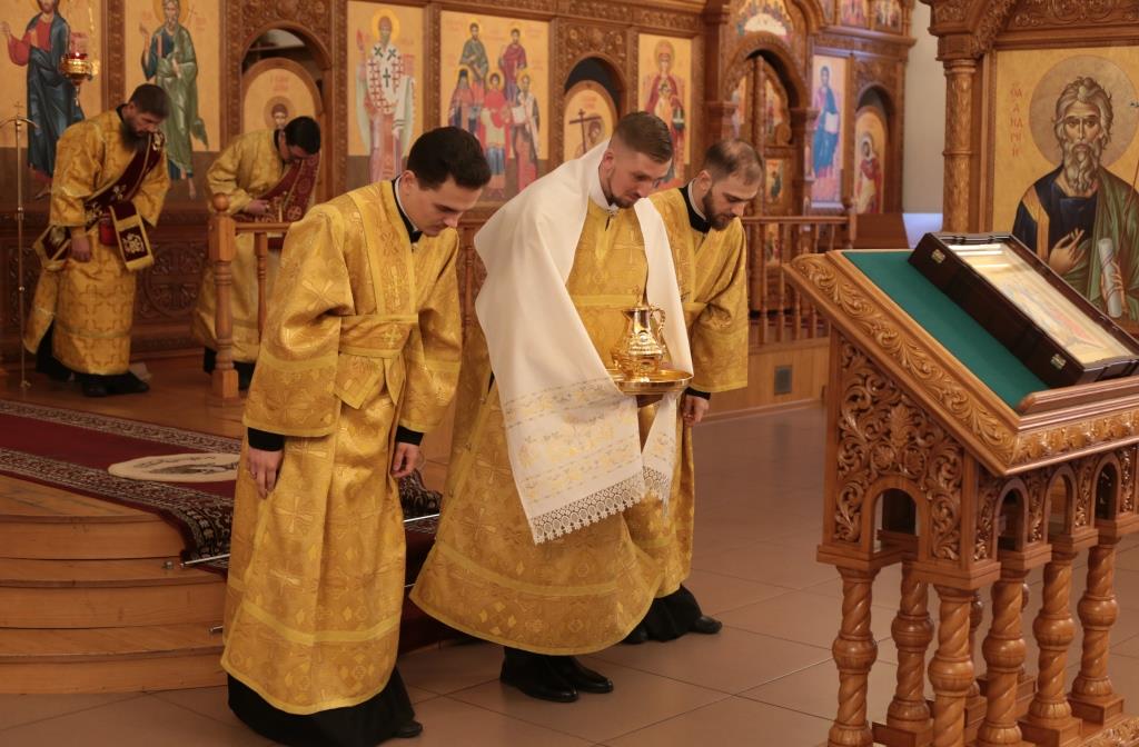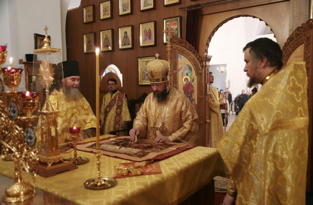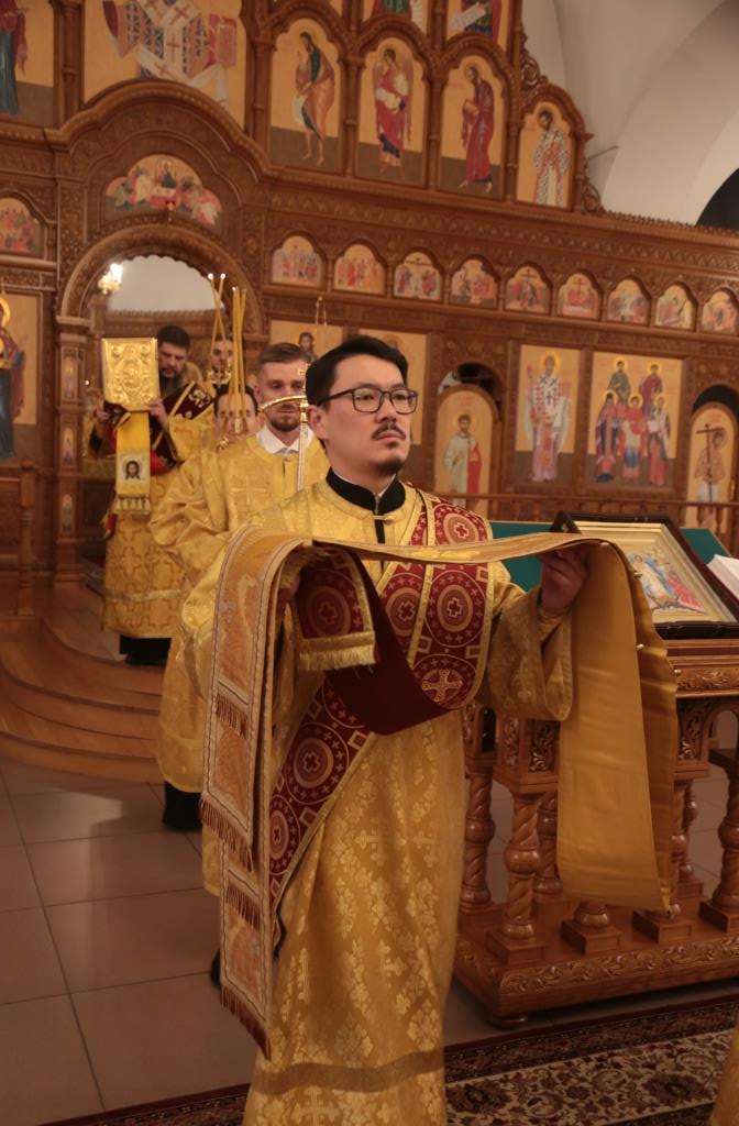 В воскресный день архиепископ Амфилохий, Управляющий Усть-Каменогорской и Семипалатинской епархией, возглавил служение Божественной Литургии святителя Иоанна Златоуста в Андреевском кафедральном соборе столицы Рудного Алтая. Его Высокопреосвященству сослужили: ключарь кафедрального собора иеромонах Никодим (Авдеев), клирики собора иерей Константин Дьяков и иеромонах Мефодий (Шевчук), секретарь епархии диакон Илия Кван, протодиакон Георгий Засыпкин, протодиакон Андрей Дудник. Песнопения Литургии исполнял хор кафедрального собора под управлением регента Н. Романцовой.