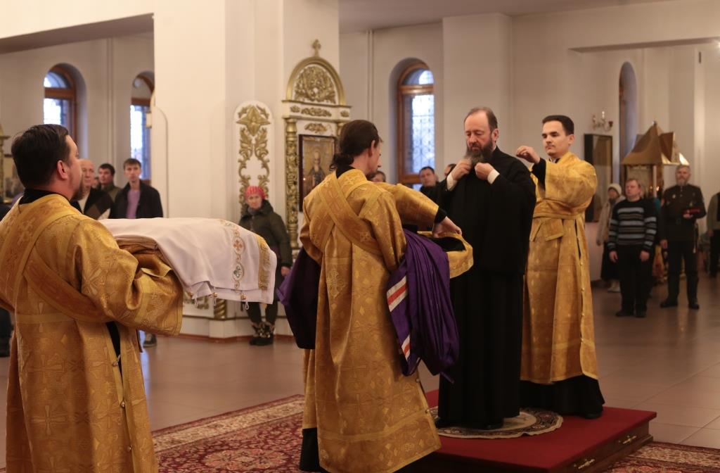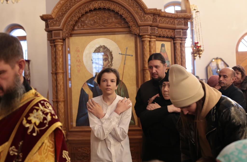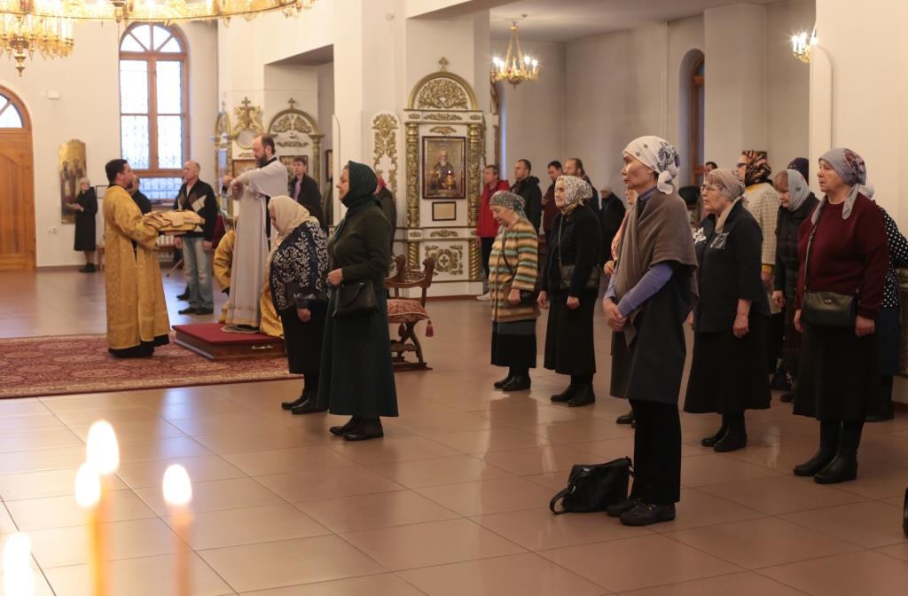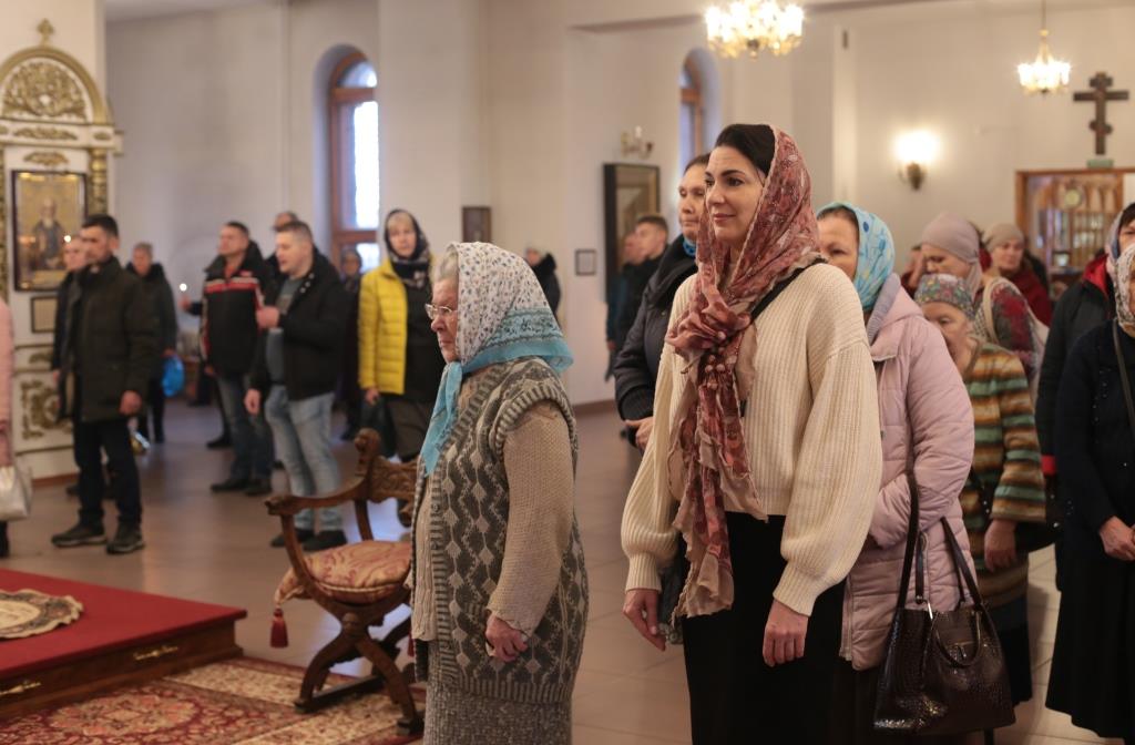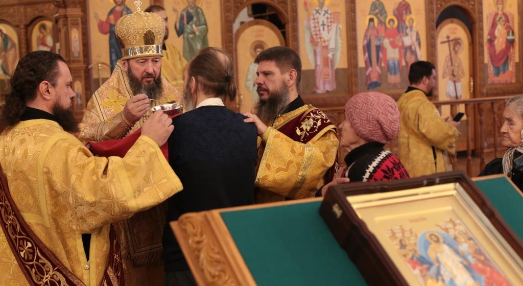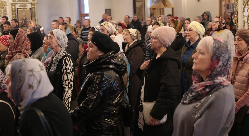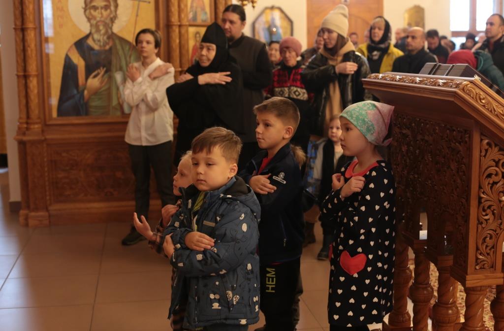 За воскресным богослужением молились сотрудники епархиального управления, преподаватели и воспитанники Центральной воскресной школы, насельники Свято-Троицкого мужского монастыря города Усть-Каменогорска и прихожане Андреевского собора. Перед причастием мирян проповедь произнёс священник Константин Дьяков.