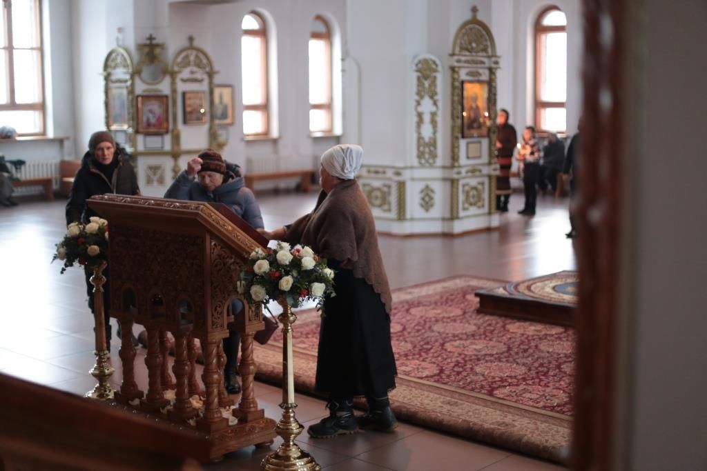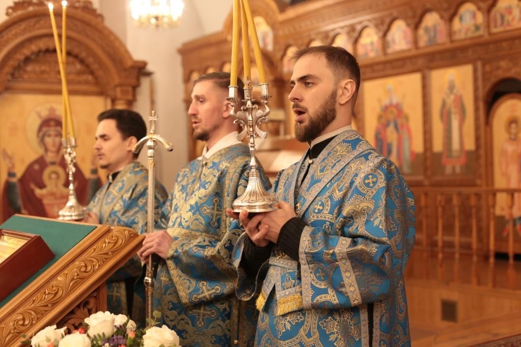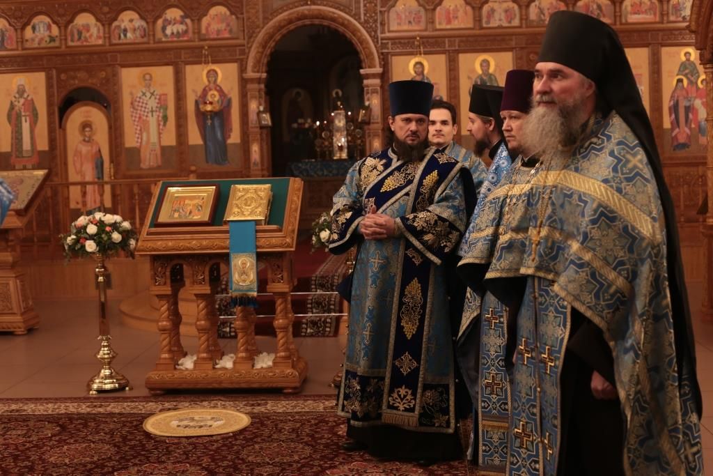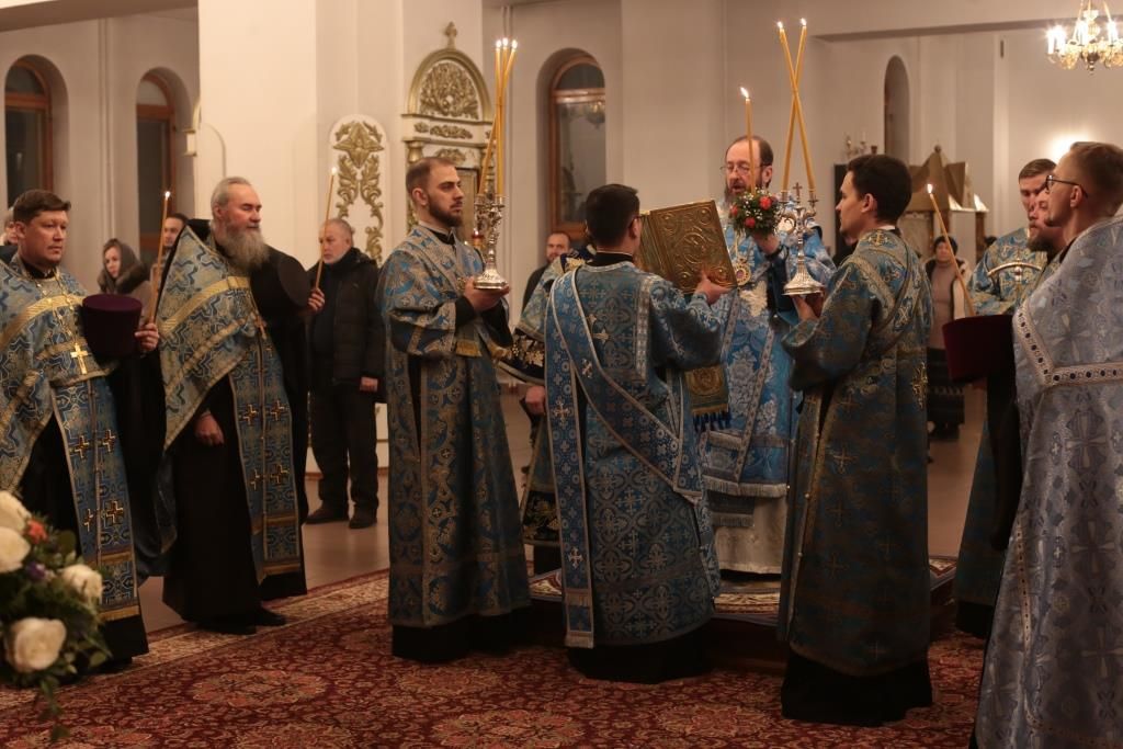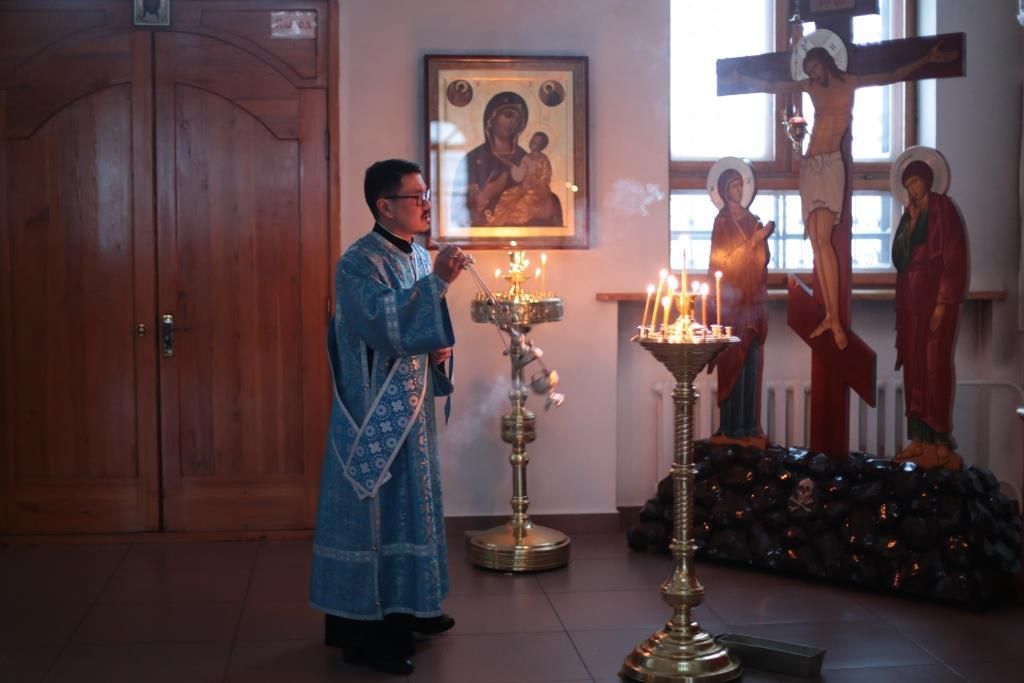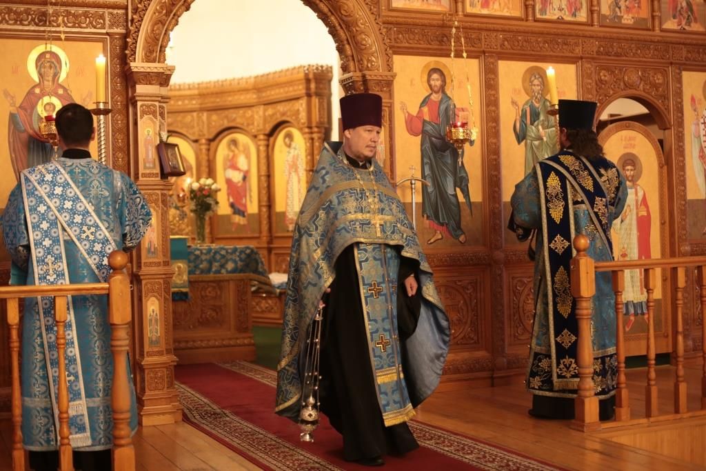 За вечерним богослужением молились прихожане и паломники кафедрального собора, насельники Свято-Троицкого мужского монастыря города Усть-Каменогорска, сотрудники епархиального управления. Песнопения всенощного бдения и праздника Божией Матери исполнял хор Андреевского собора, регент – Н. Романцова.