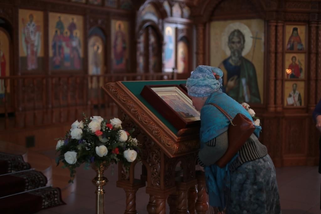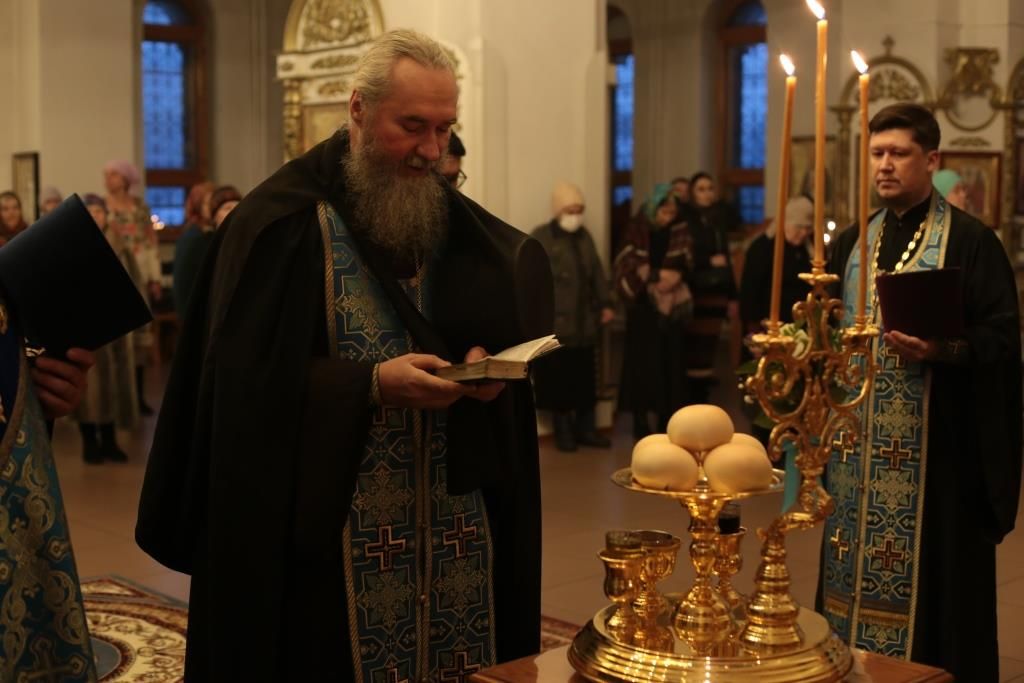 За богослужением совершалась лития – уставное молитвенное последование с освящением хлеба, пшеницы, вина и елея. После чтения Евангелия, посвящённого празднику, архиепископ Амфилохий помазал духовенство и прихожан освященным елеем.